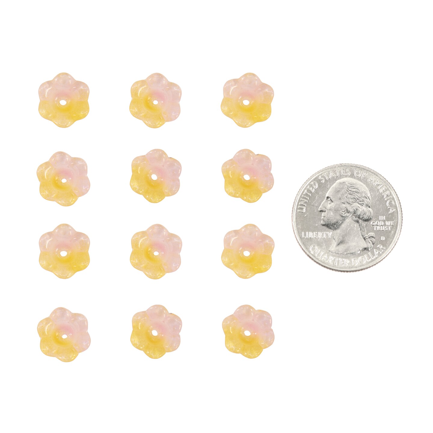12x8mm Larger Yellow Pink Full Flowers Beads Center Hole, 12 beads - GB-FB30