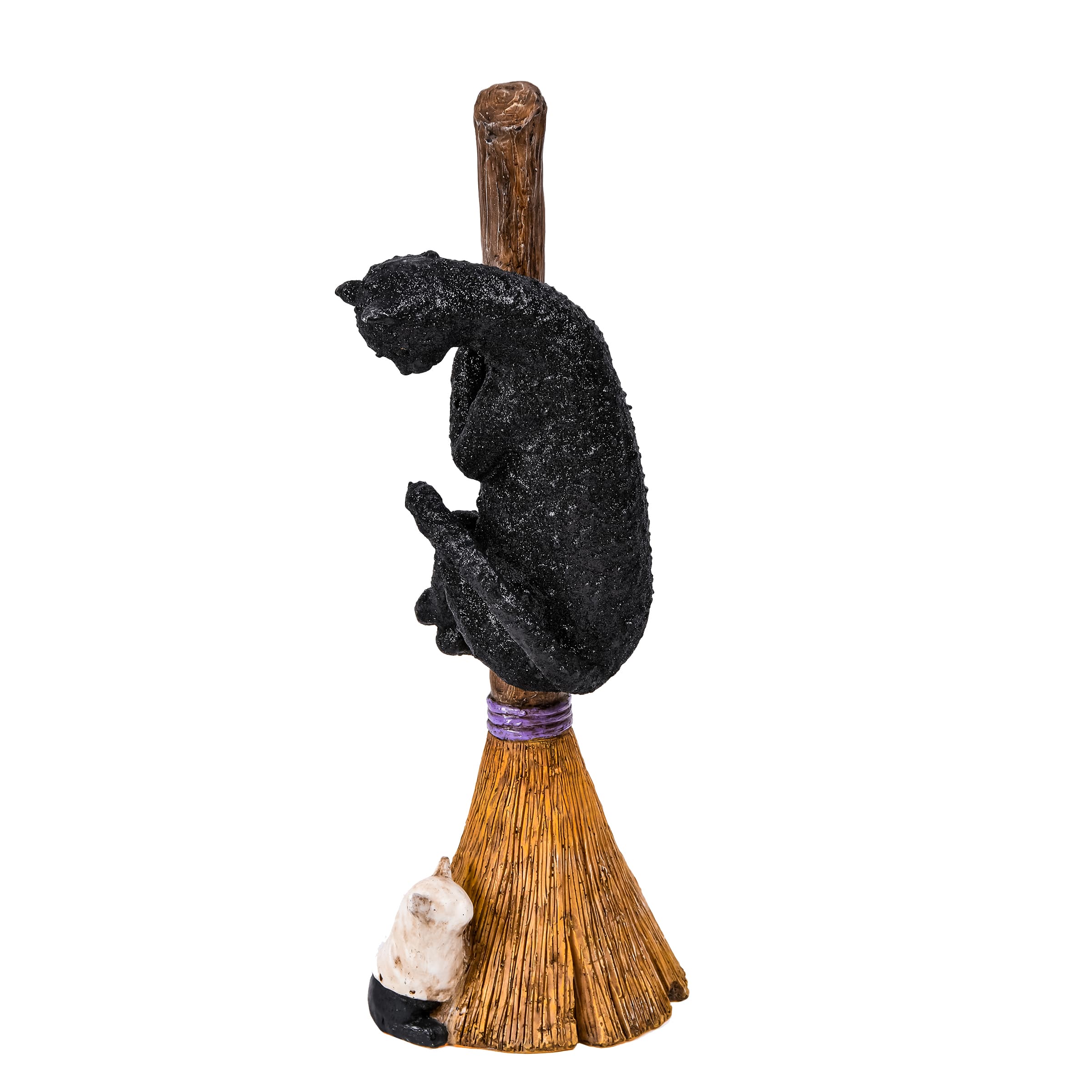 13'' Black Cat Climbing Broom Halloween Décor
