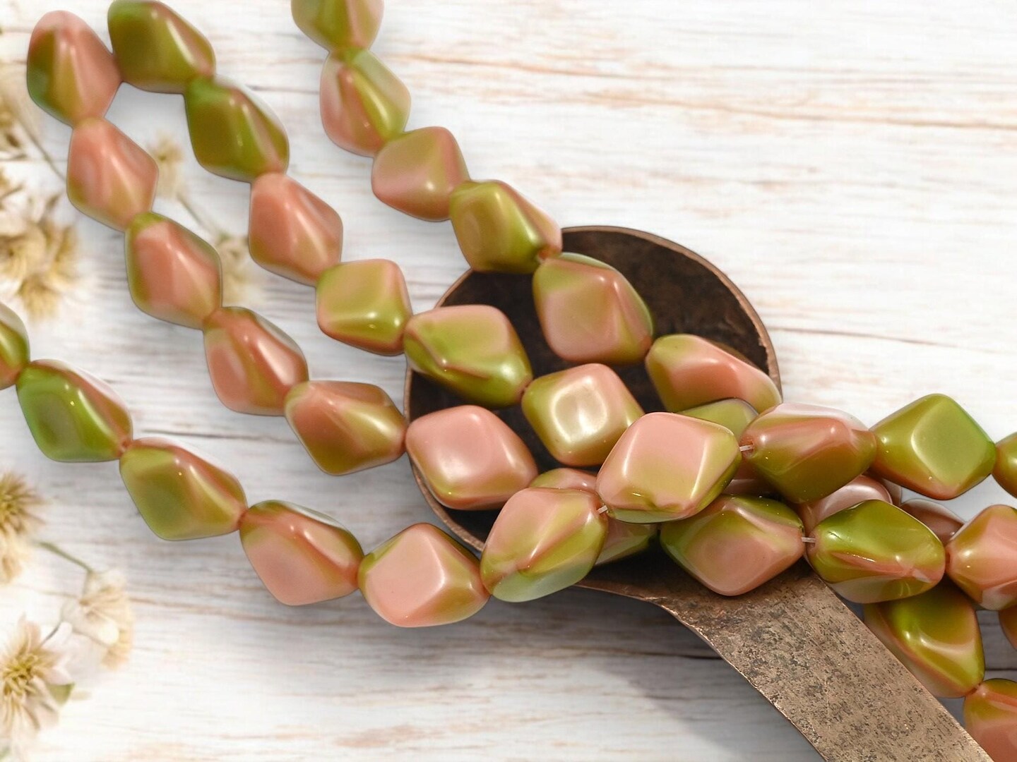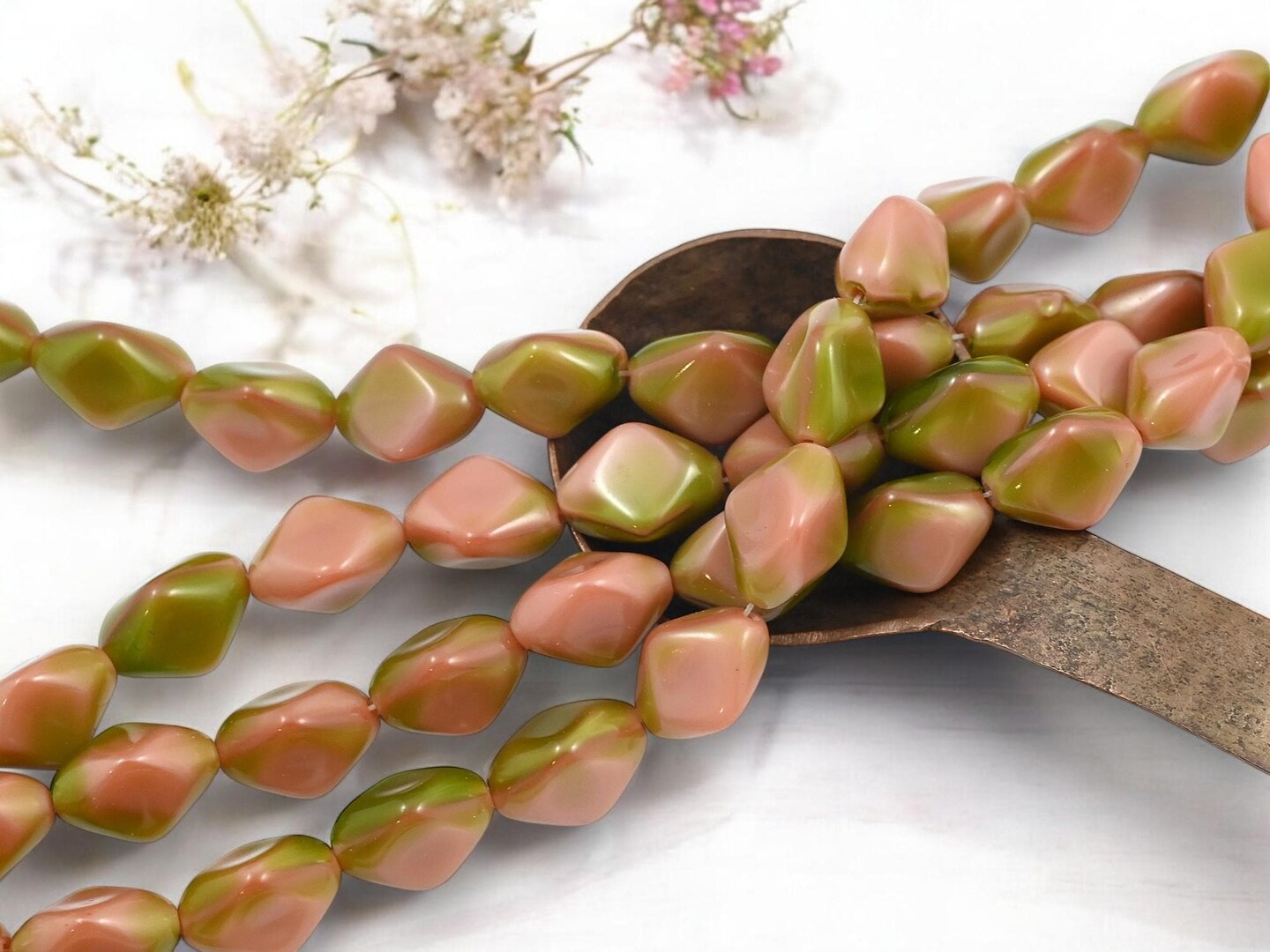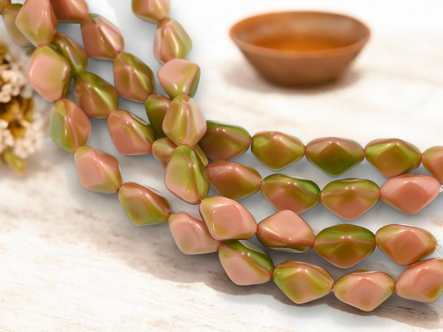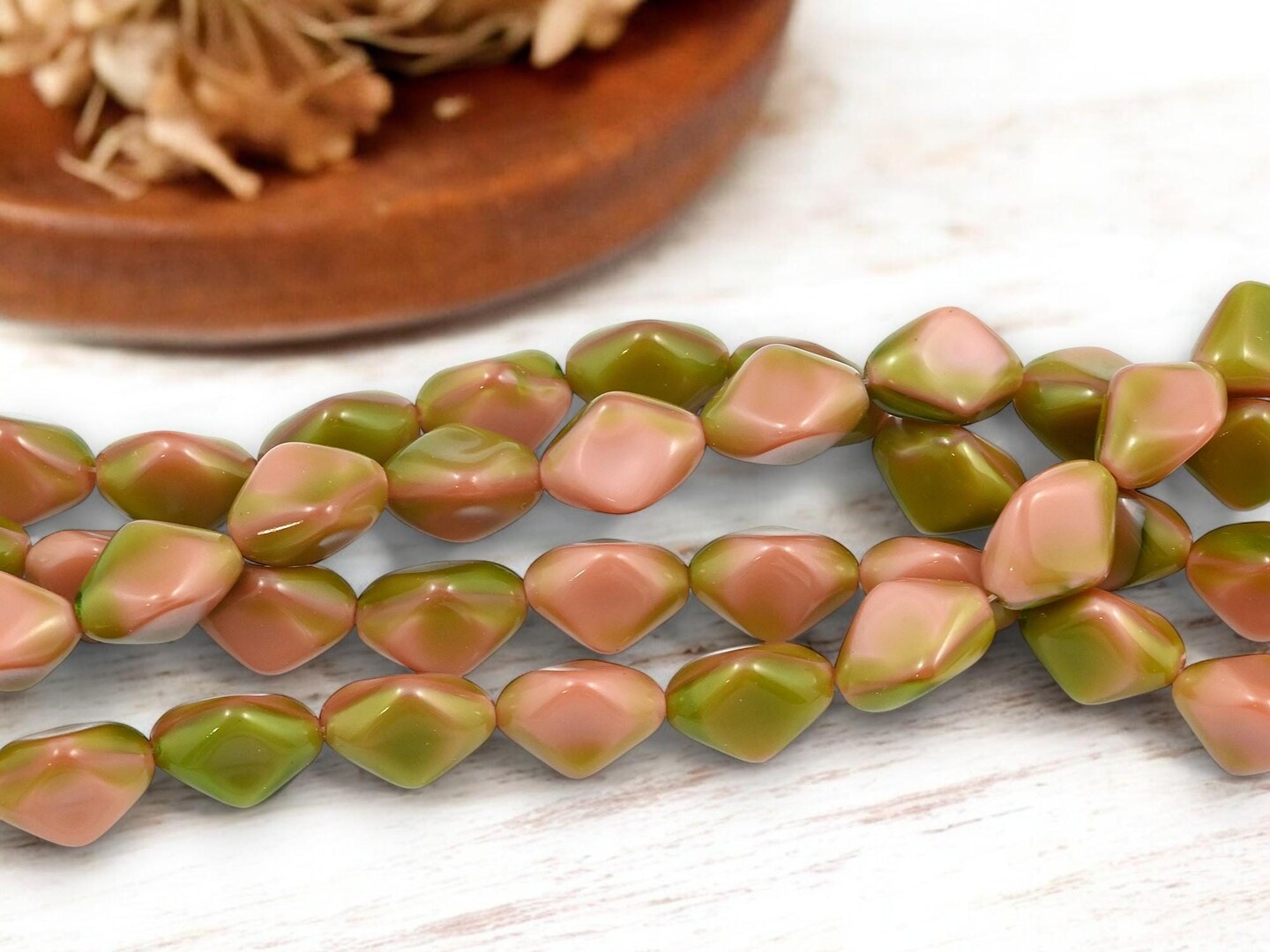 *13* 10x15mm Mossy Rose Pink Tri Oval Beads