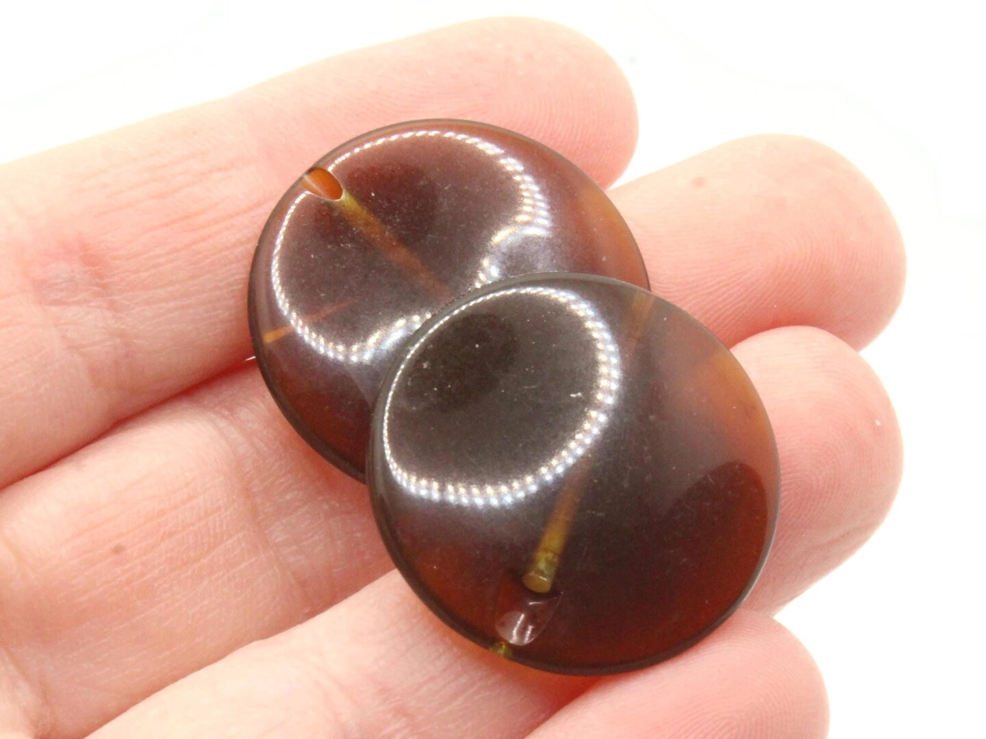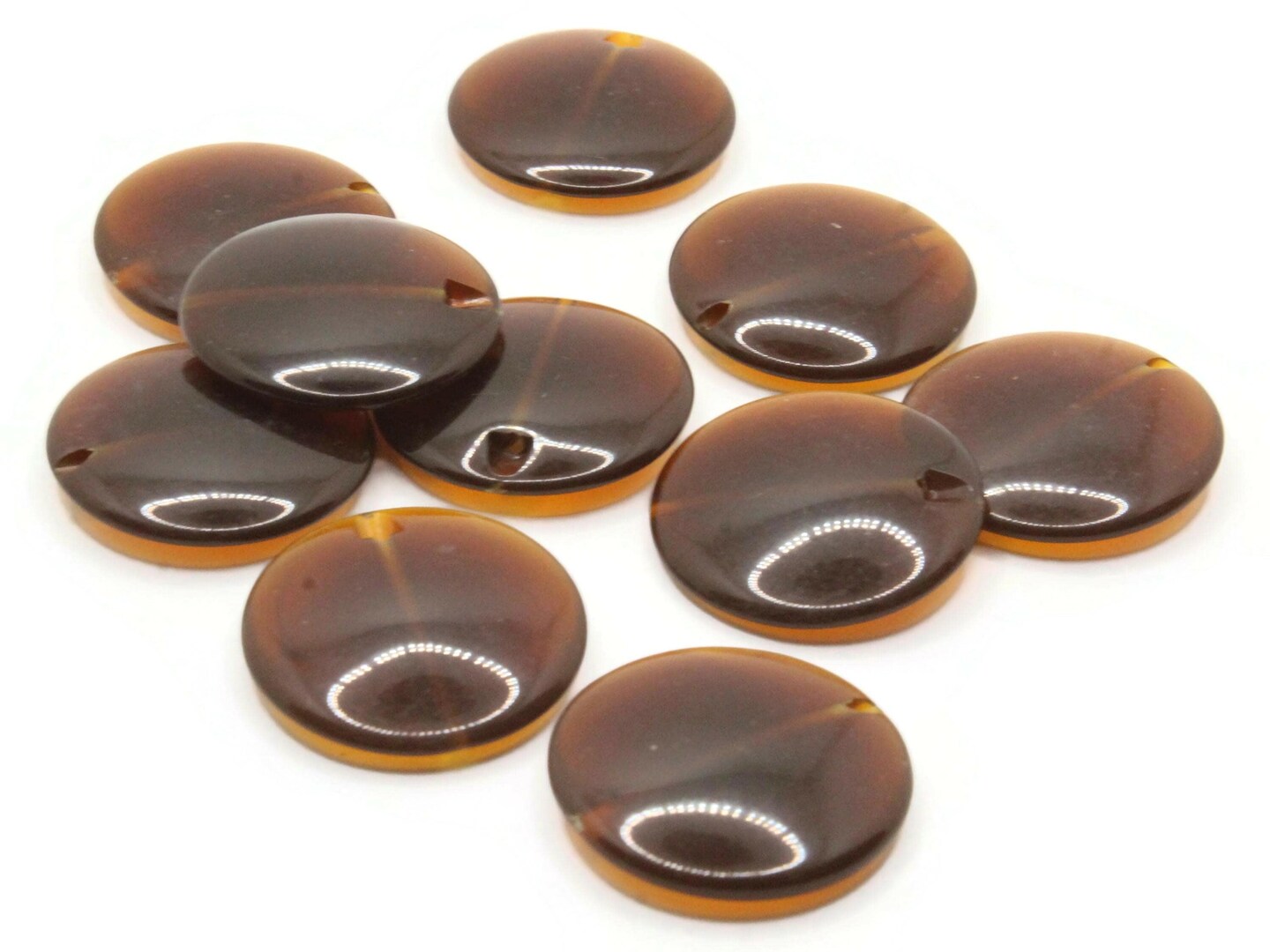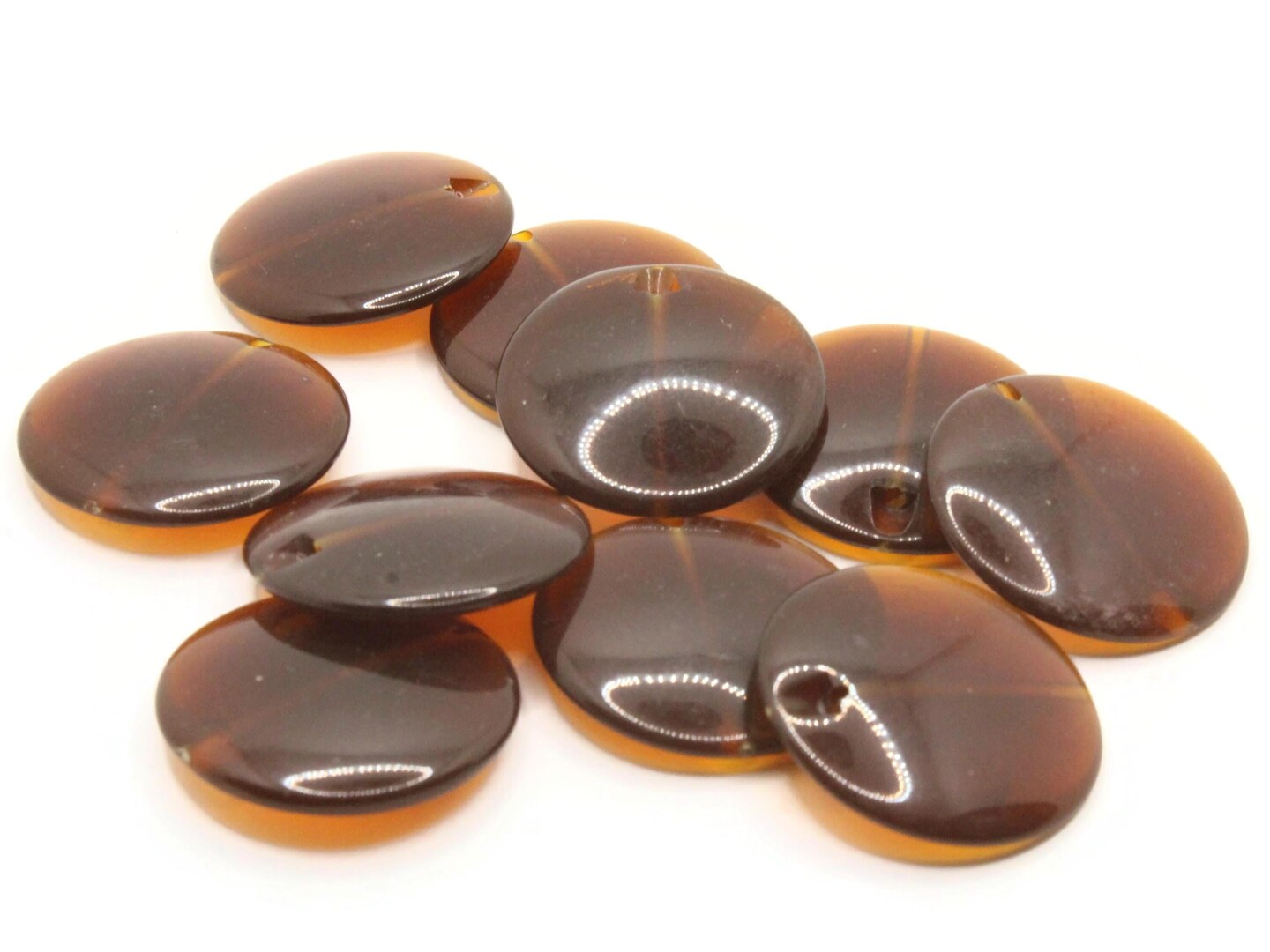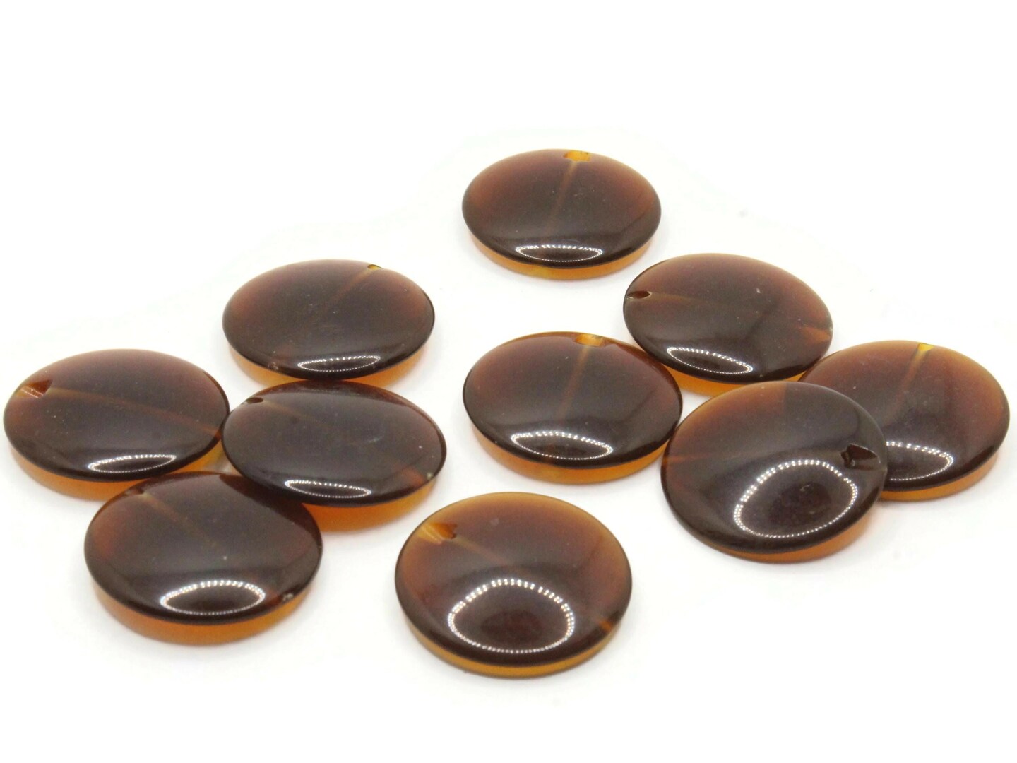 13 25mm Vintage Brown Plastic Diagonal Coin Beads
