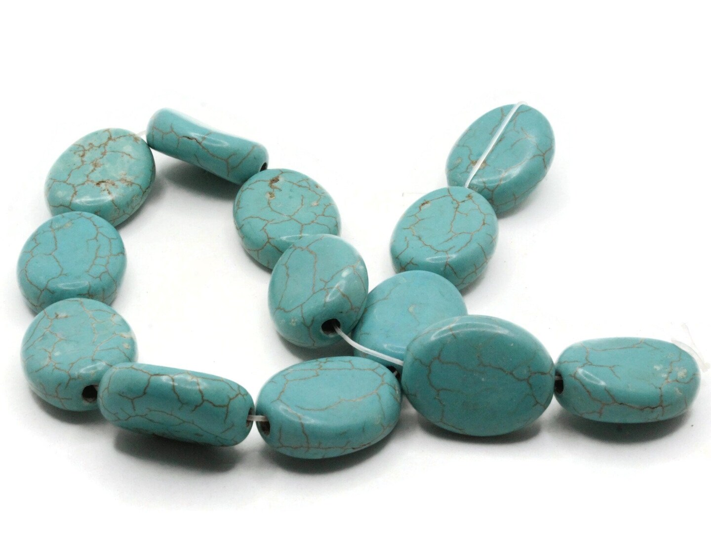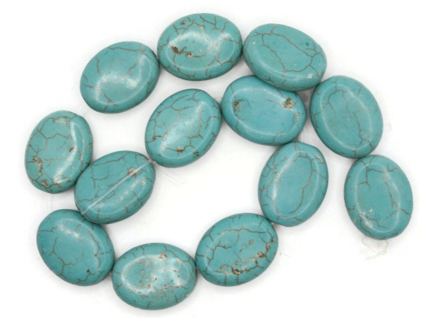 13 27mm Dyed Turquoise Blue Howlite Stone Flat Oval Large Hole Beads
