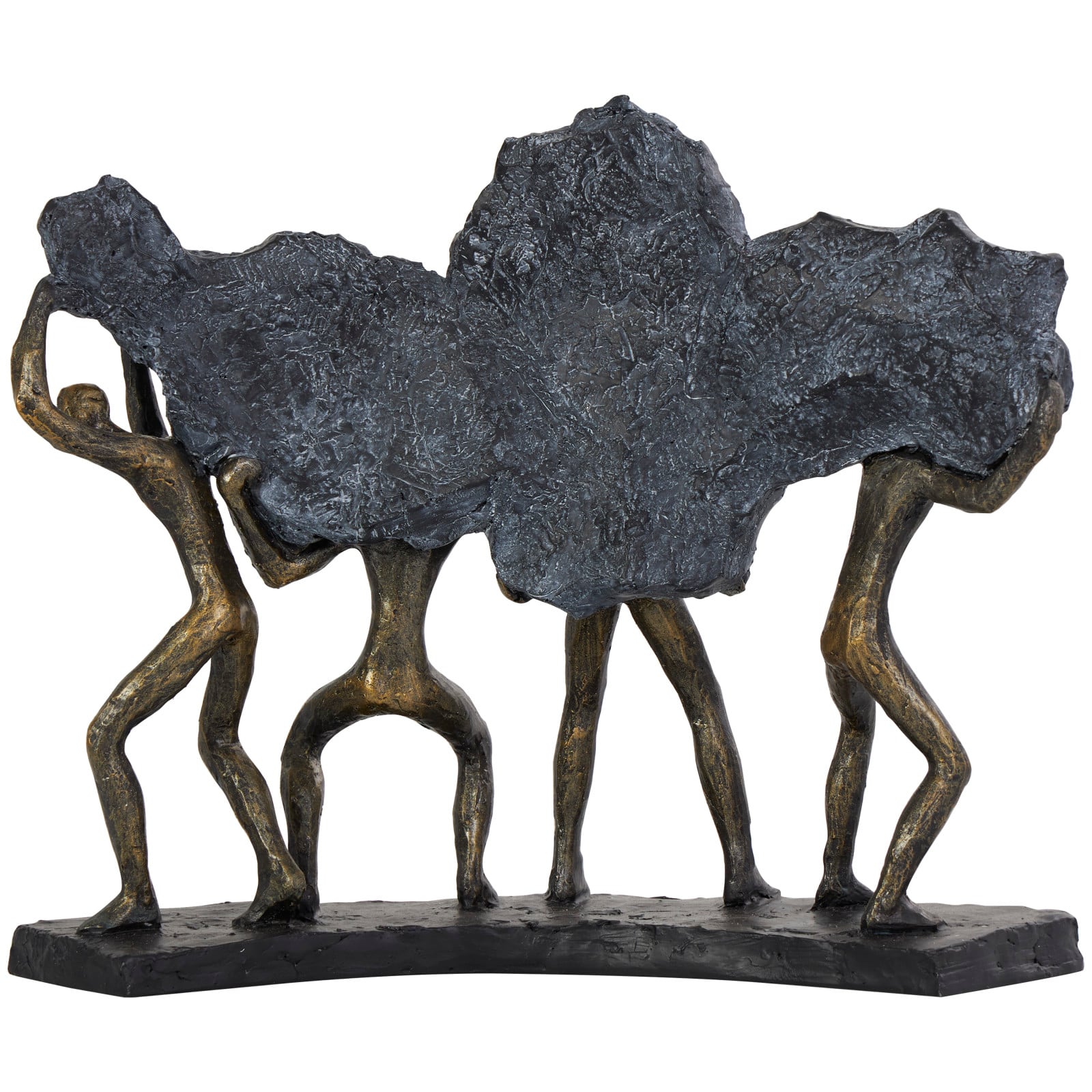 13" Bronze People Carrying Stone Sculpture