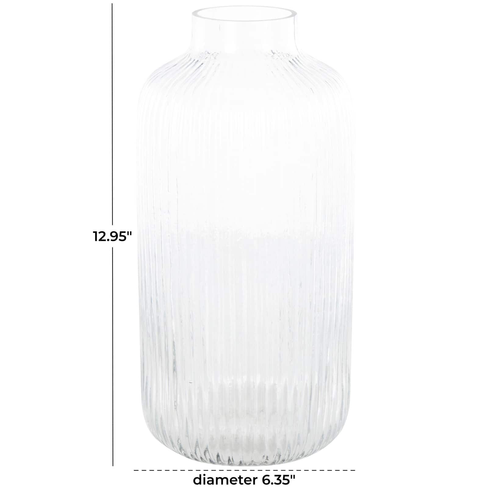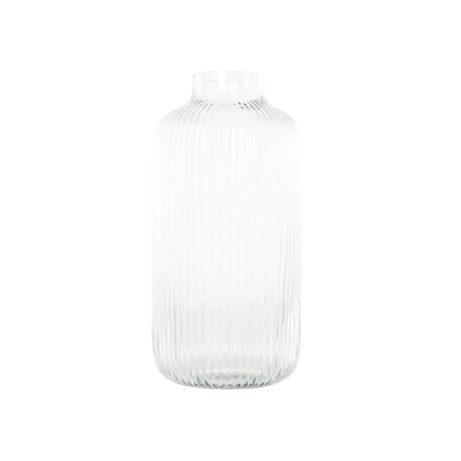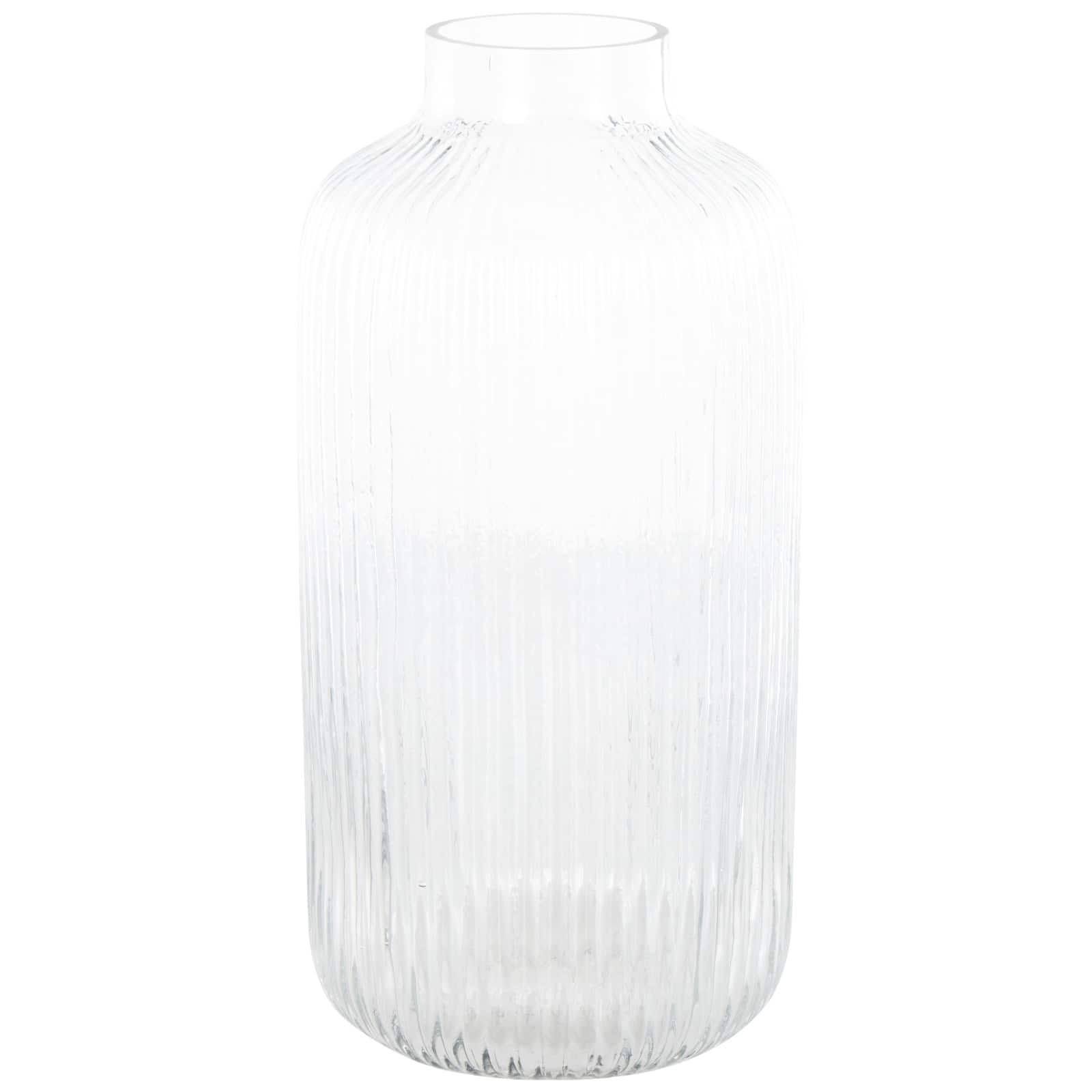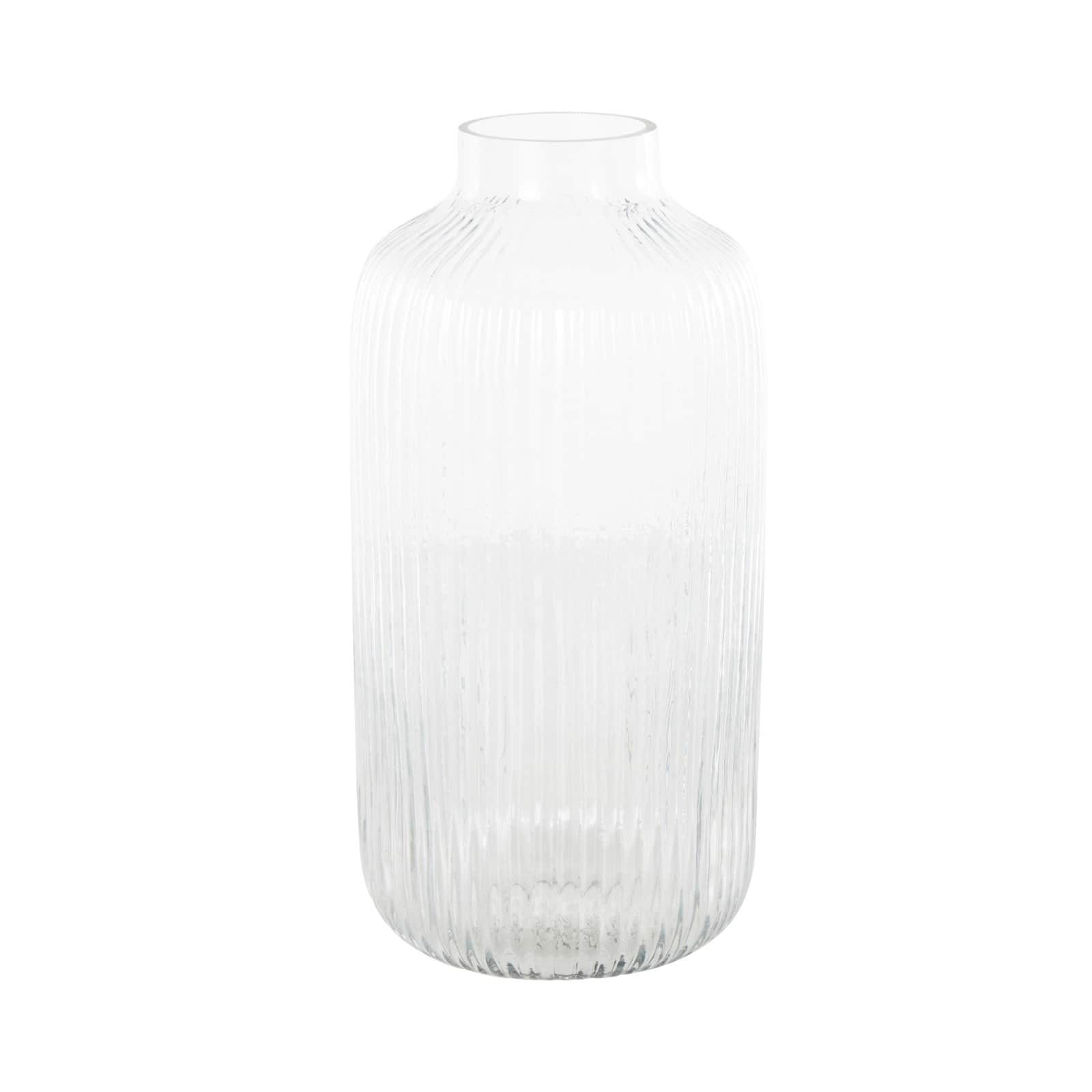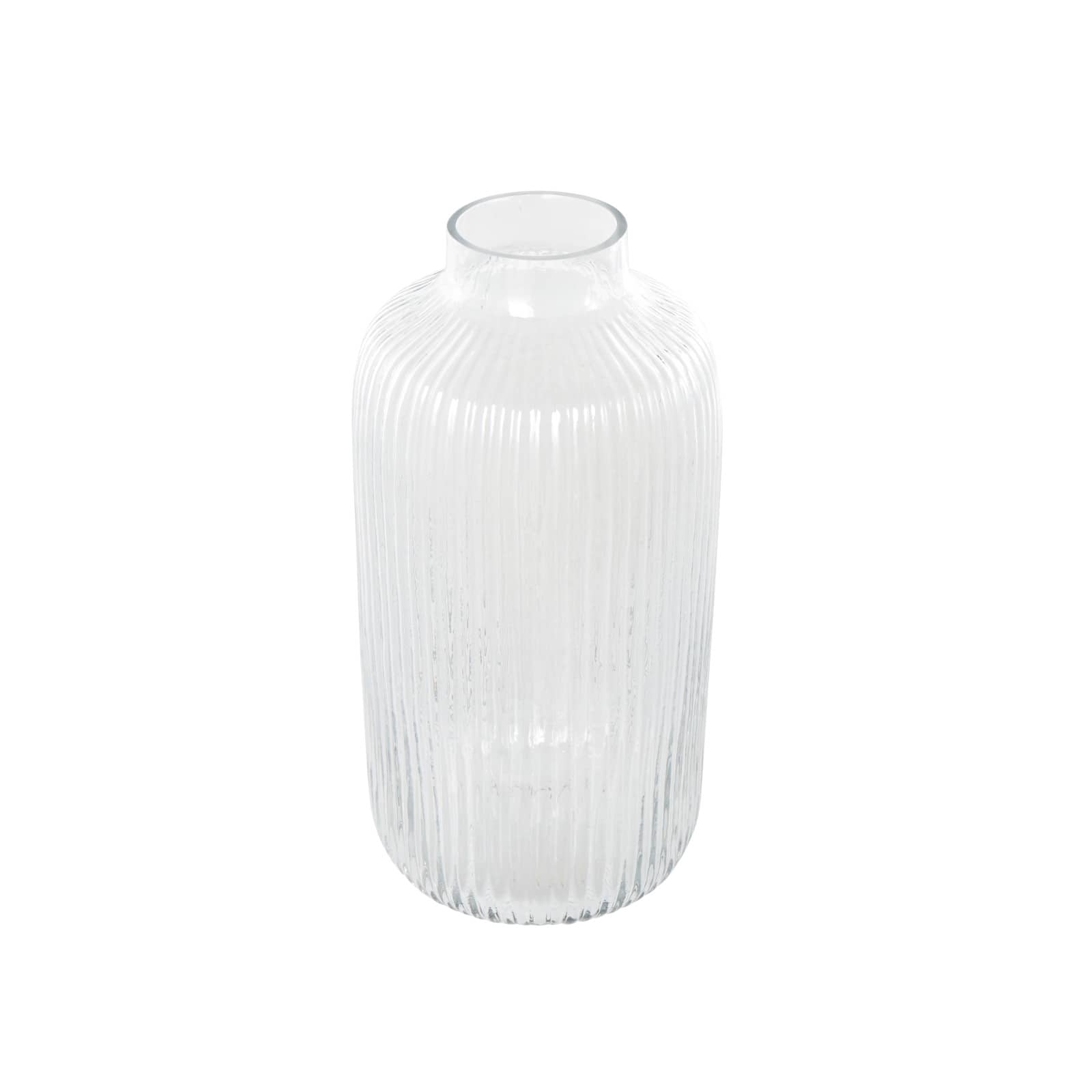 13" Clear Glass Ribbed Fluted Decorative Vase