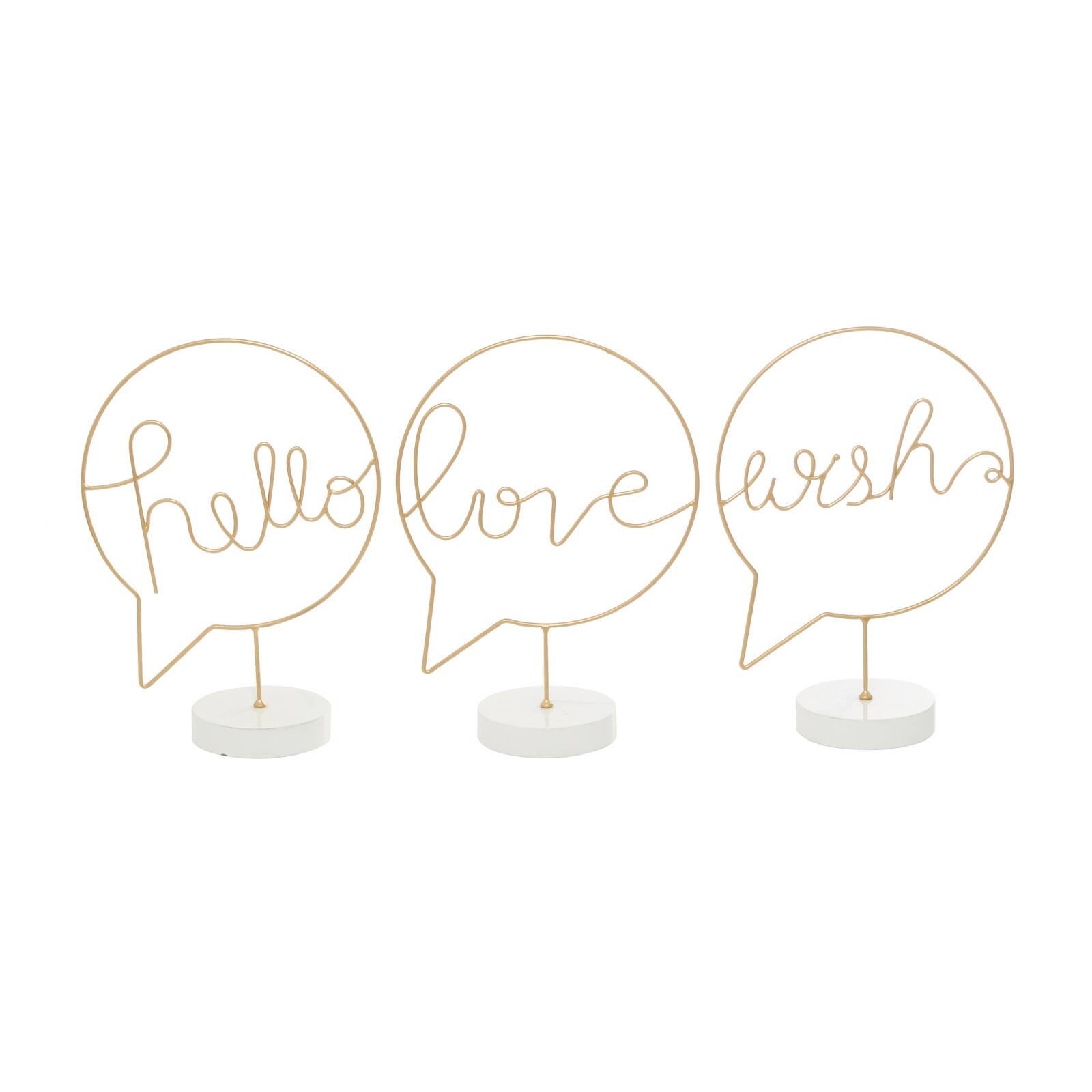 13" Gold Hello, Love & Wish Tabletop Sign Set