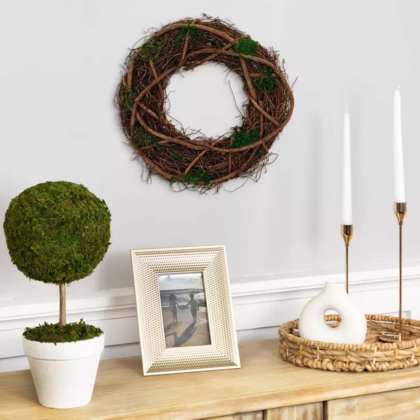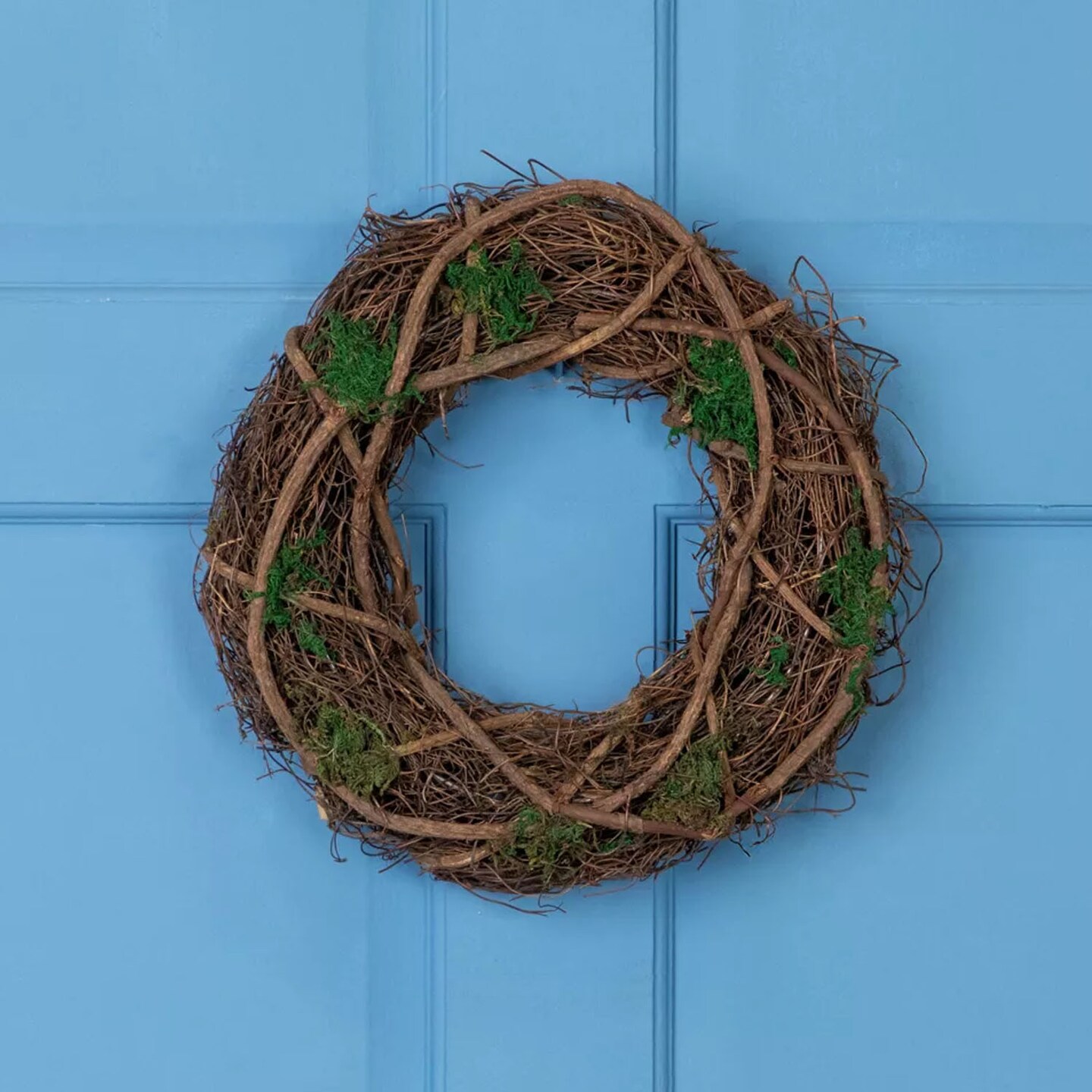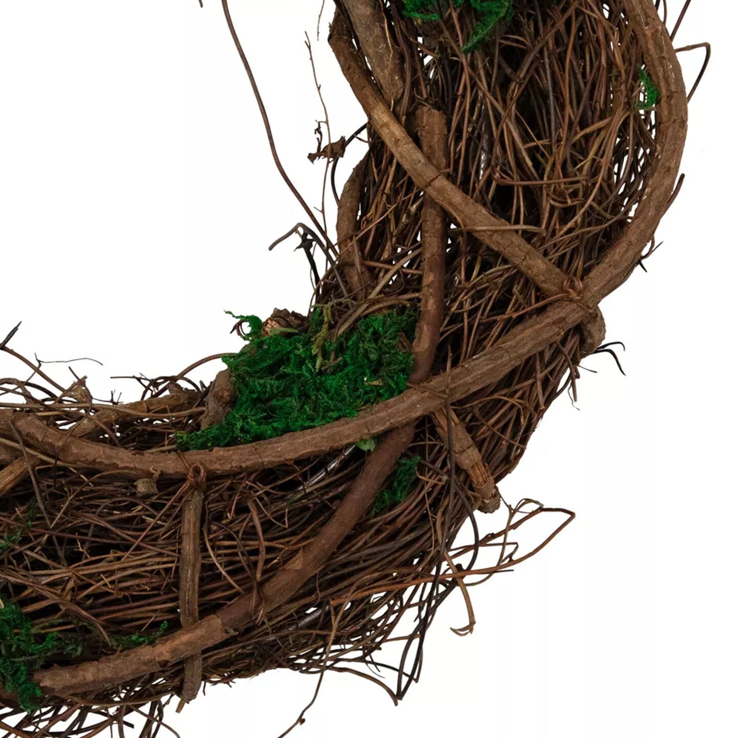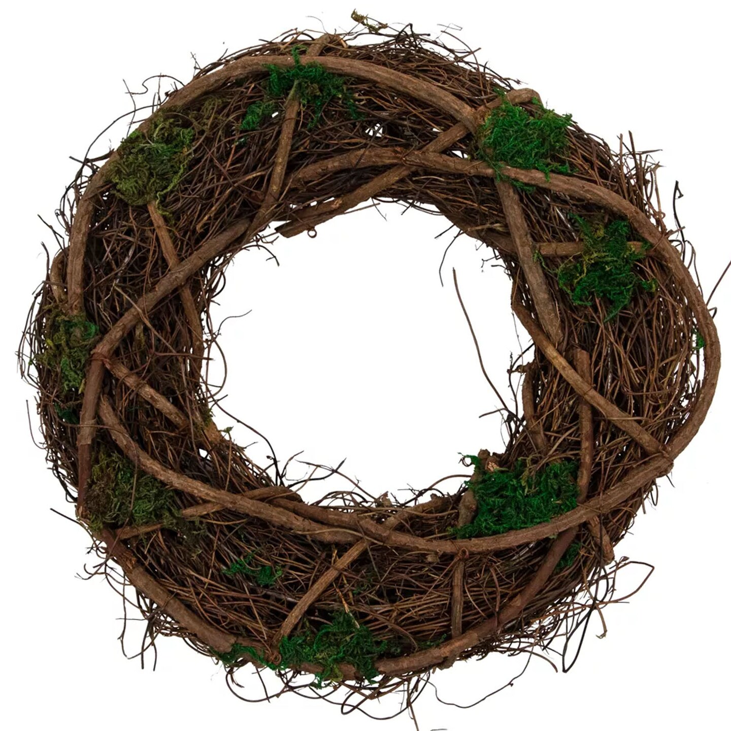 13" Green and Brown Moss Twig Wreath Artificial Rustic Spring Decoration