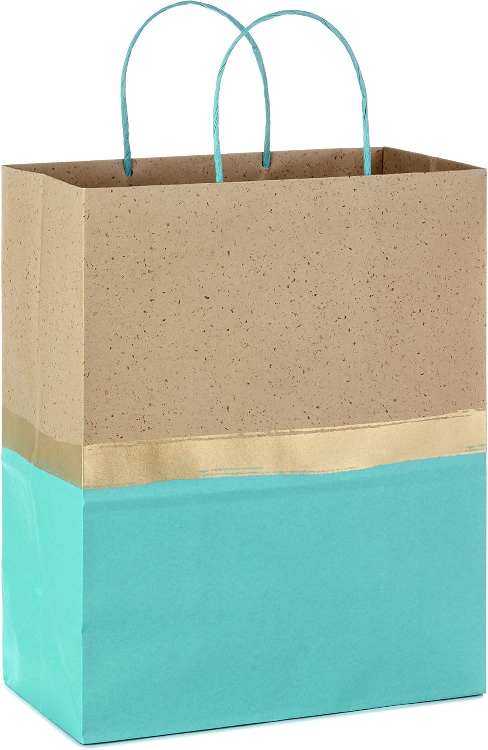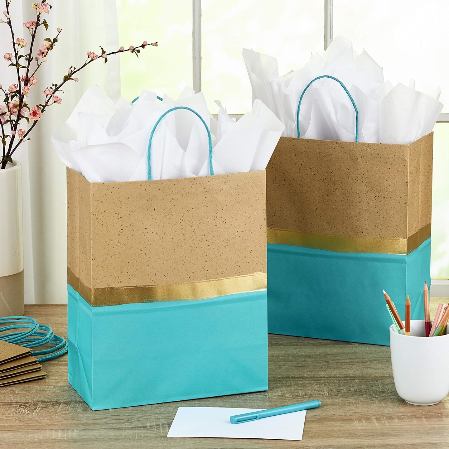 13" Large Paper Gift Bags – Pack of 6 Turquoise & Kraft Gift Bags with Handles for Birthdays, Easter, Weddings, Baby & Bridal Showers, Mother’s Day (Turquoise)
