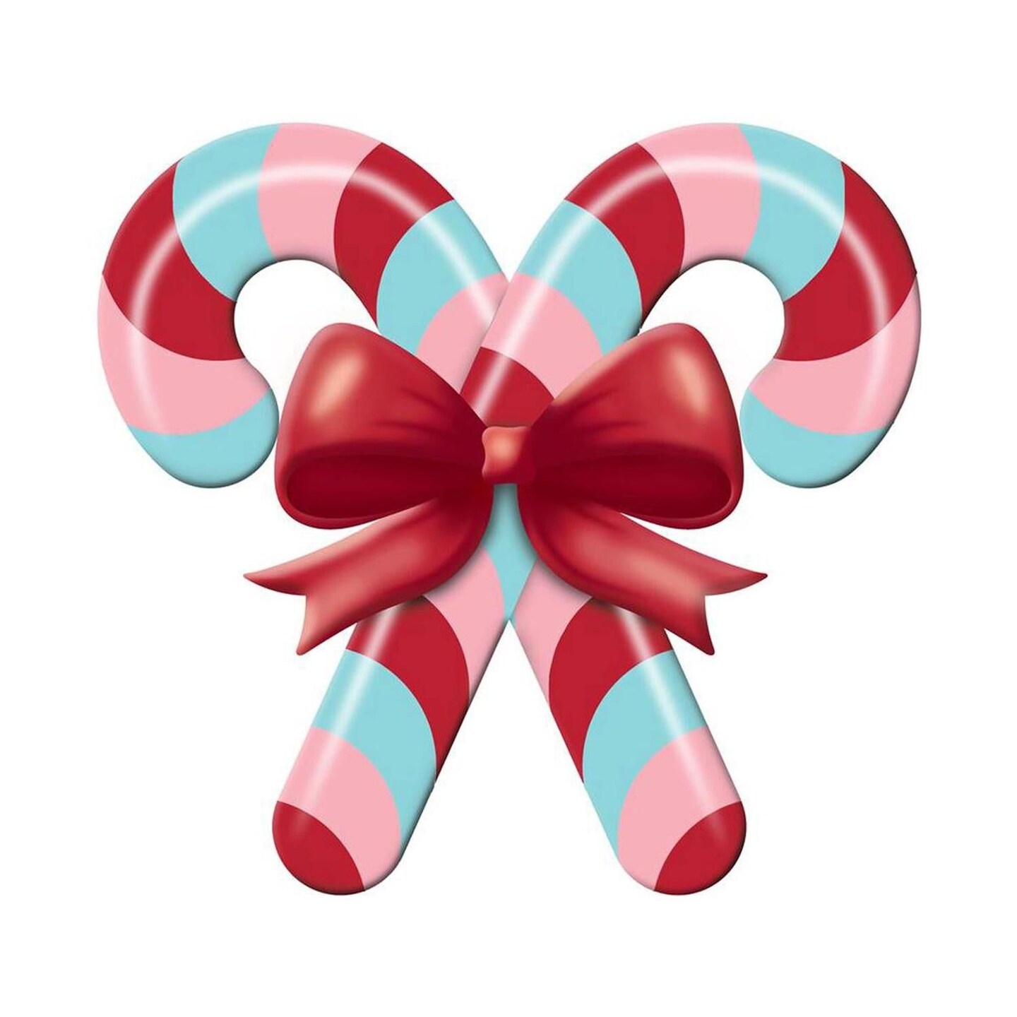 13" Metal Embossed Candy Canes: Pink/Ice Blue