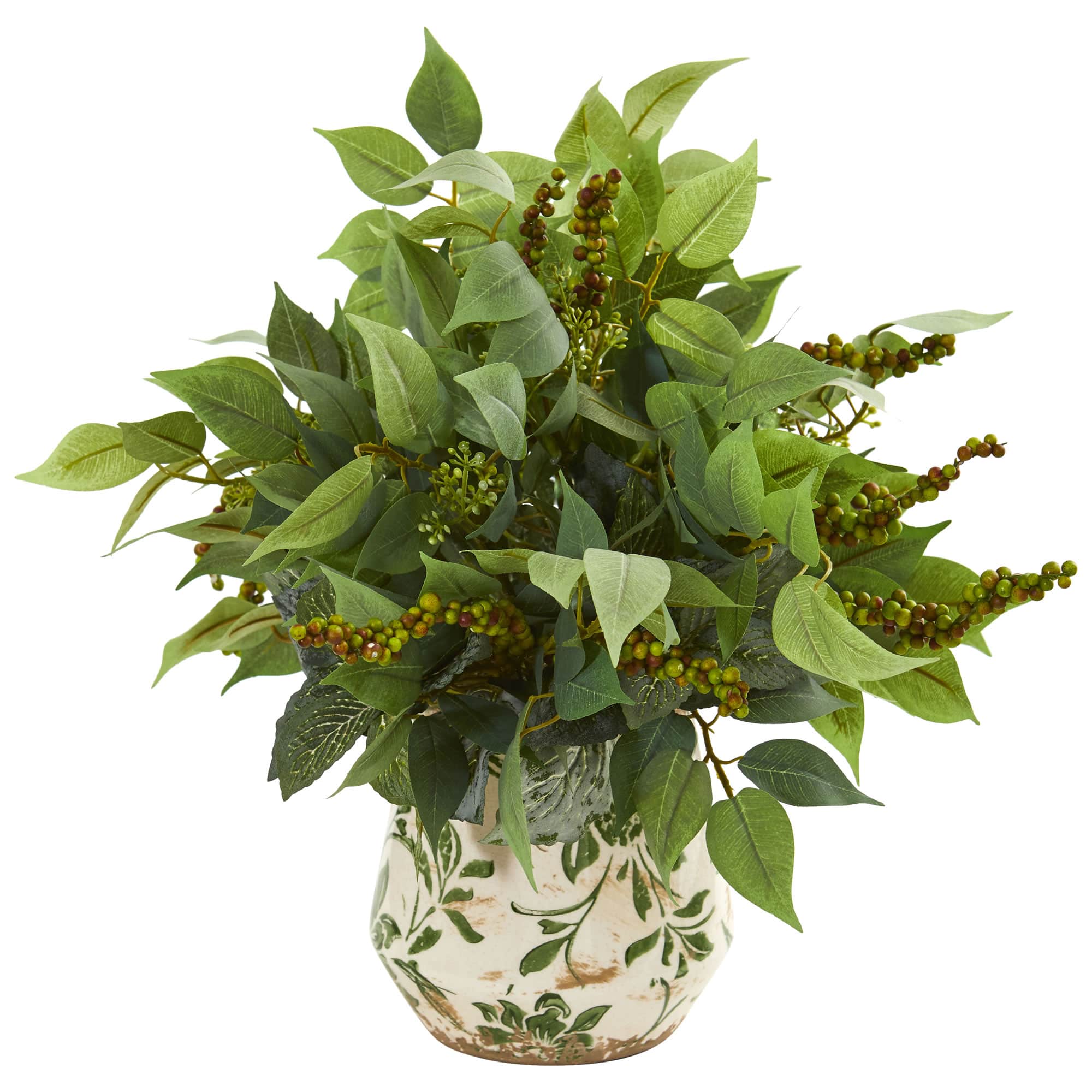 13" Mixed Ficus, Fittonia & Berry in Floral Vase
