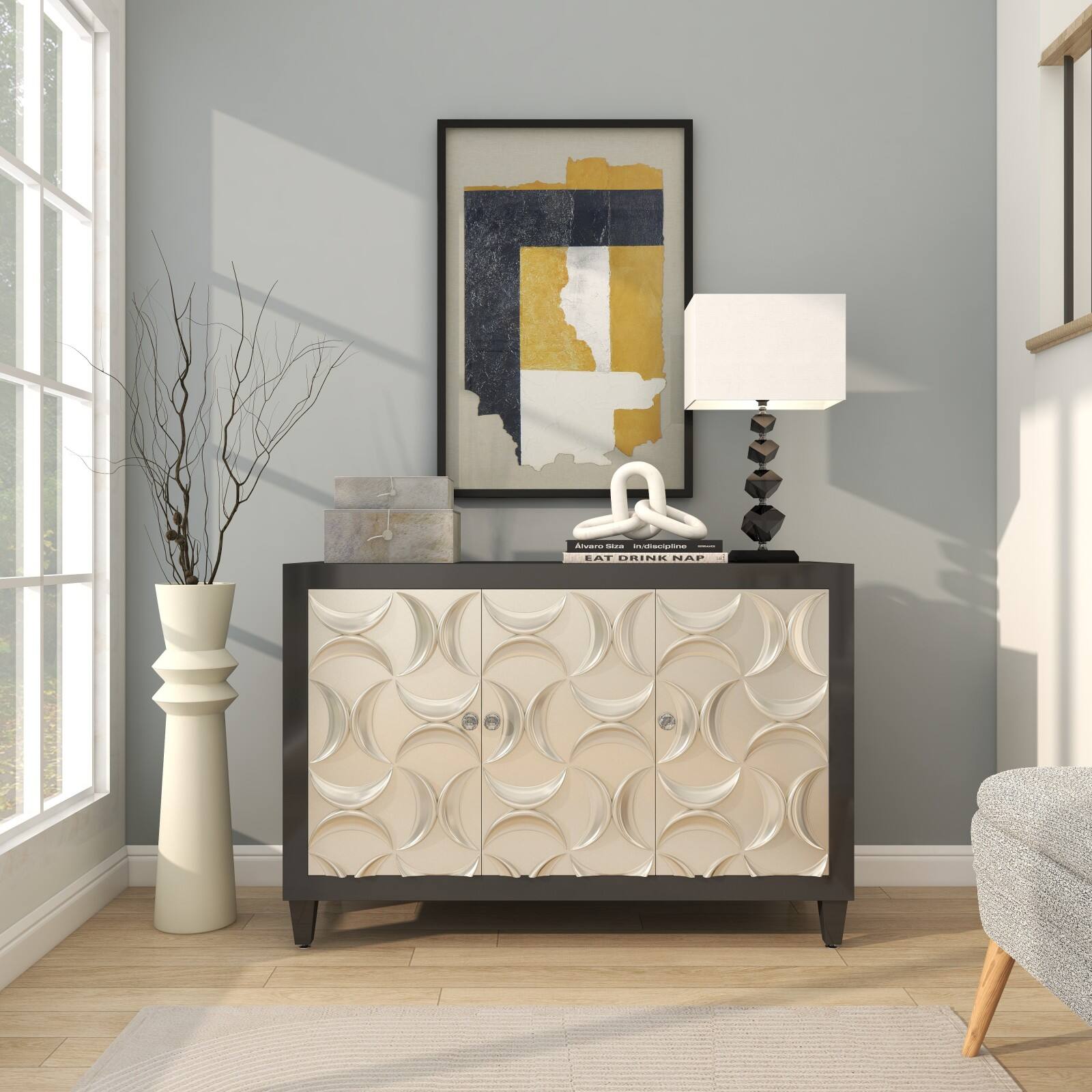 13" White Marble Geometric 3-Link Chain Sculpture Décor