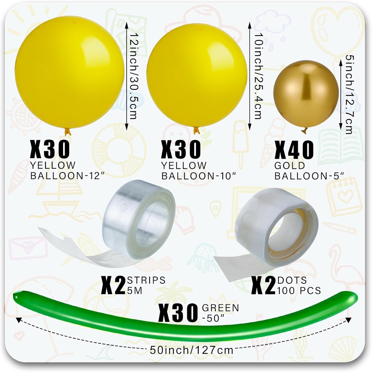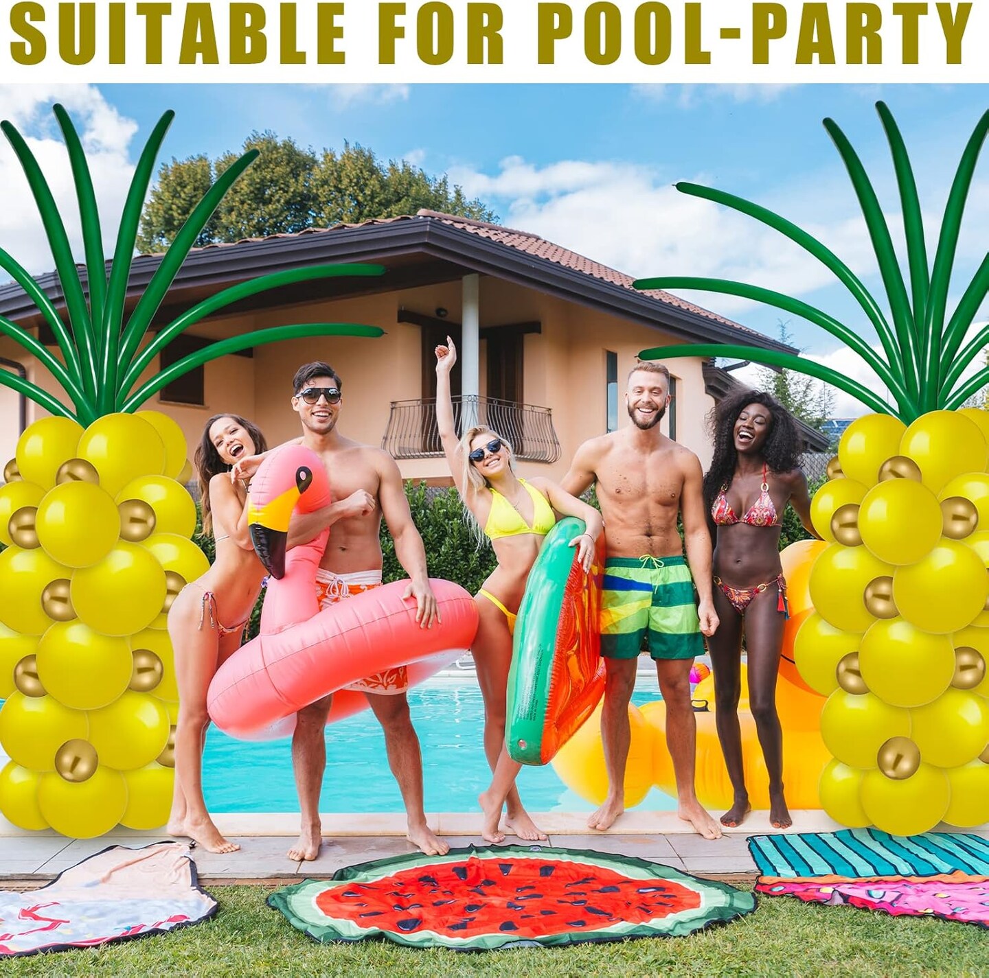 130 Pcs Tropical Garland Kit With Pineapple Balloons - 5'' 10'' 12'' Yellow Gold Green Long Latex Fruit Balloons for Summer Luau Hawaii Aloha Birthday Party Decorations