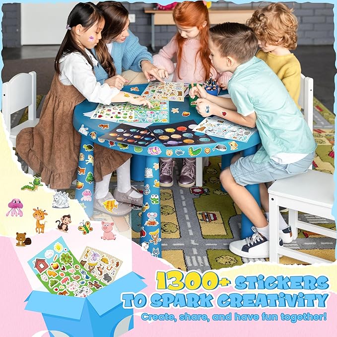 1300+ Kids Stickers, Cute Animals Water Bottle Stickers, 8 Sheets Children’s Scrapbooking Stickers for Classroom Rewards, Crafts, Christmas & Party Favors