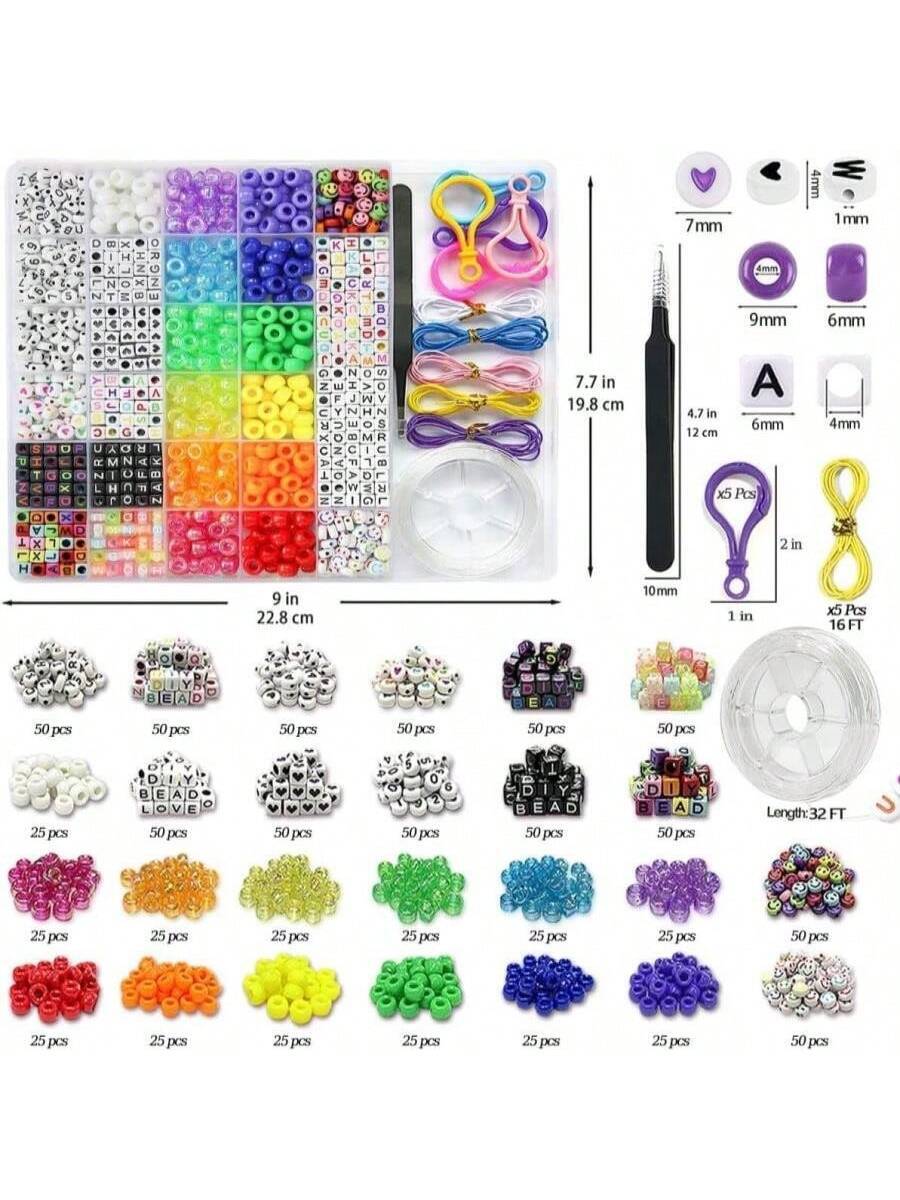 1300 Pcs DIY Childrens Crafts Beads Friendship Bracelet Kit With Pony Beads Letter Beads