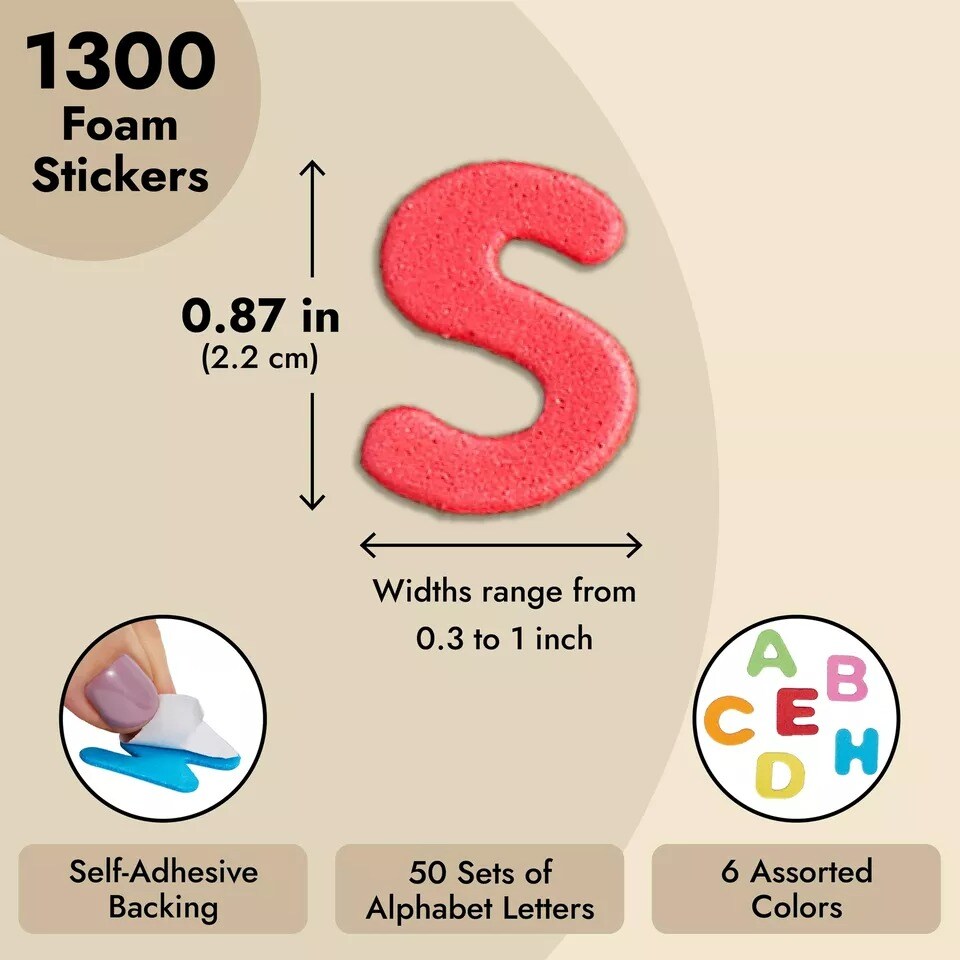 1300 Pieces Small Foam Letter Stickers for Crafts, 50 Sets of A-Z Alphabets