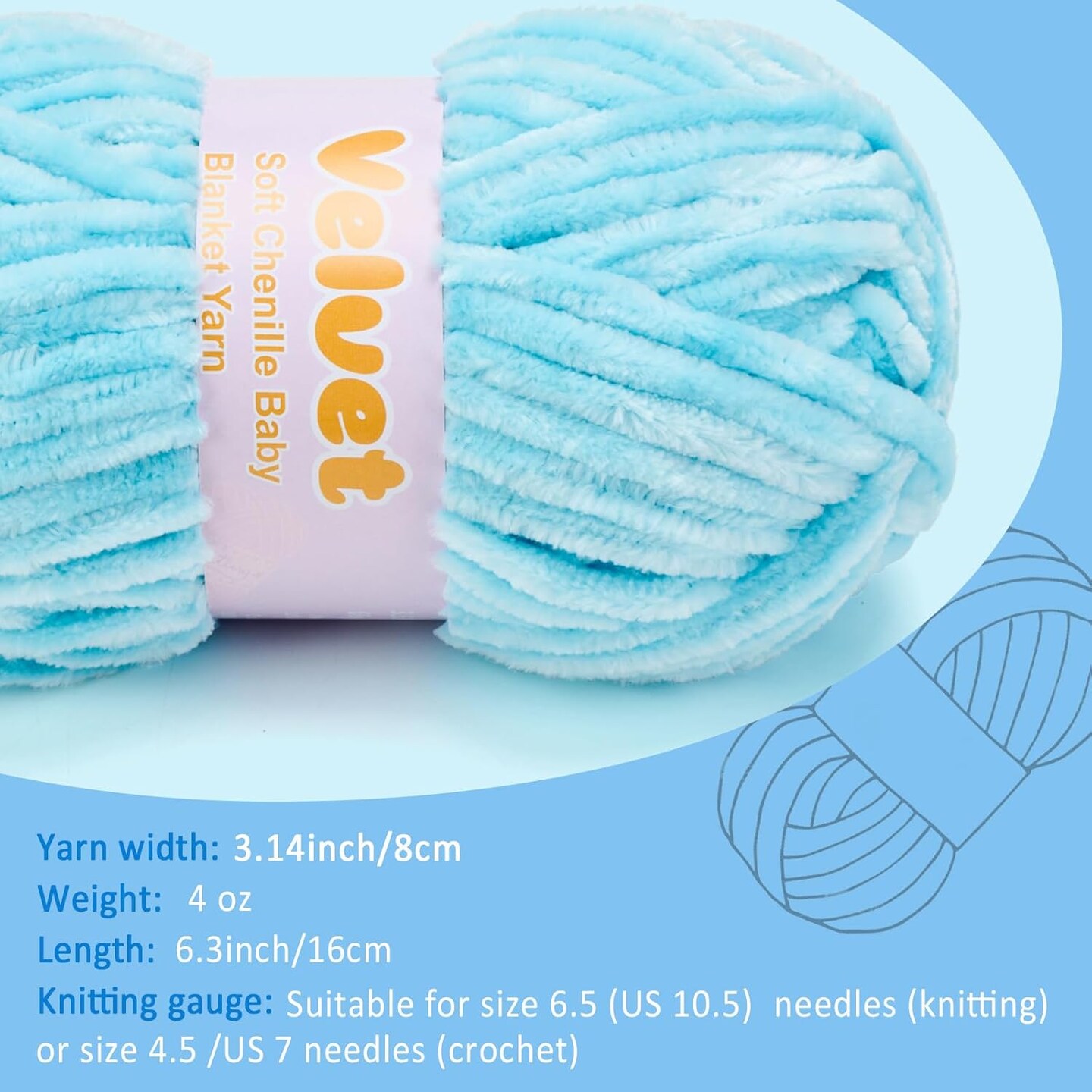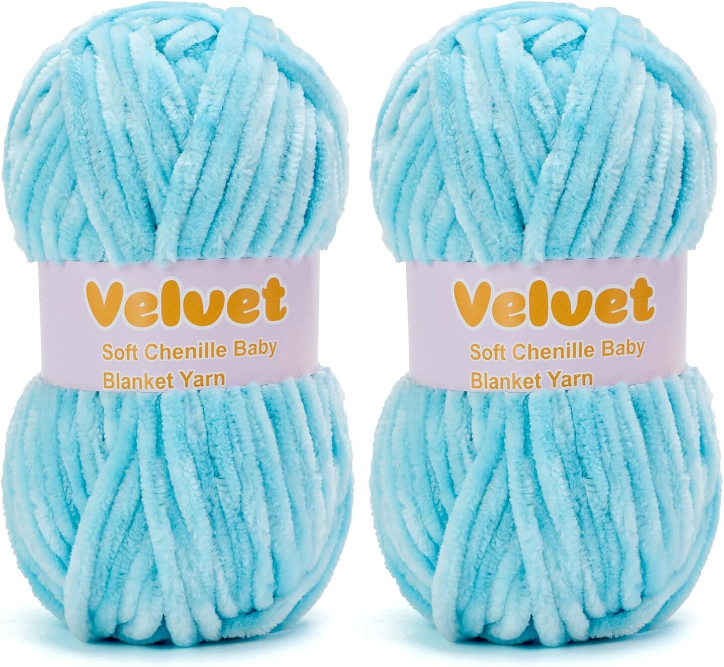 132 Yards - 2pcs Velvet Yarn Chenille Yarn for Crocheting(Blue)