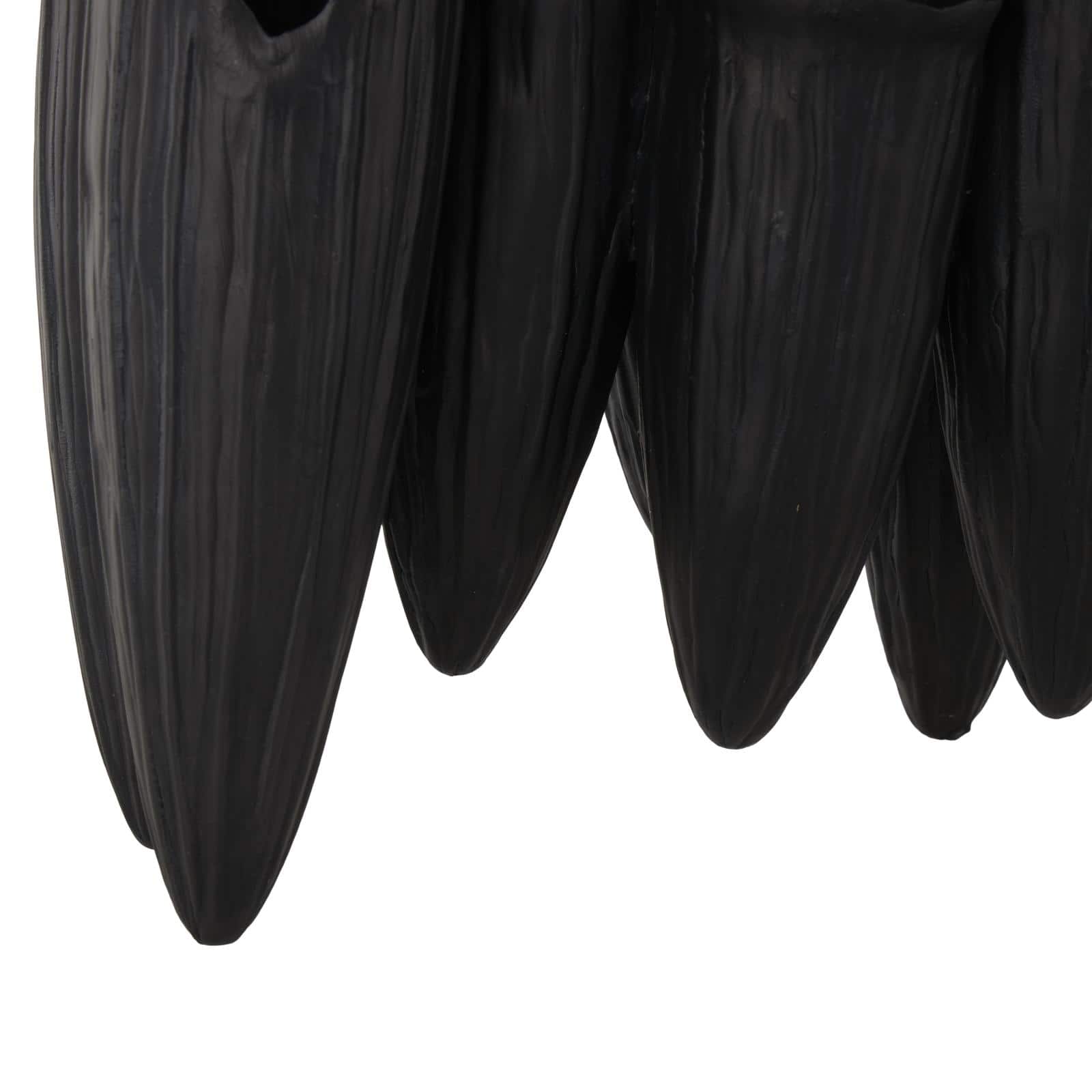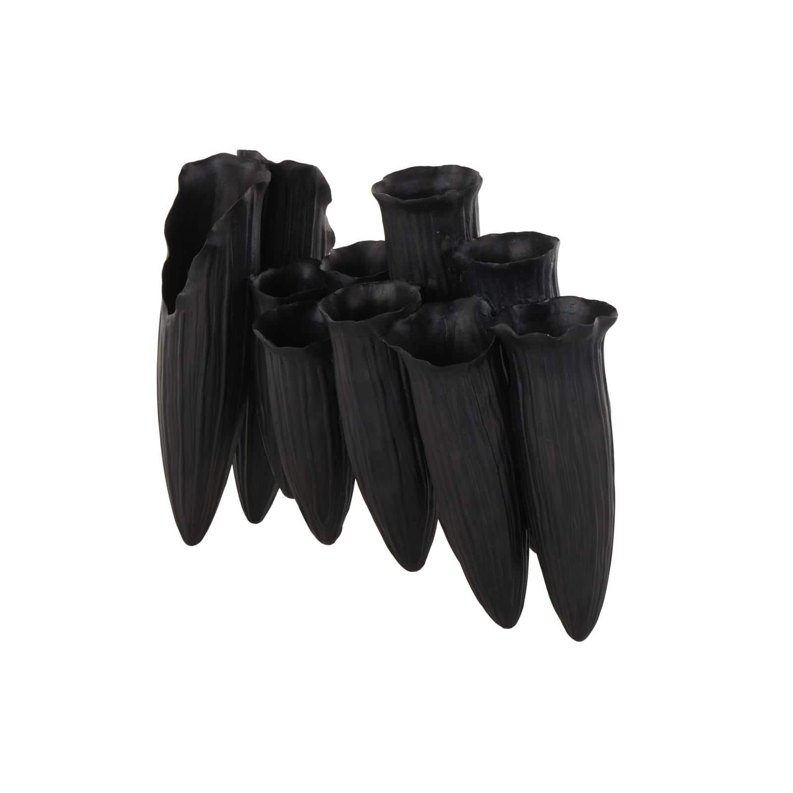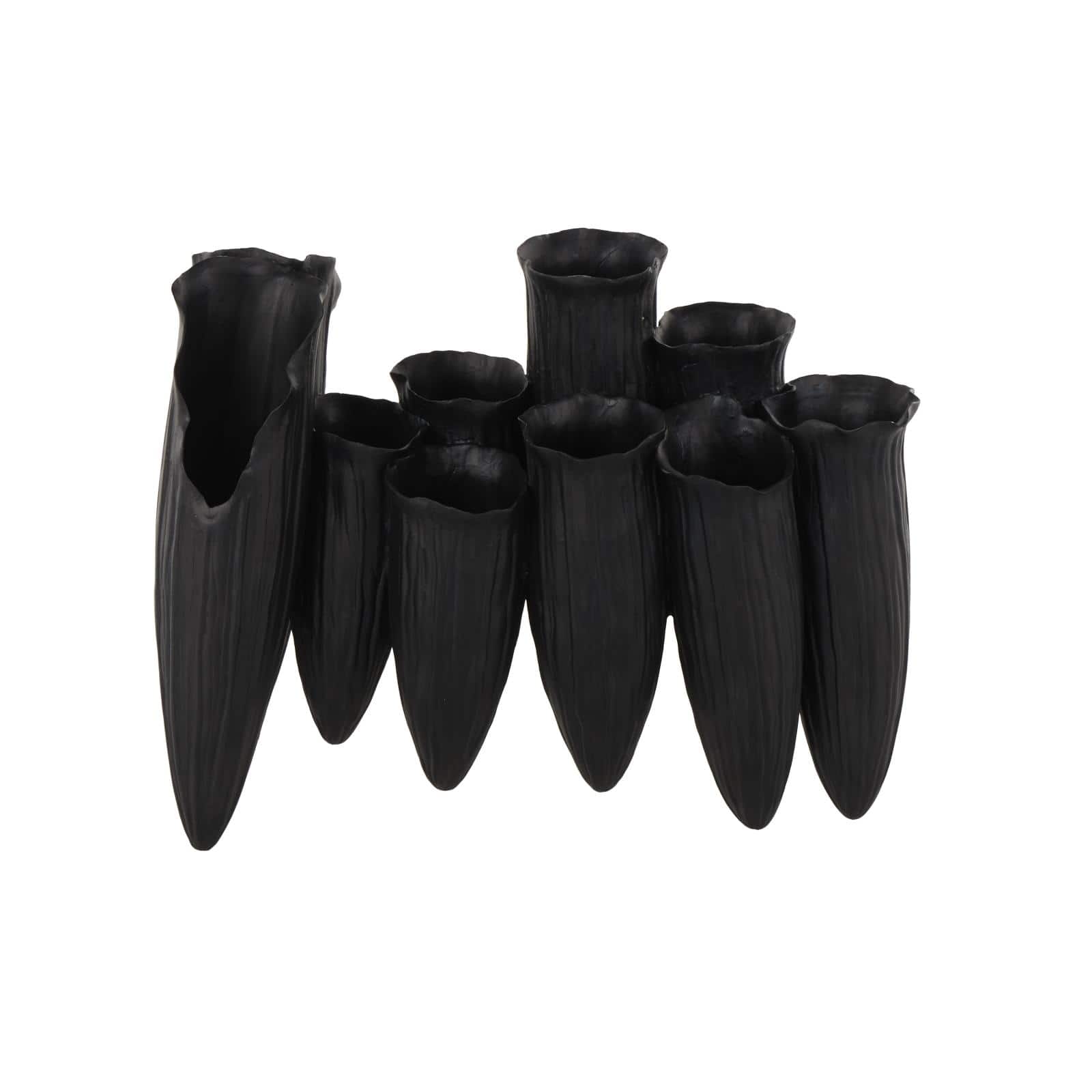 13.25" Black Ceramic Abstract Floral Inspired Decorative Vase with Linear Grooves & 10 Openings