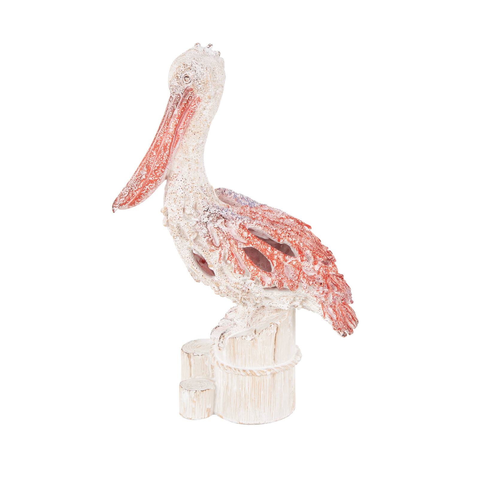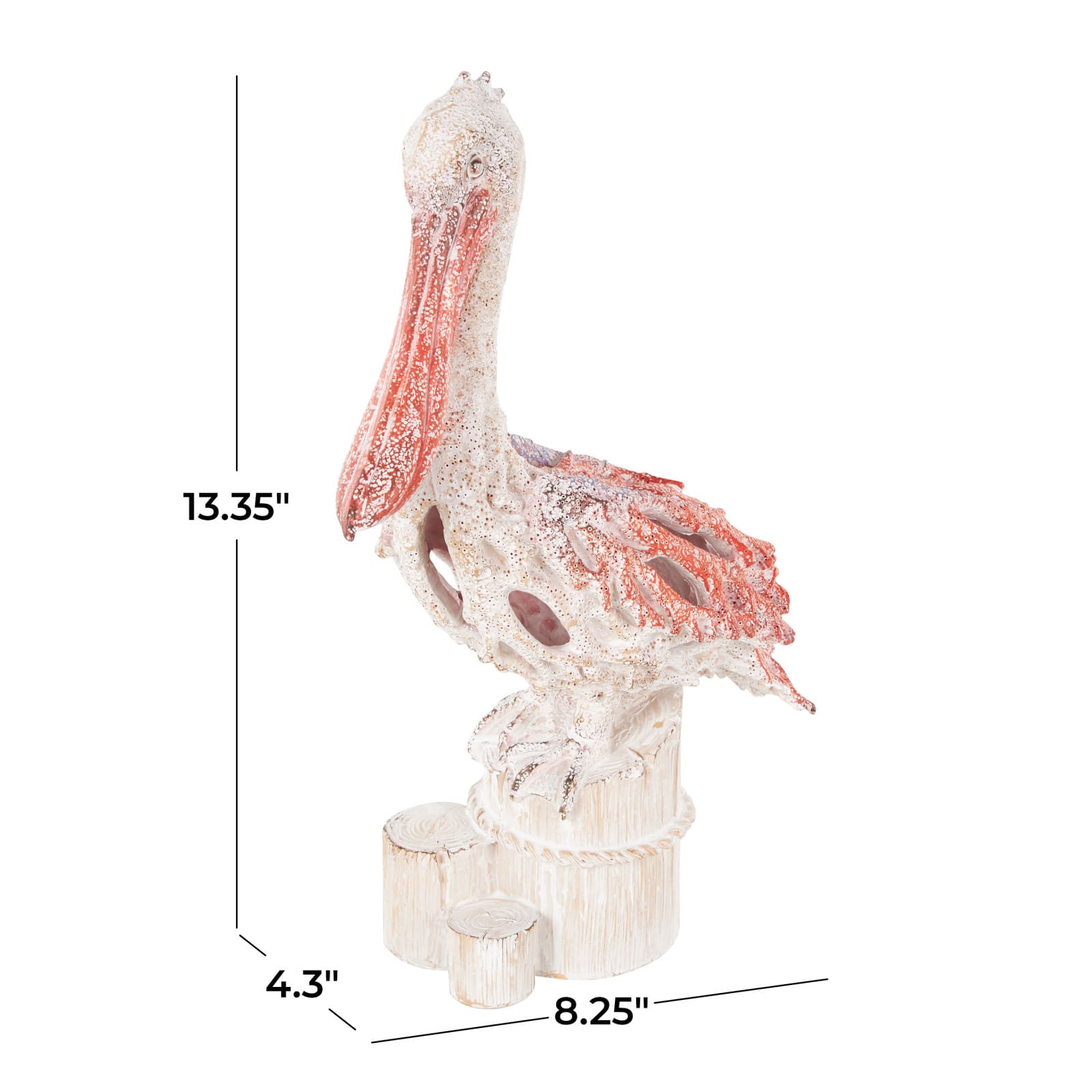 13.25" Pelican Textured Decorative Sculpture with Feathers & Round Blocks