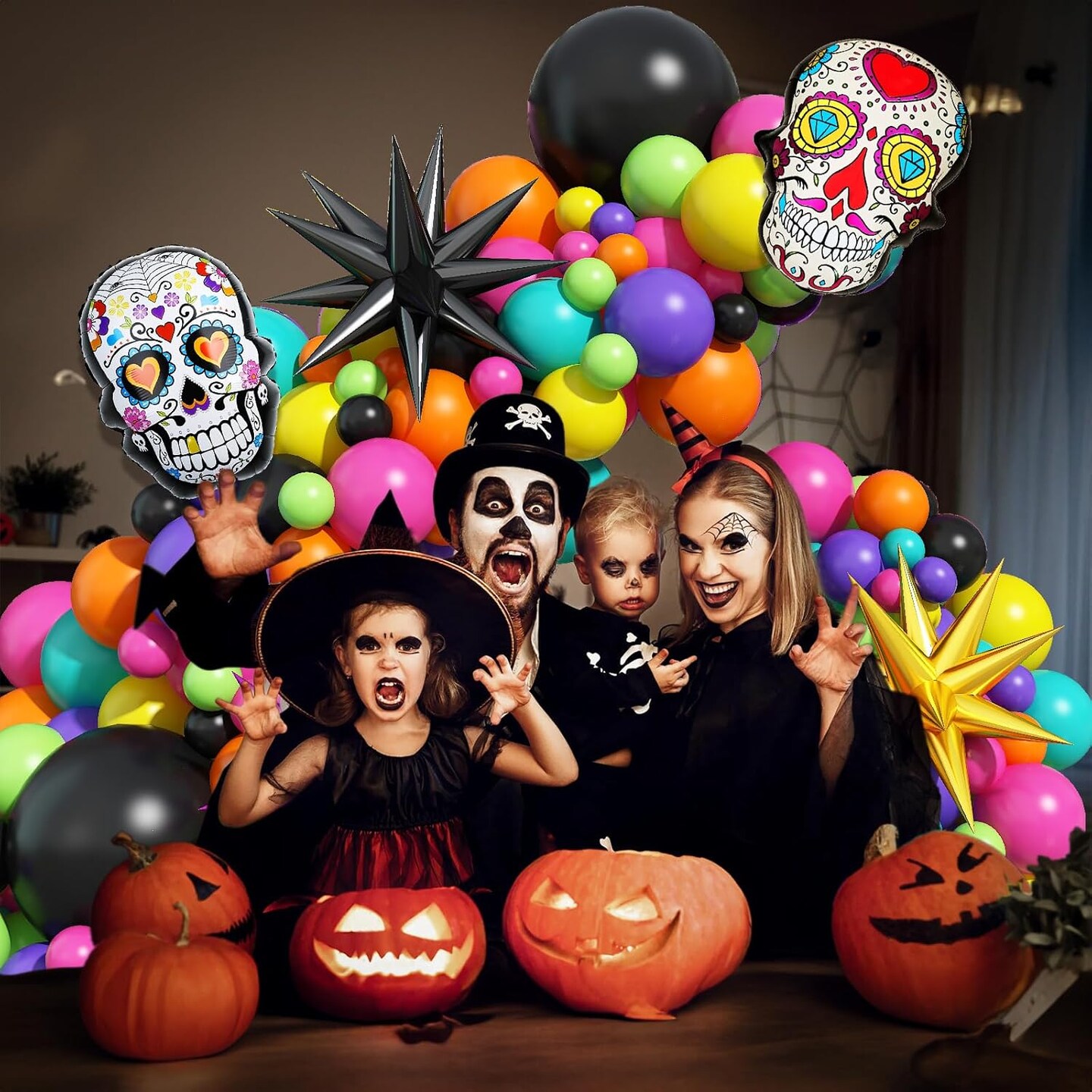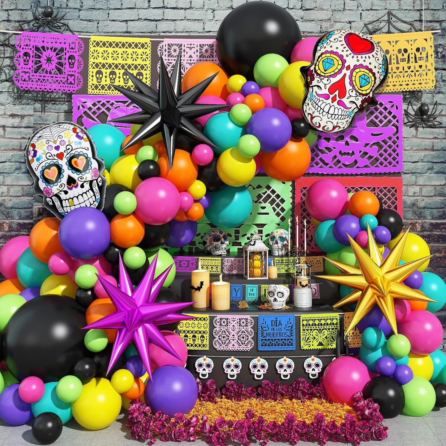 135 Pcs Day of the Dead Balloon Arch Kit Dia De Los Muertos Decorations(Colorful)