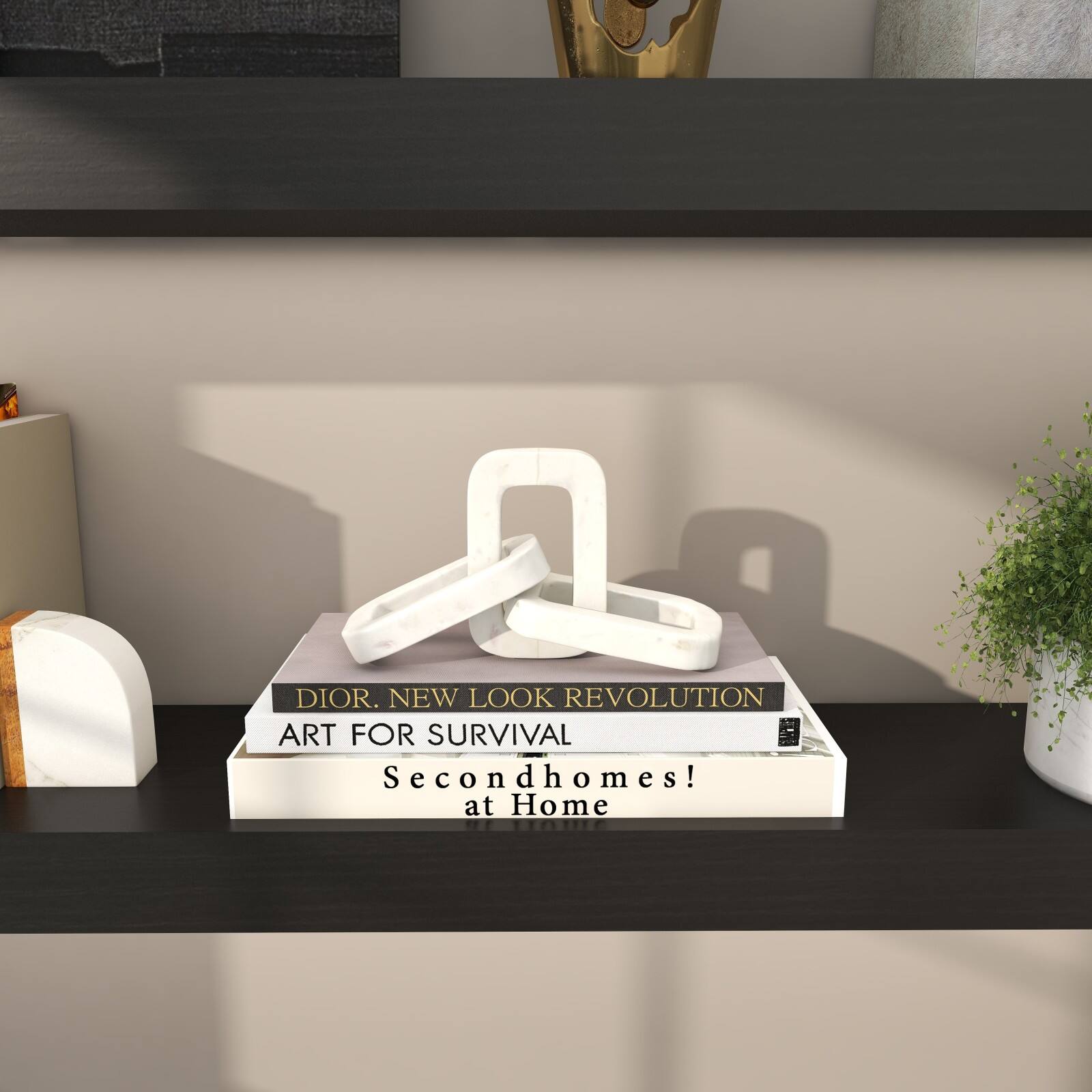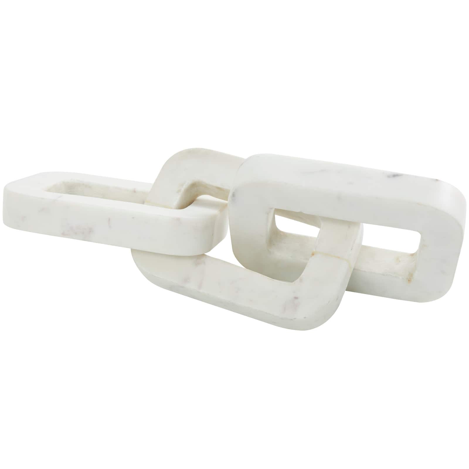 13.5" White Marble Geometric Chain Link Sculpture Décor