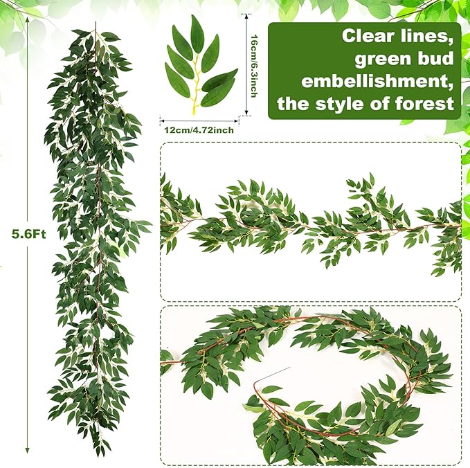 135ft Artificial Faux Greenery Garland Willow Leaves Vines Hanging Willow Vines Leaf Garland for Indoor/Outdoor Wedding Party Decor Wedding Table Centerpieces (Green,36 Pack)