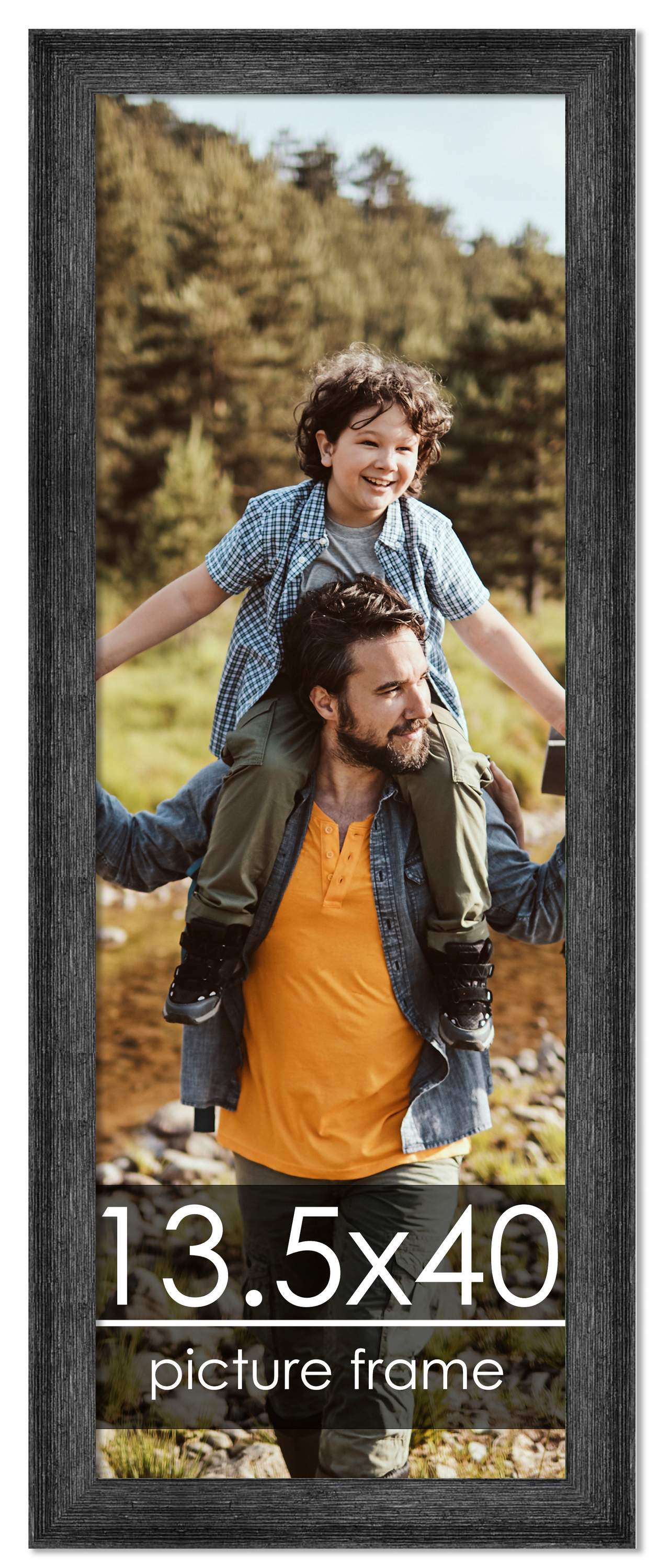 13.5x40 Wide Barnwood Picture Frame with UV-Resistant Acrylic & Acid Free Backing, Available in 6 Paint Finishes - Grey, Brown, White, and Black