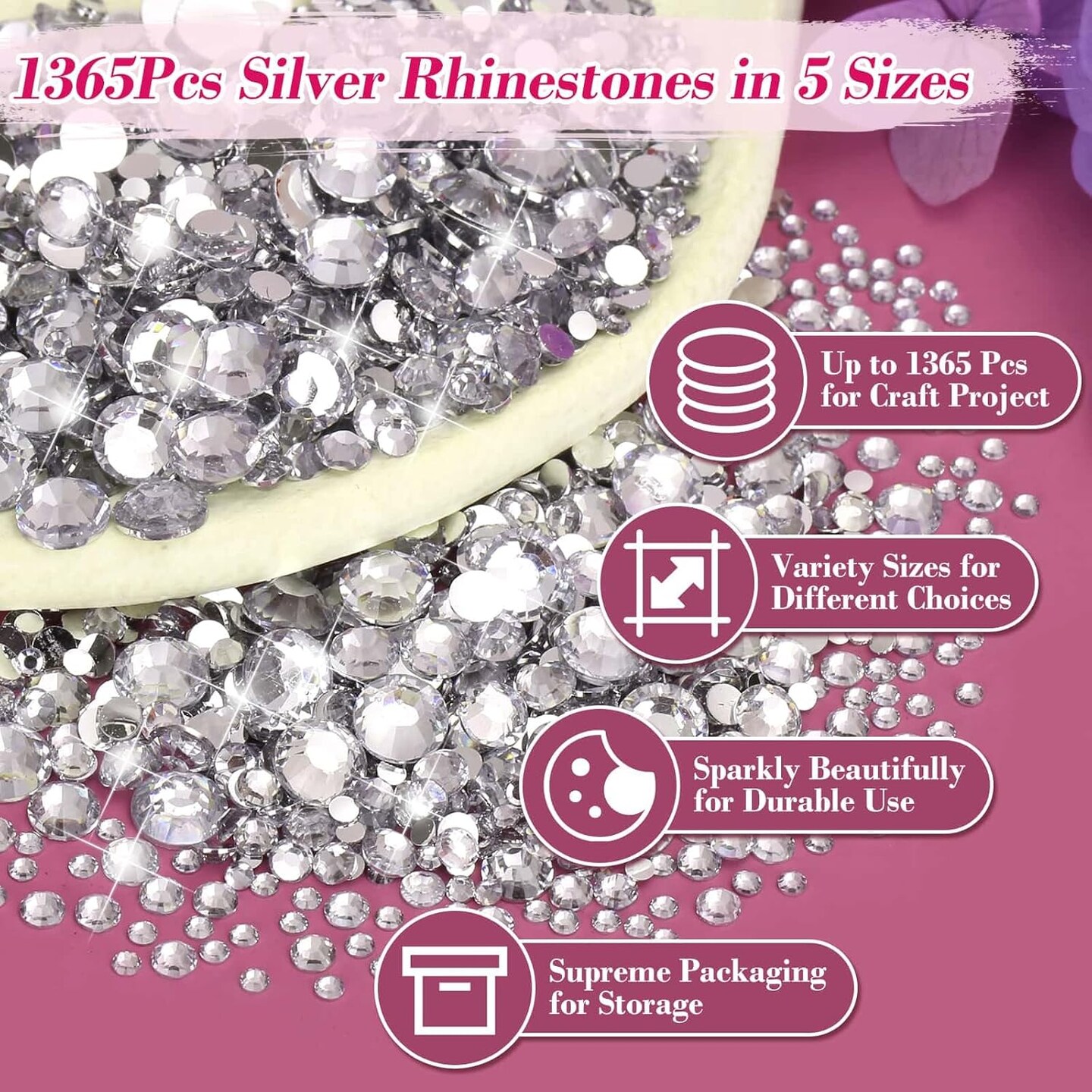 1365PCS Flatback Rhinestone with Glue and Precision Tip (Clear)
