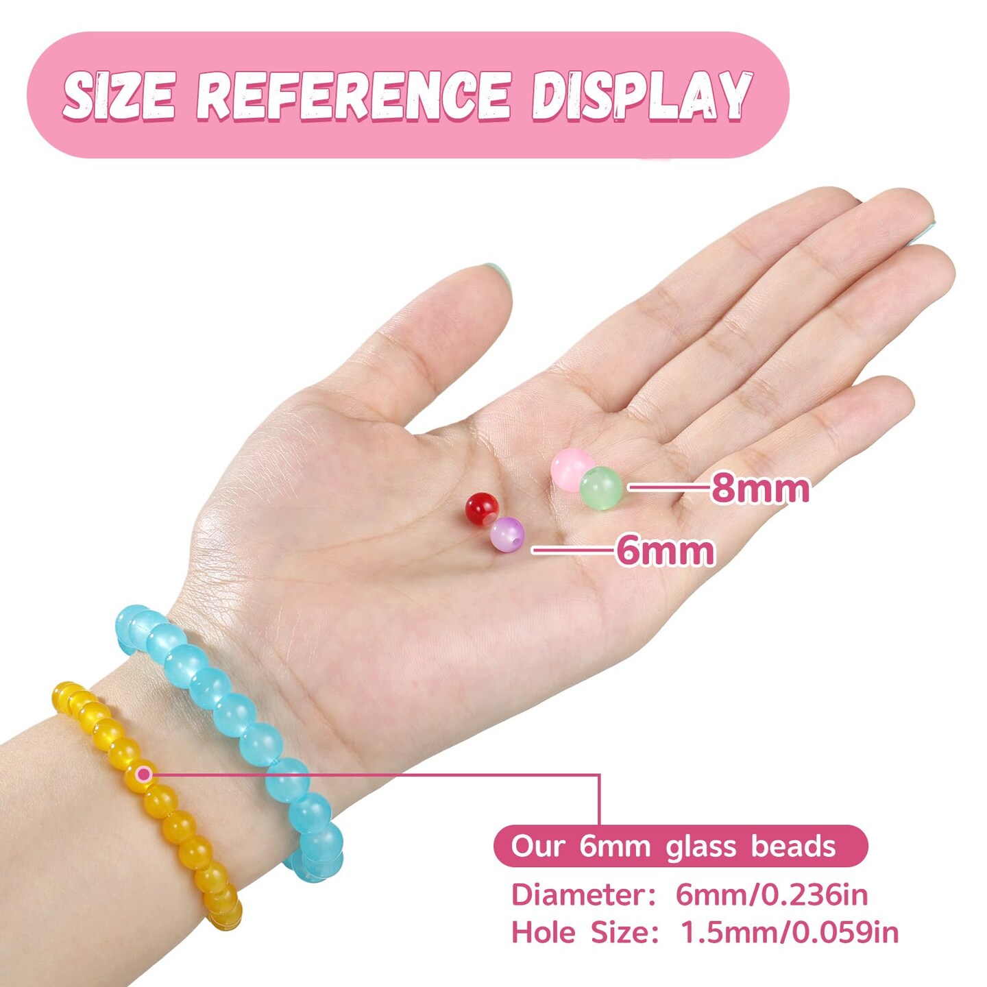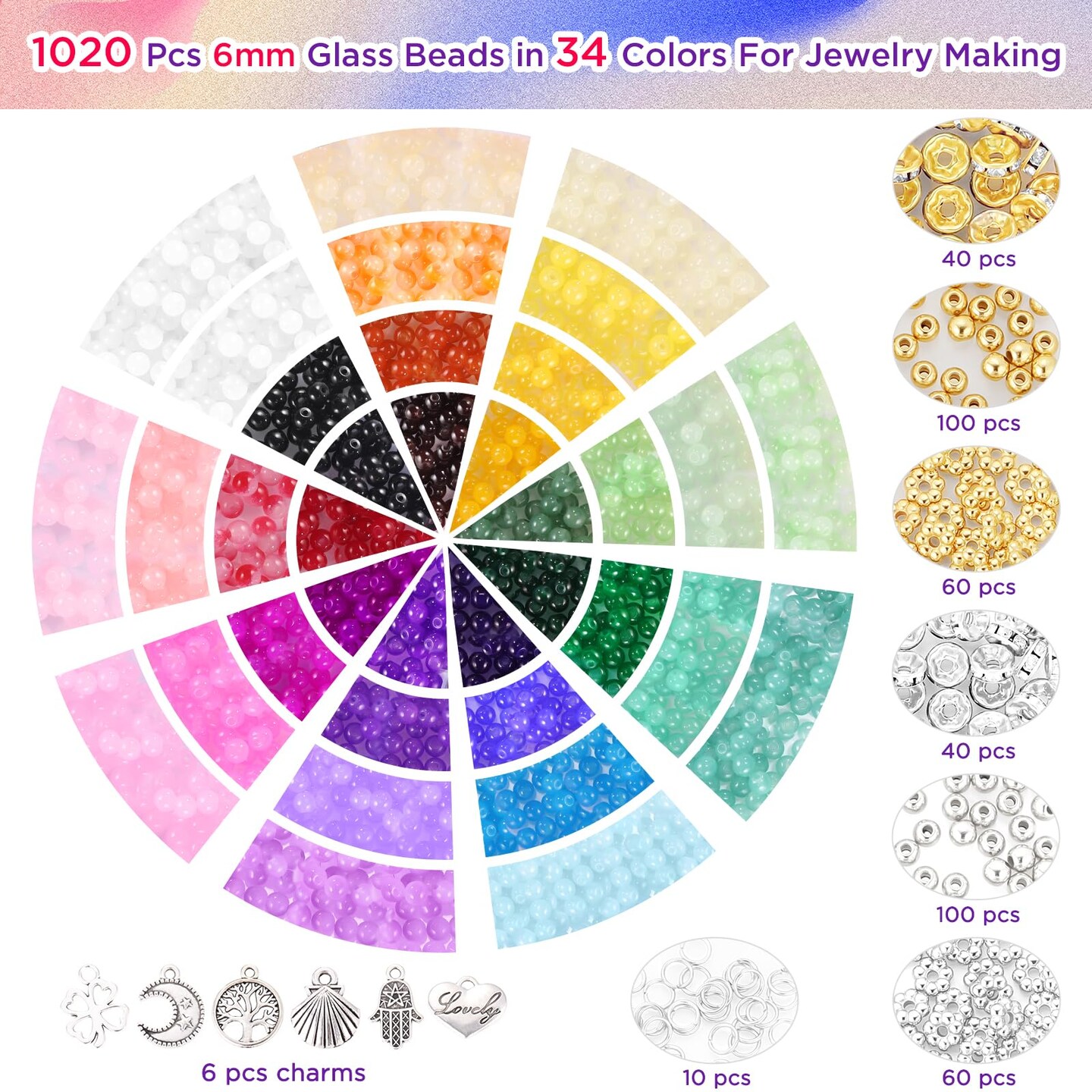 1368pcs 6mm Glass Beads for Bracelets, 34 Colors Crystal Beads for Jewelry Making, Funtopia Round Glass Beads for DIY Earrings Necklace Crafts with Spacer Beads and Charms, Solid and Gradient Colors