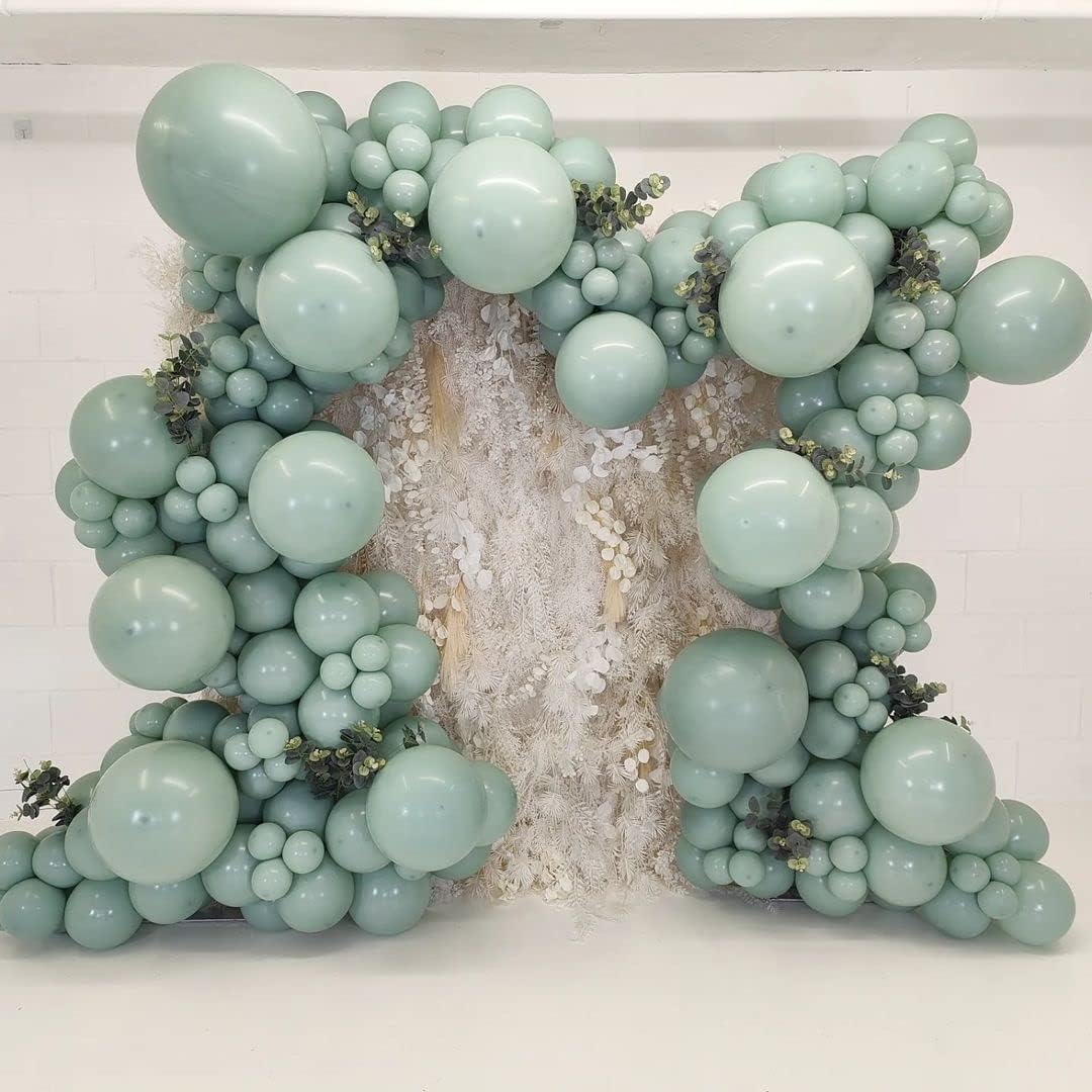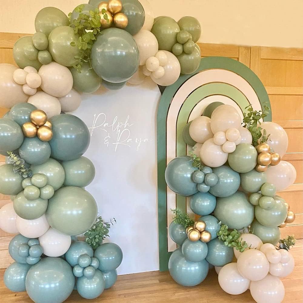 136PCS Dusty Green Blue Balloon Garland Arch Kit Green Ash Mist Green Blue Haze Fog Blue Sand White Gold Balloons for Boho Baby Bridal Shower Wedding Birthday Party Decorations
