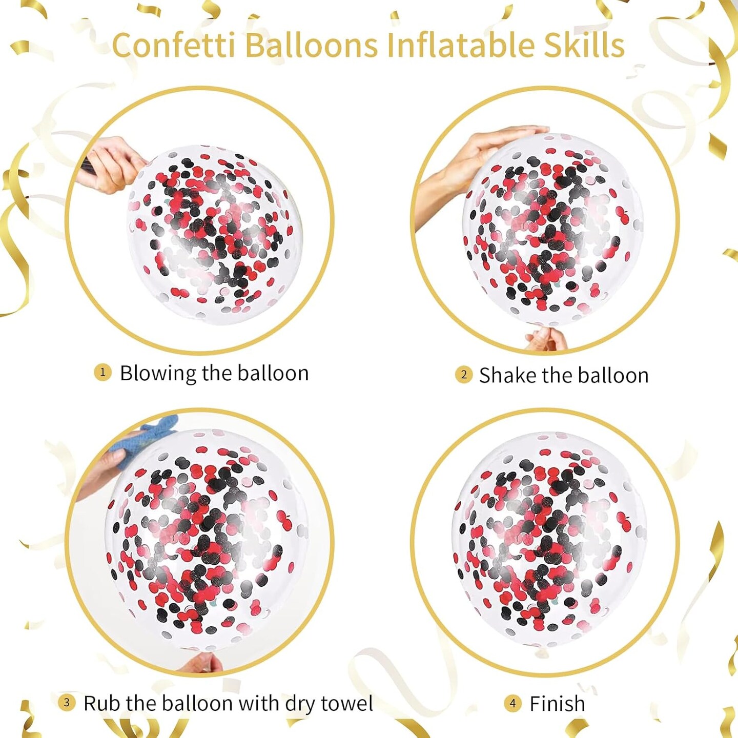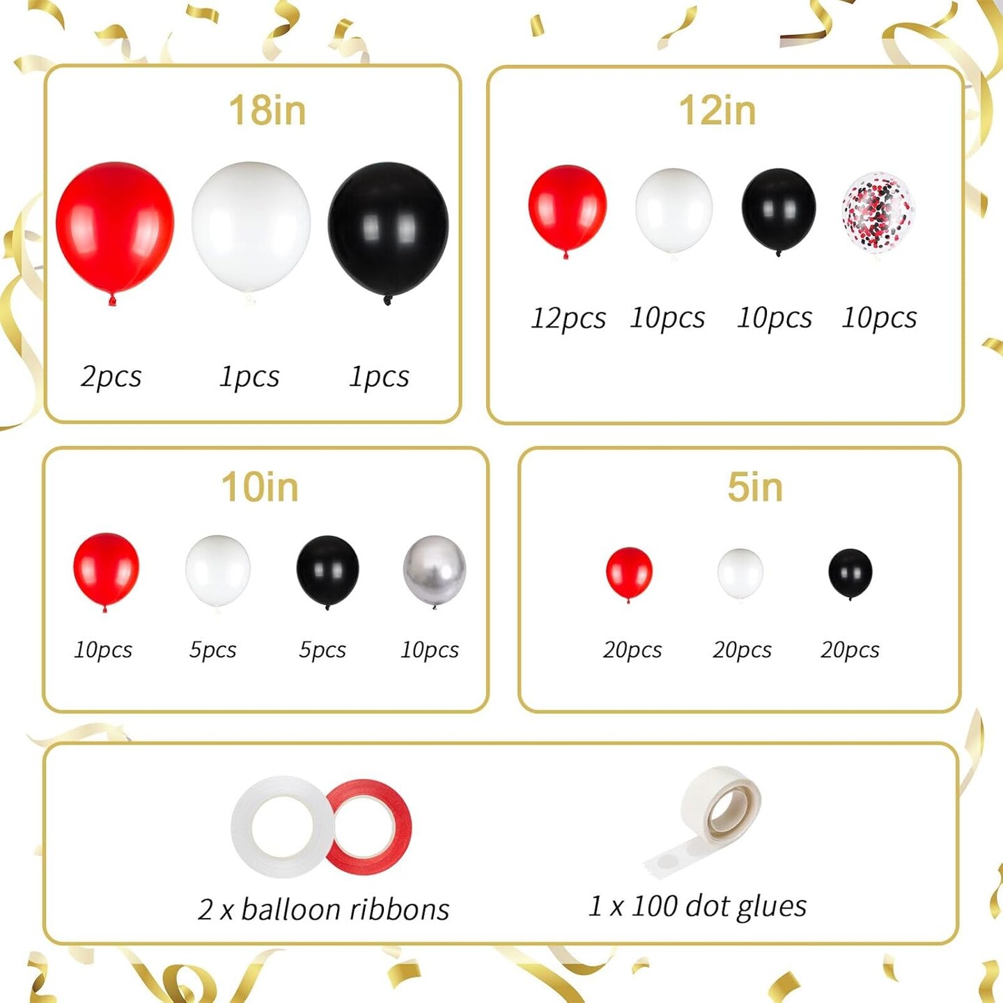 136pcs Red and Black Balloons Arch kit, 18 12 10 5 Inch Red and White Silver Confetti Balloons(Black & white & red)