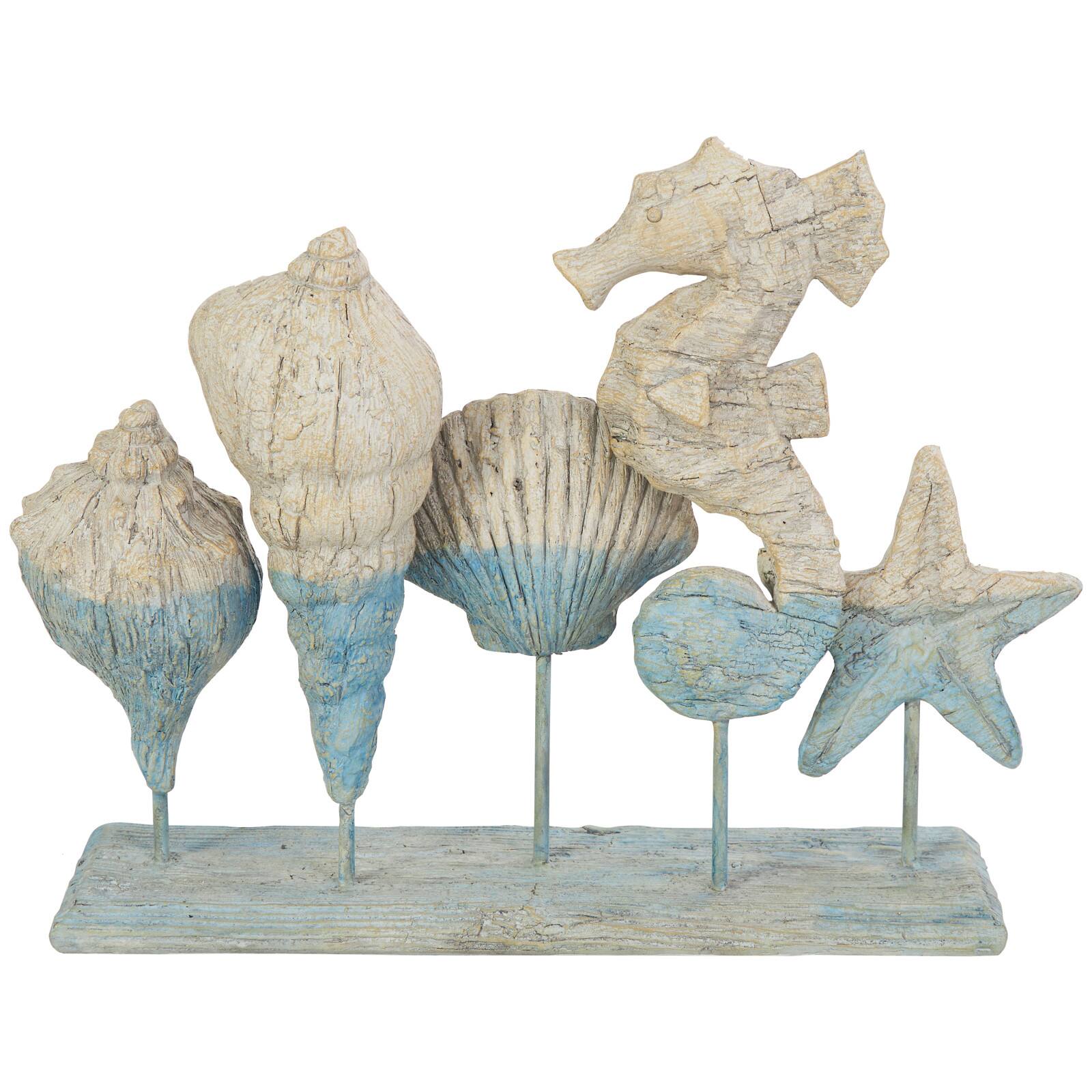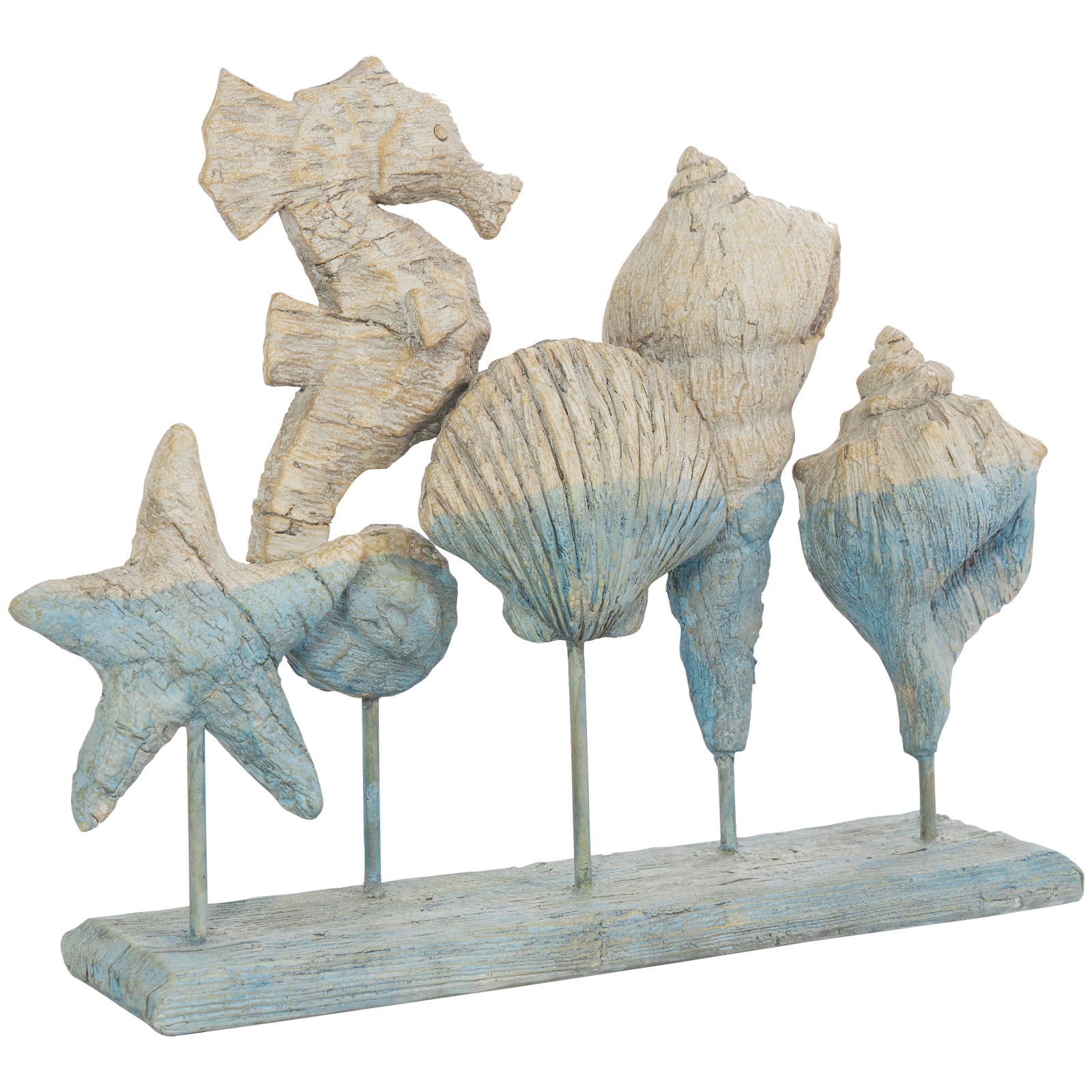 13.75" Light Blue Polystone Ombre Shell & Seahorse Textured Sculpture