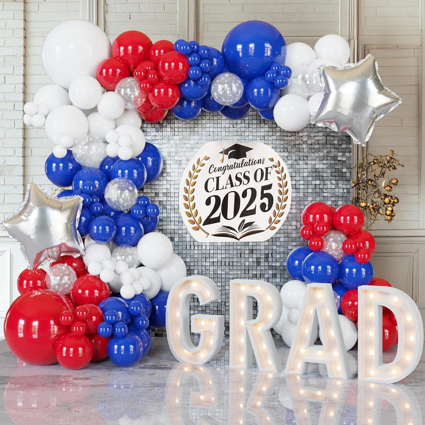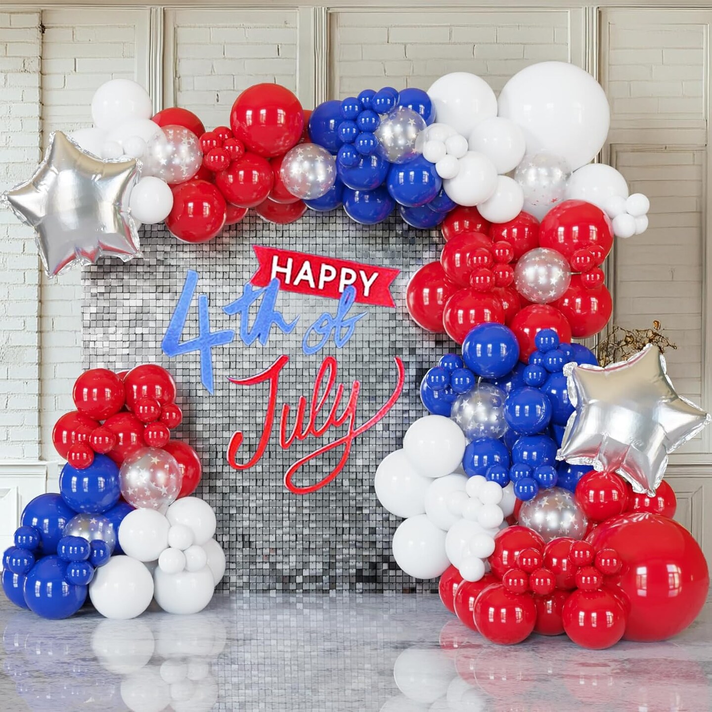 137-Piece Red, White & Blue Balloon Arch Garland Kit – Silver Star Foil Balloons for 4th of July, Patriotic Parties, Graduation, Baseball, Nautical & Labor Day Decorations