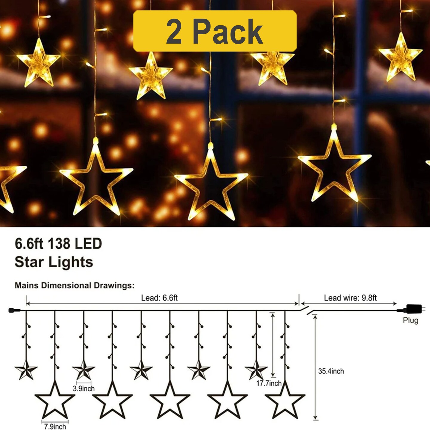 138 LED Warm White Star Curtain Light for Christmas