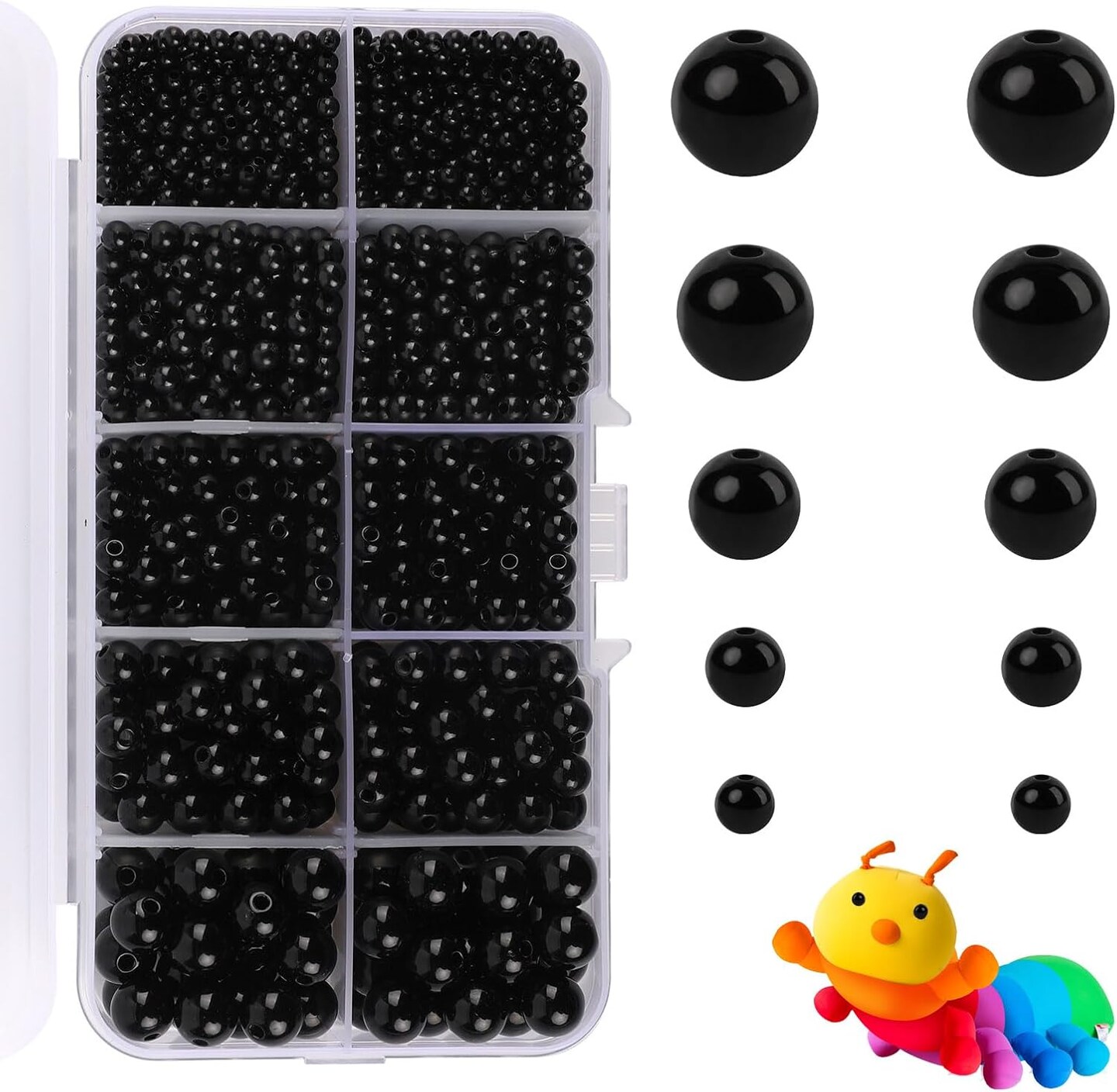 1380 Pcs 5 Sizes Black Doll Eyes 3-8mm Round Plastic