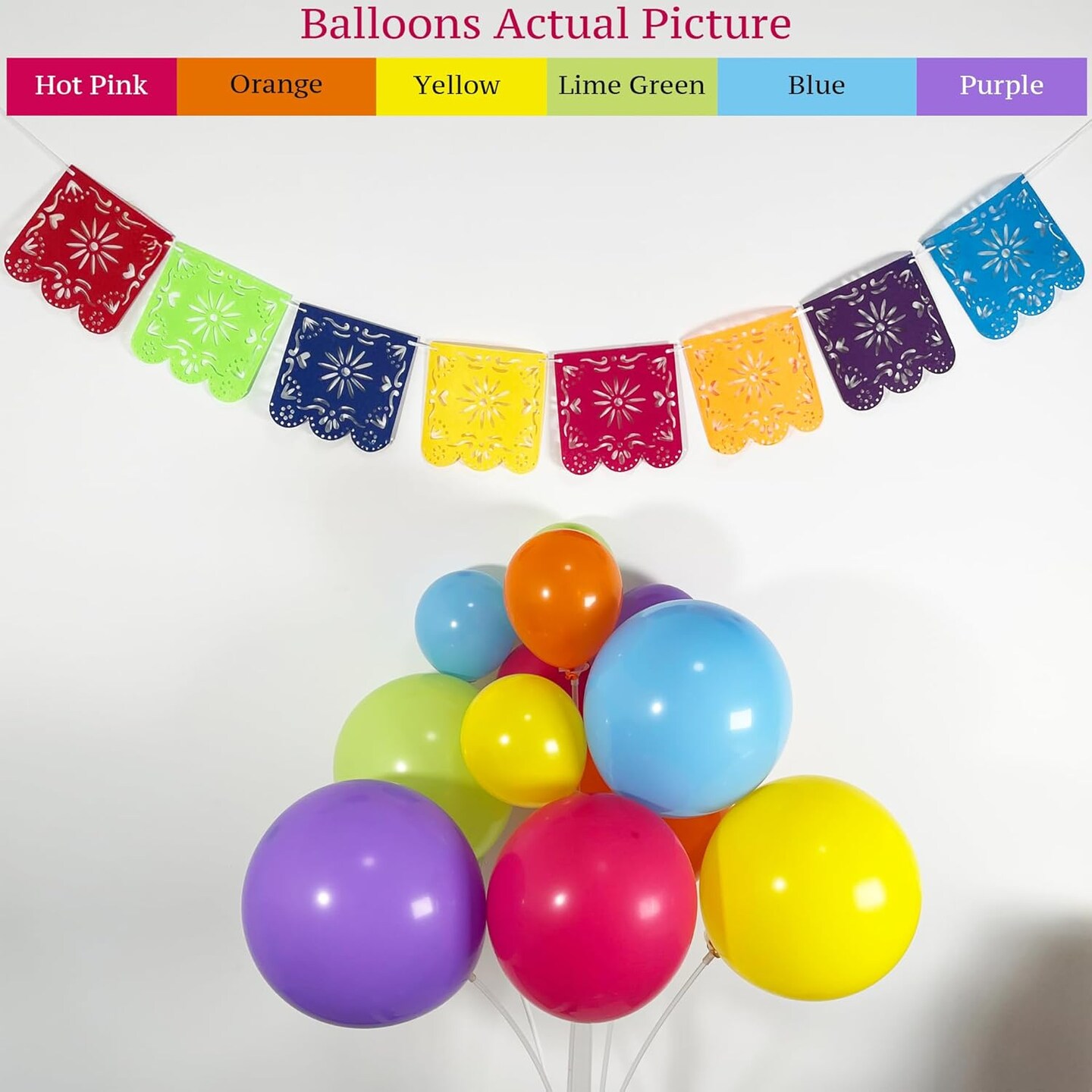 139Pcs Colorful Mexican Cinco De Mayo Balloon Kit With Mexicana Papel Picado Fiesta Banner for Día De Muertos, Loteria Taco Bout Baby Shower My First Birthday Party Decoración