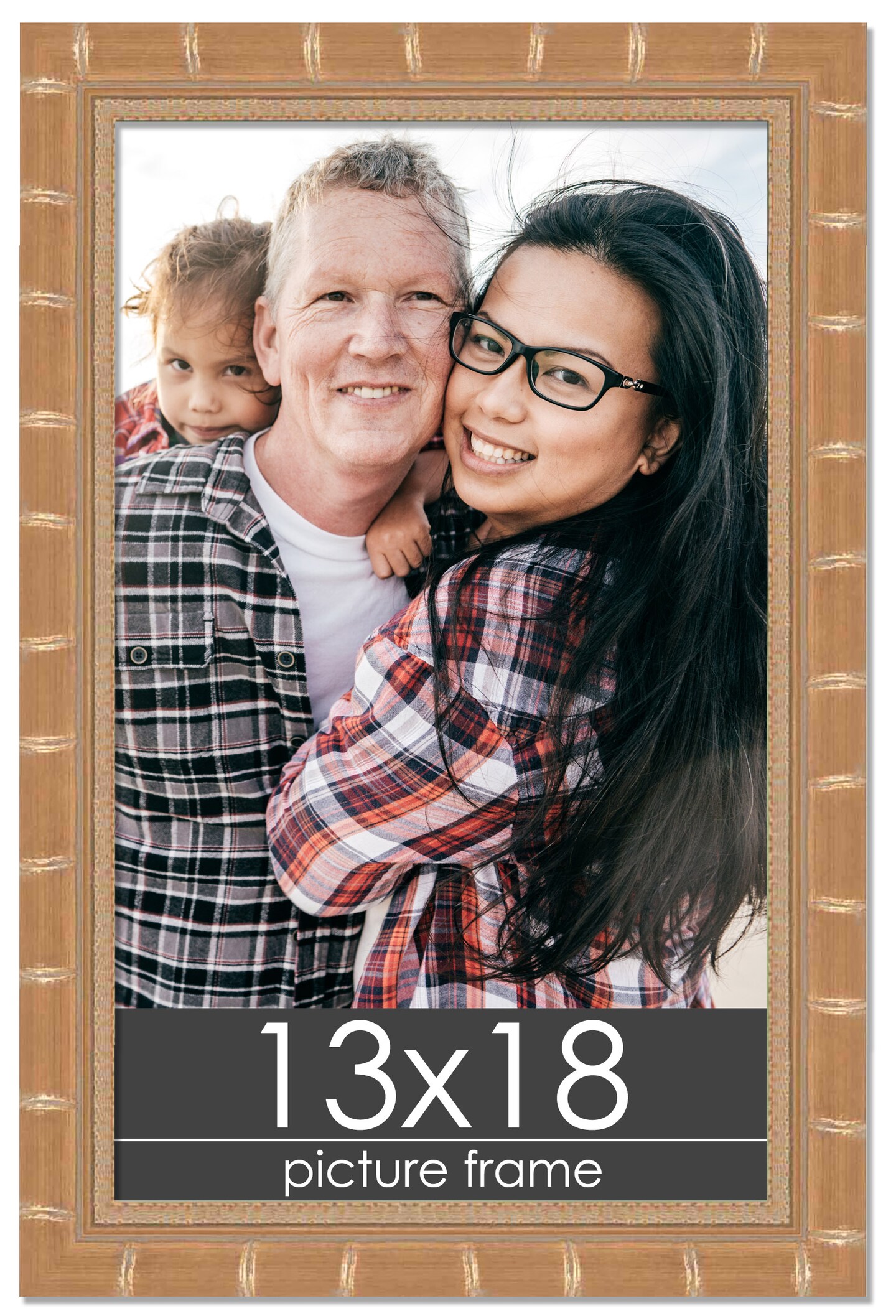 13x18 Gold Modern Bamboo Picture Frame - UV Acrylic, Foam Board Backing, Hanging Hardware