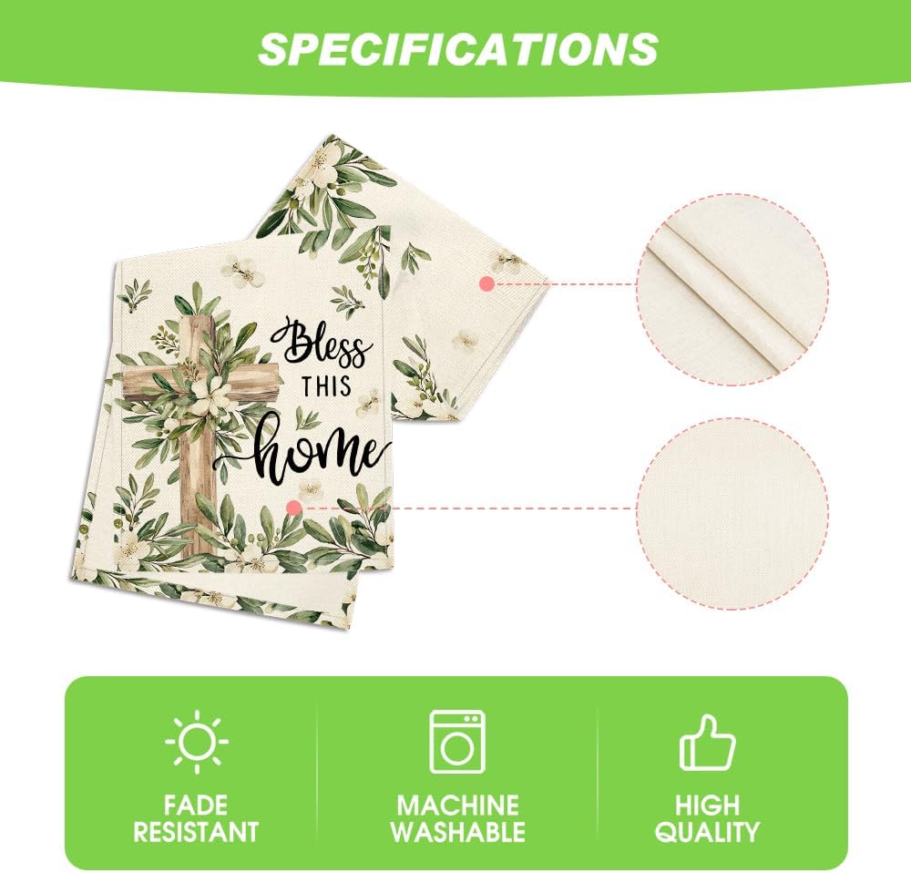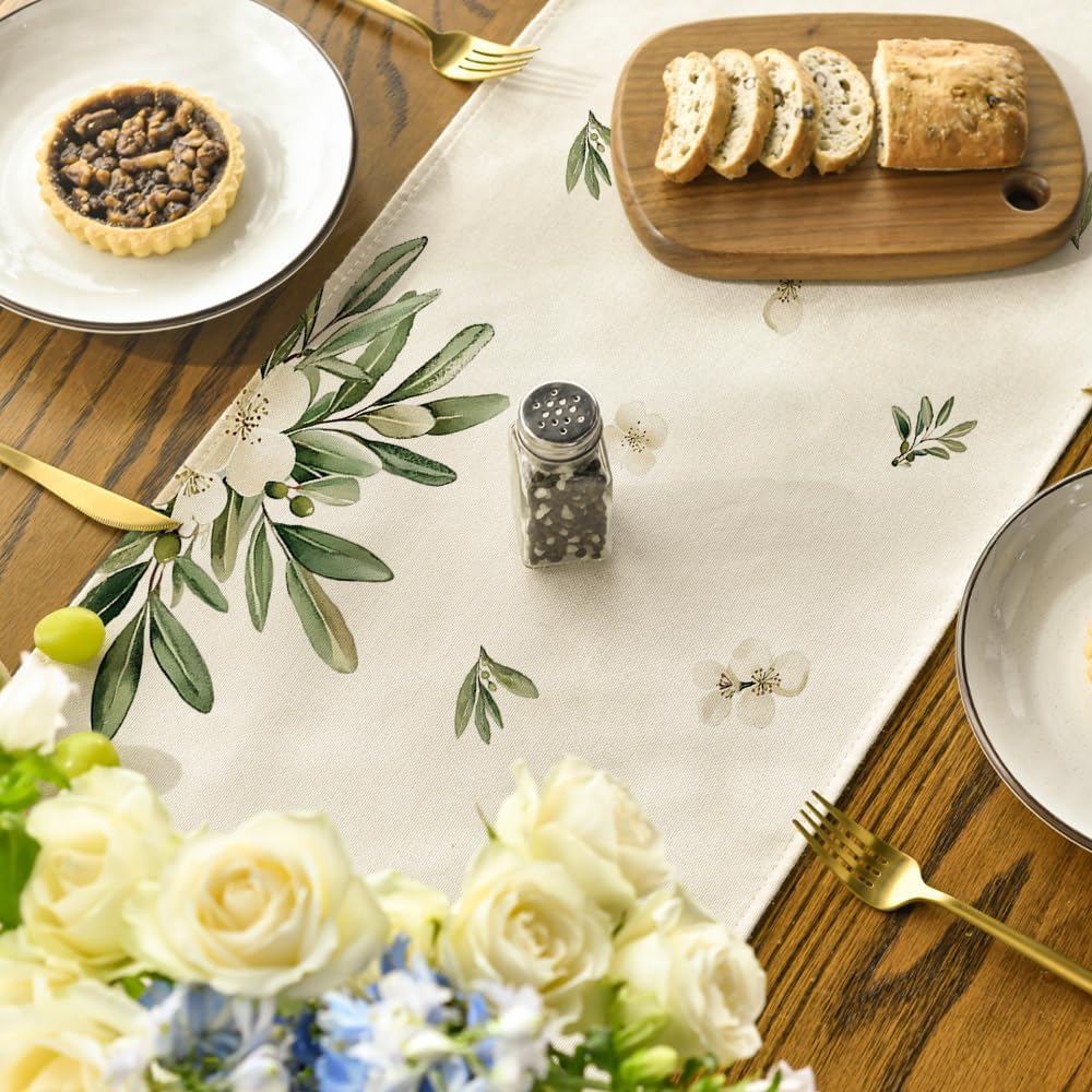 13x72” Cross Olive Leaves Table Runner – Spring/Summer Home & Easter Decor