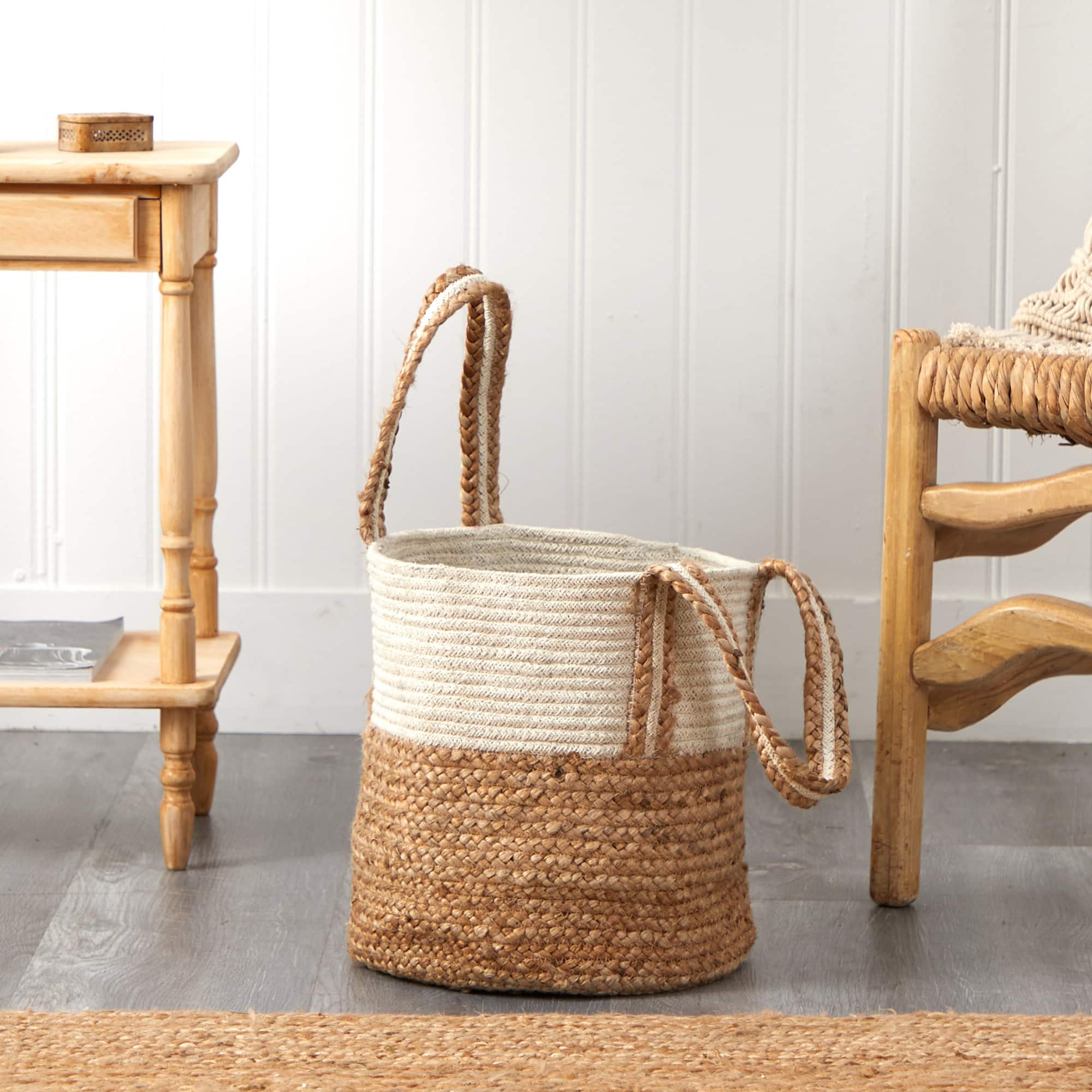 14'' Natural Cotton & Jute Boho Chic Basket Planter