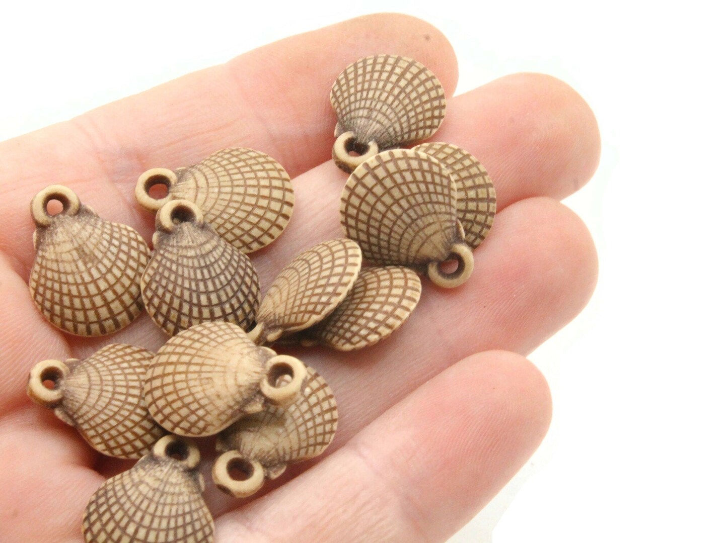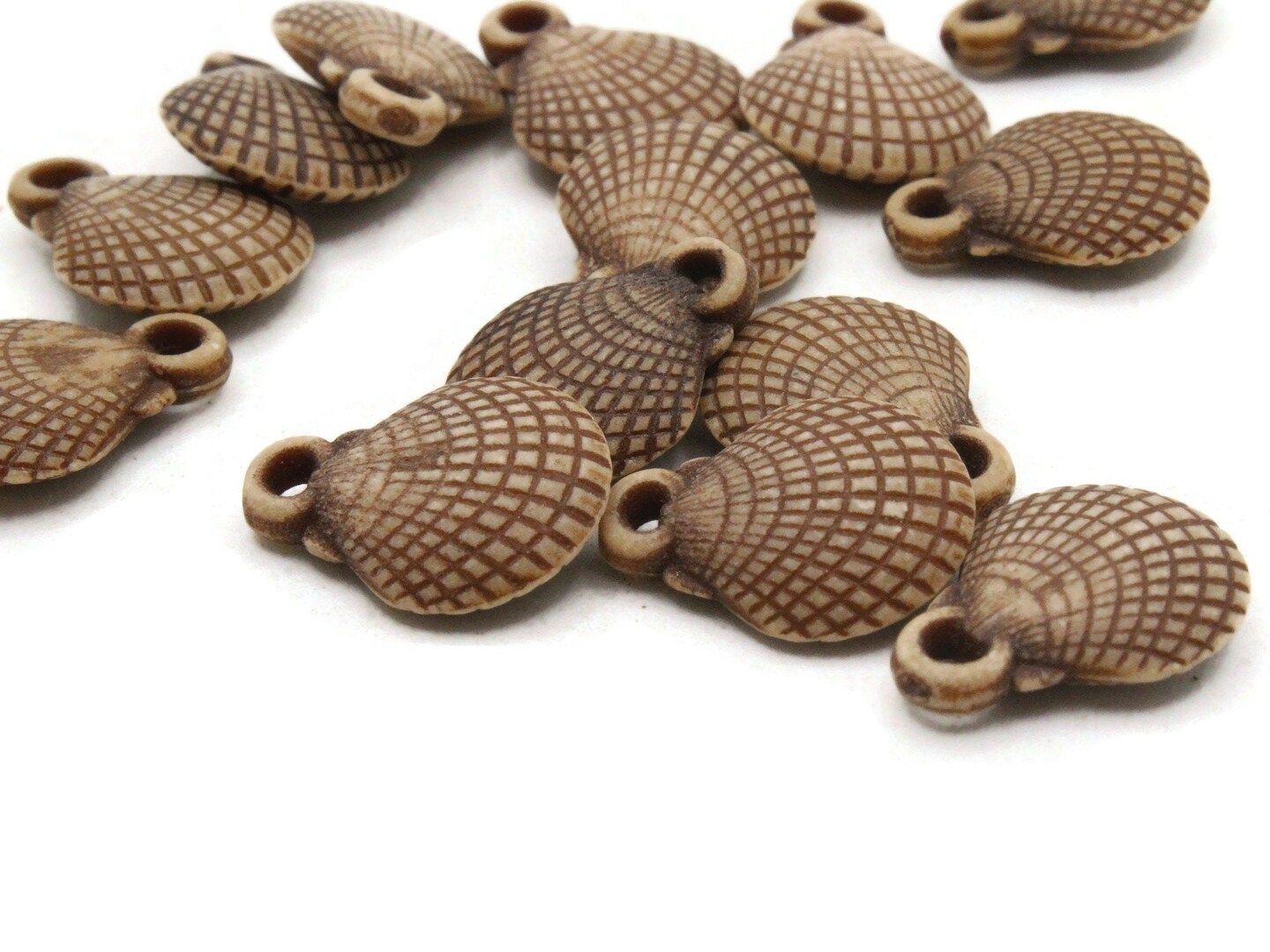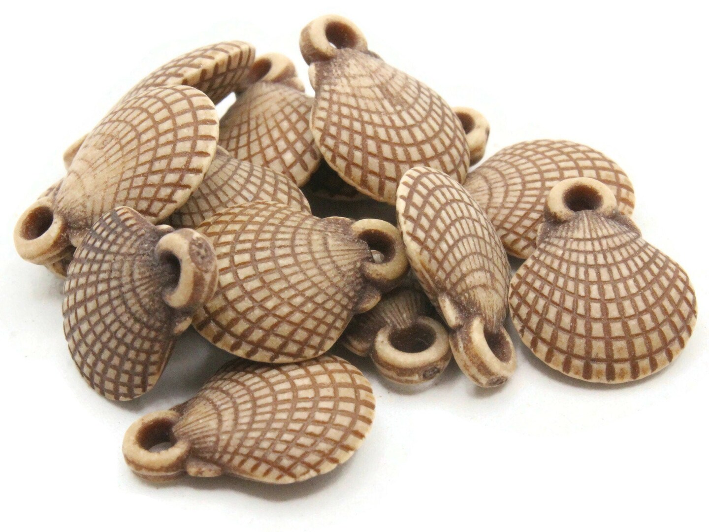 14 16mm Brown Oyster Seashell Small Plastic Beads