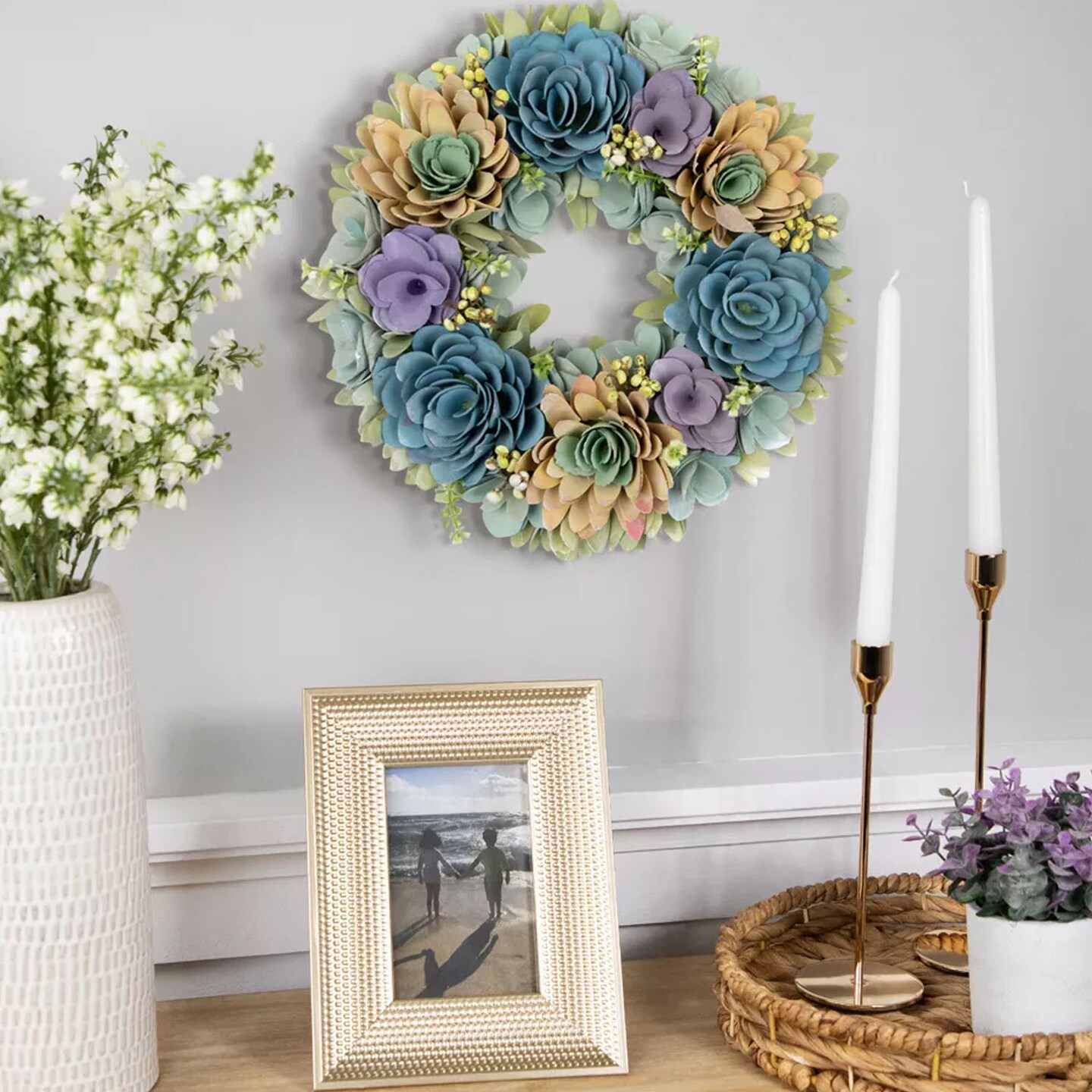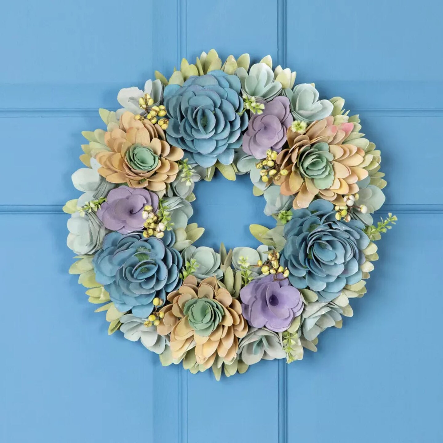 14" Artificial Wooden Spring Wreath with Floral and Seed Pod Accents