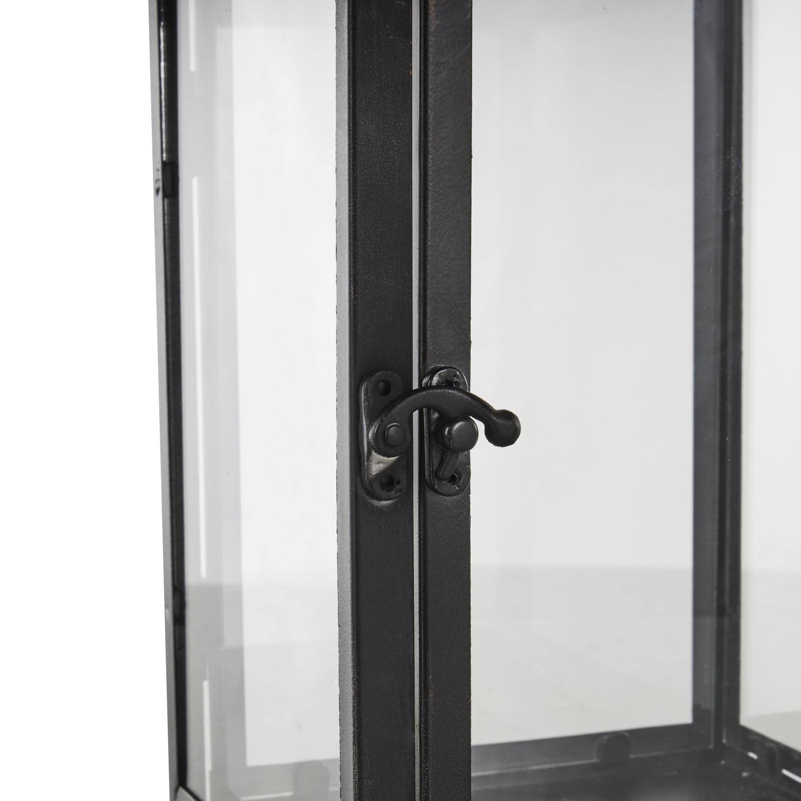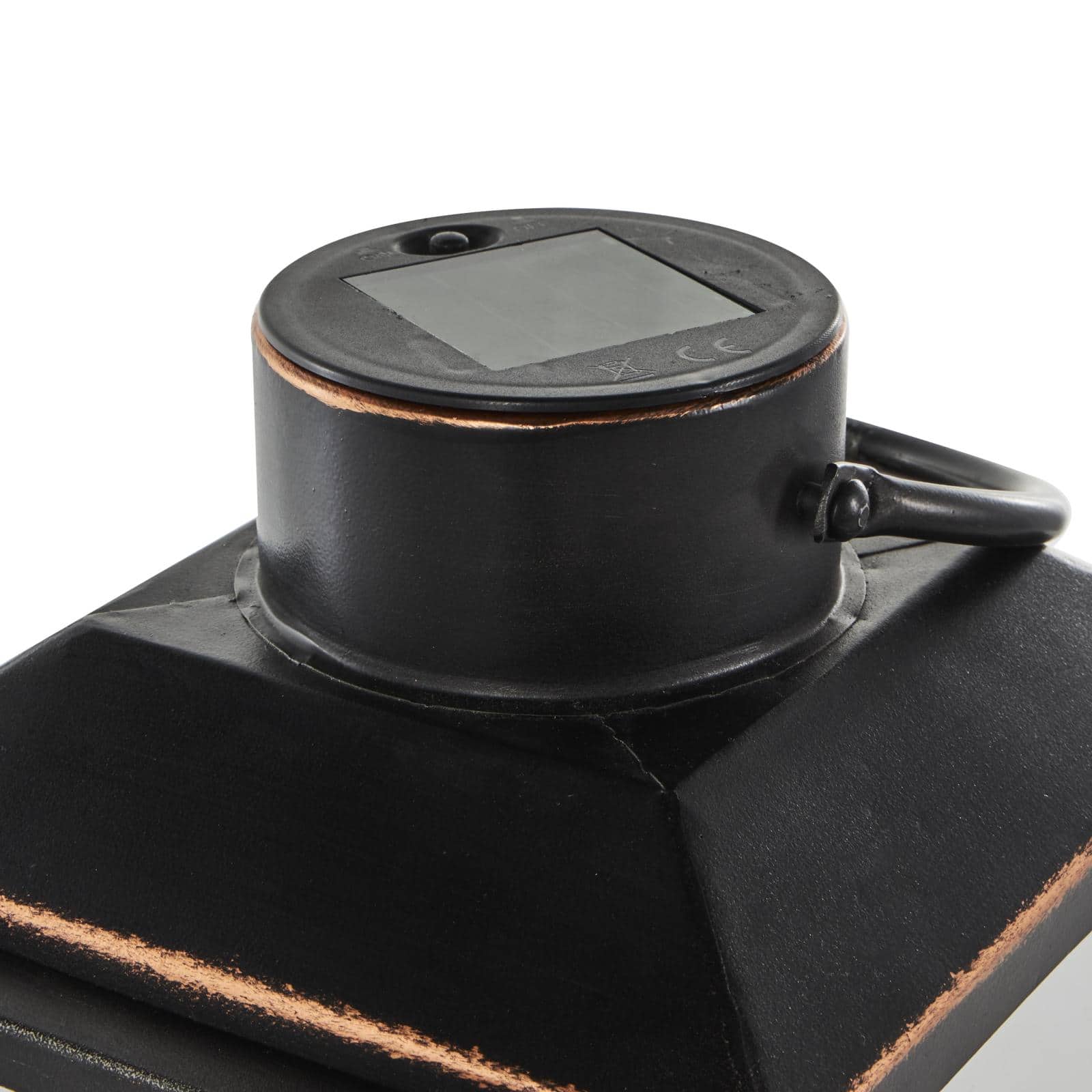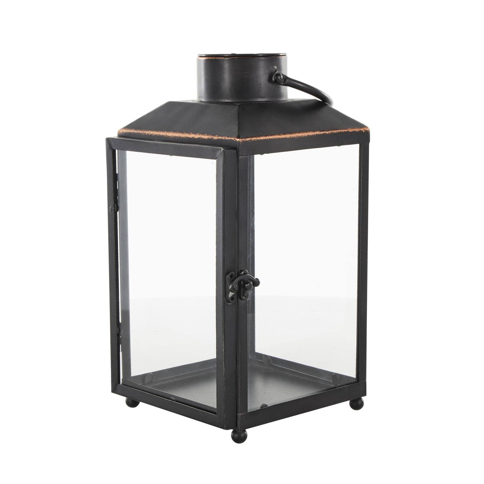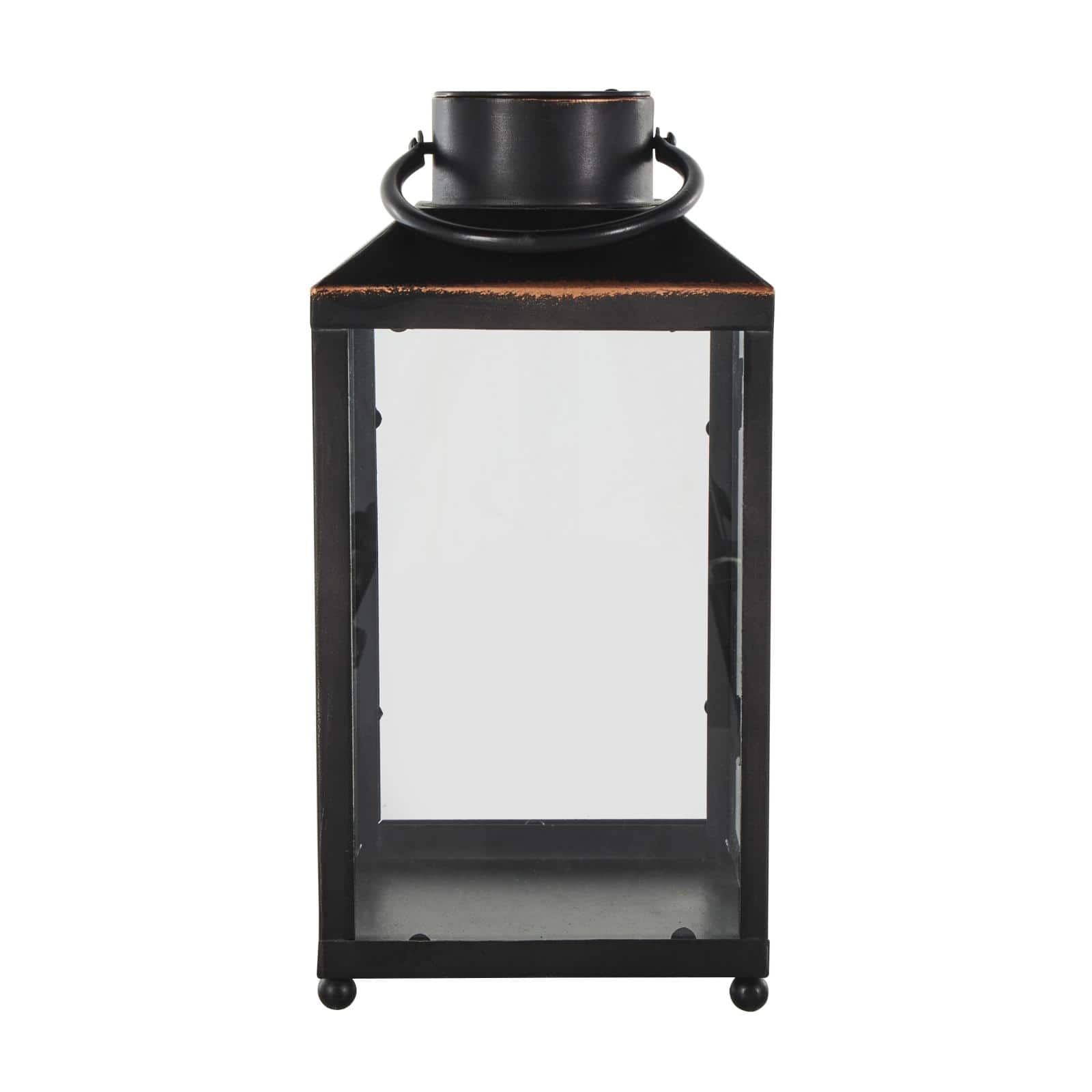 14" Black Metal Modern Candle Lantern with Gold Accents