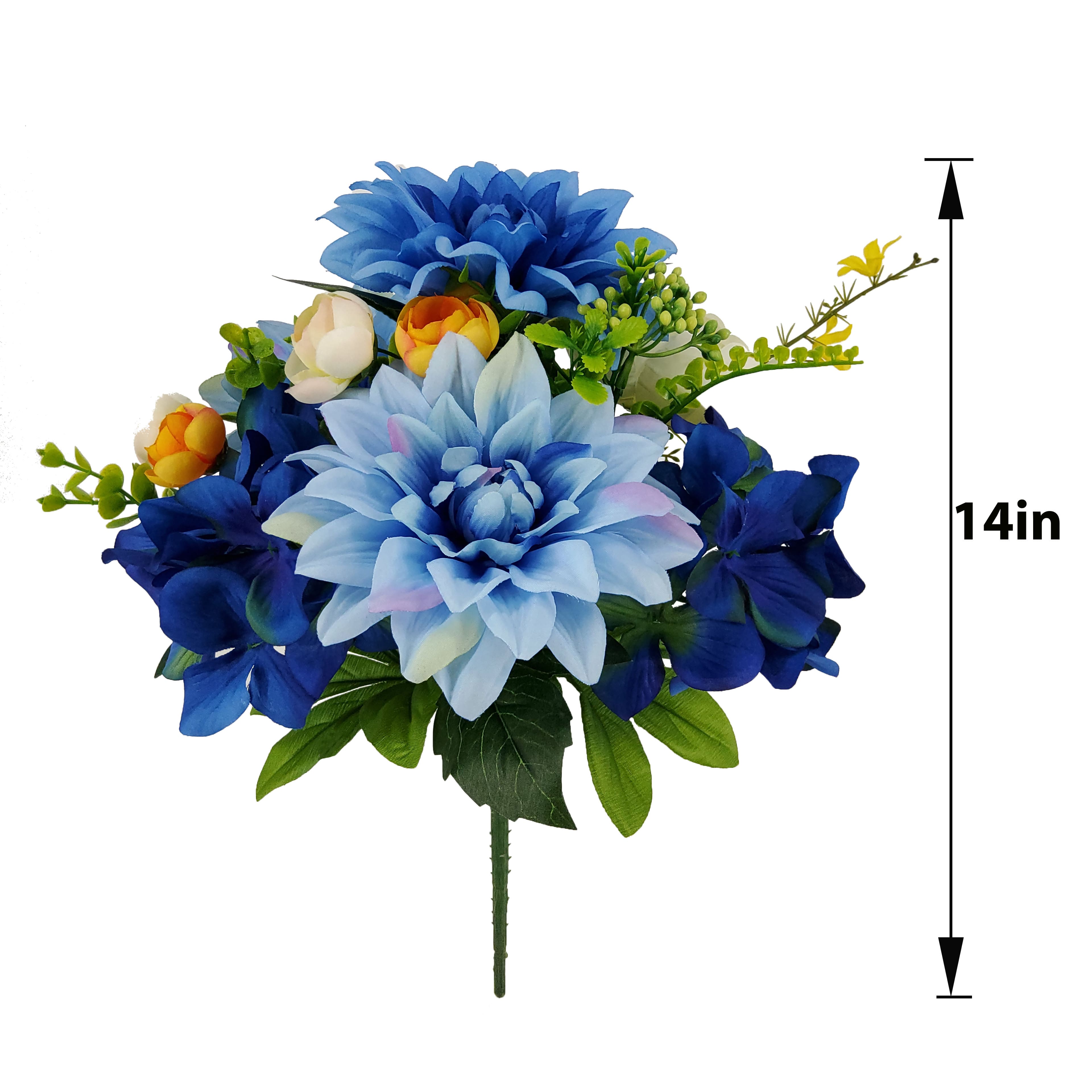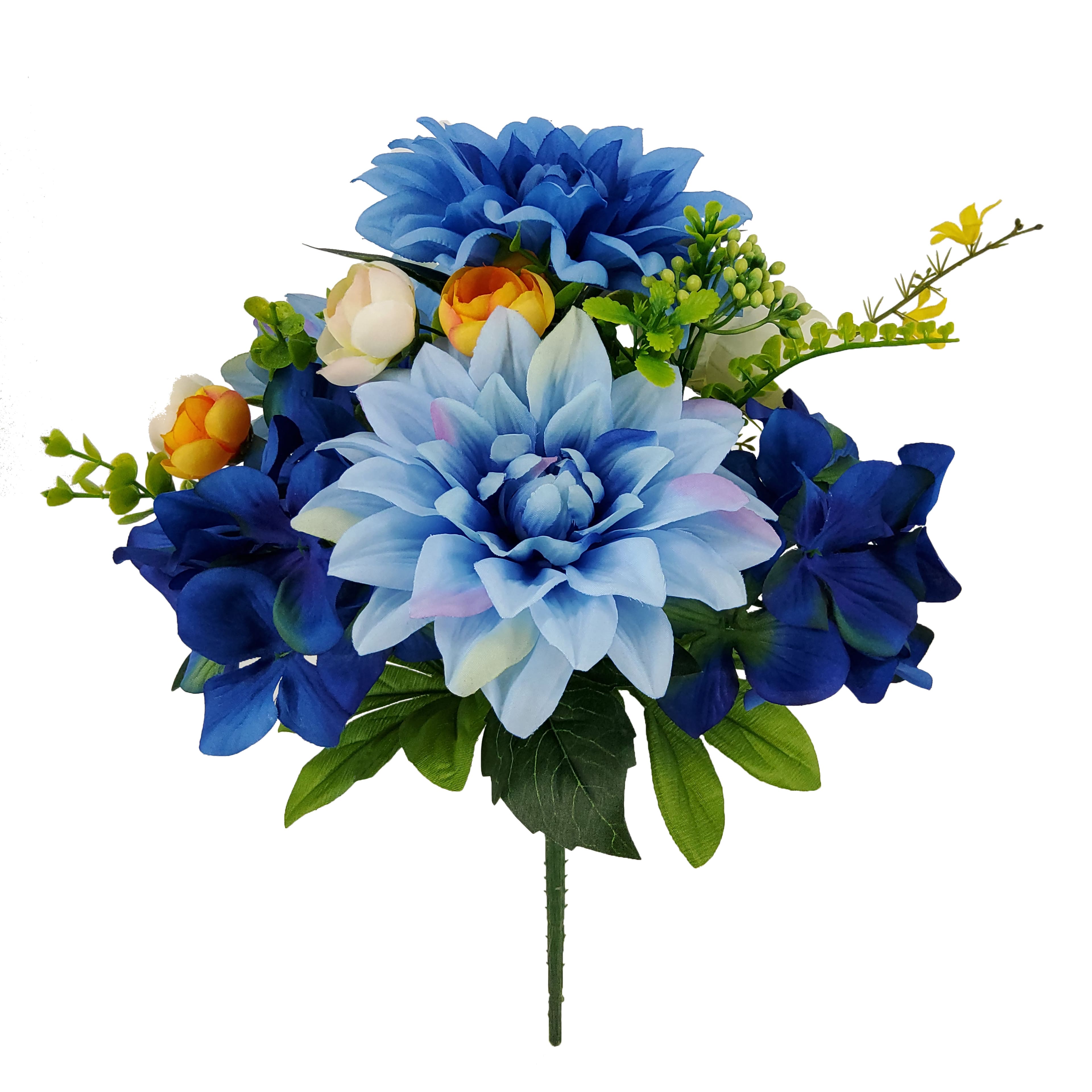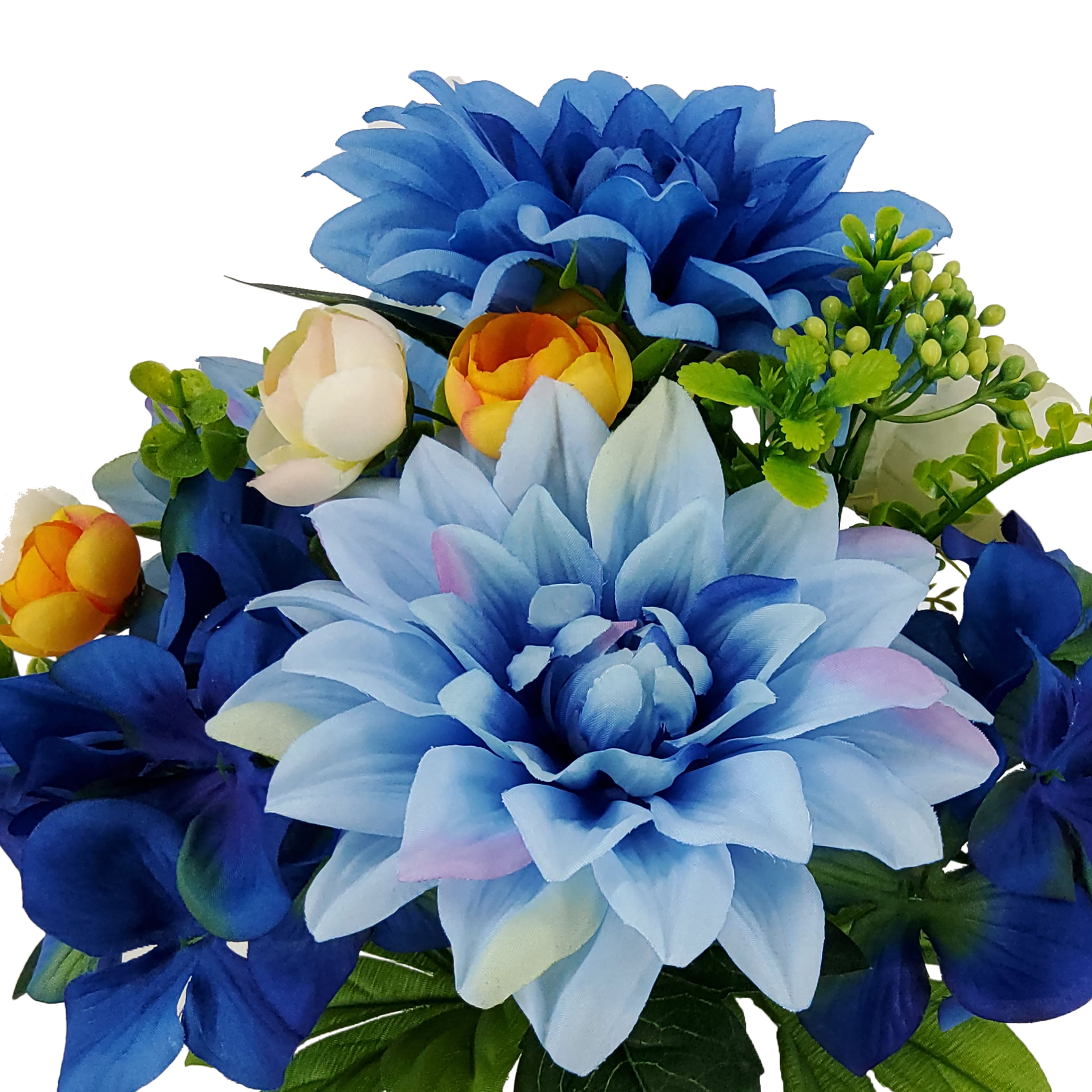 14" Blue & Yellow Dahlia, Hydrangea & Peony Bush by Ashland®