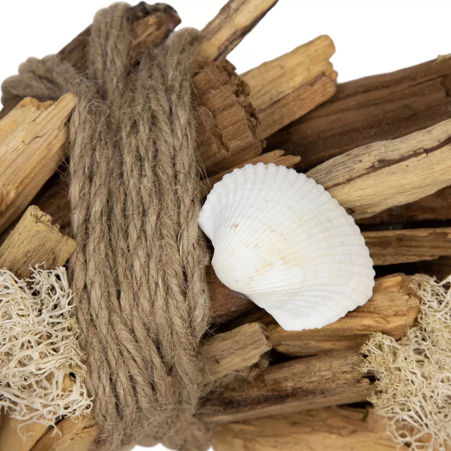 14" Coastal Driftwood and Seashell Wreath Nautical Beach Style Wall Decor