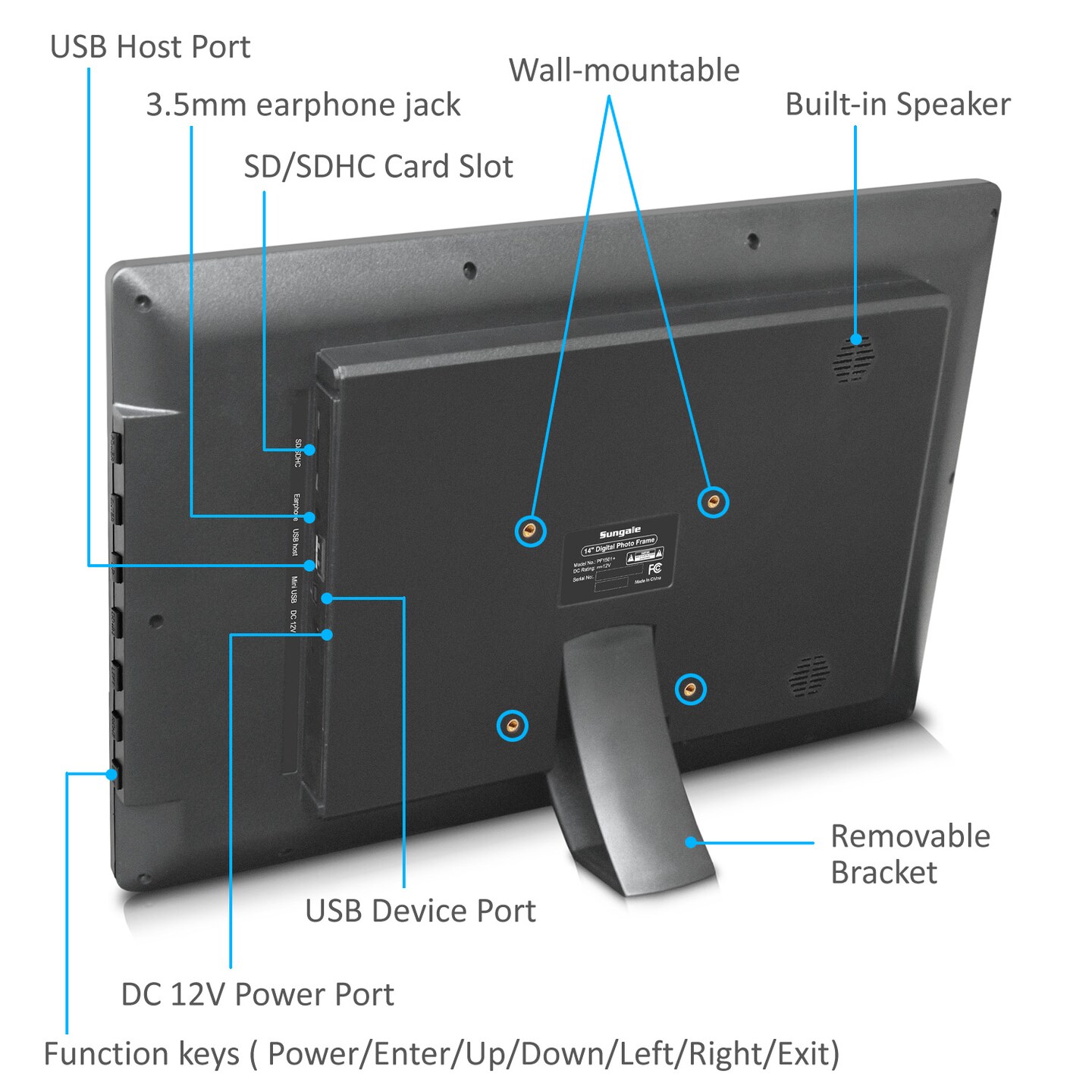 14 Inch Photo/Audio/Video Digital Photo Frame, Hi-Resolution, Multimedia Player, Slide Show, SD Card Slot, USB Port, Internal Storage, Various Display Options, Transitional Effects