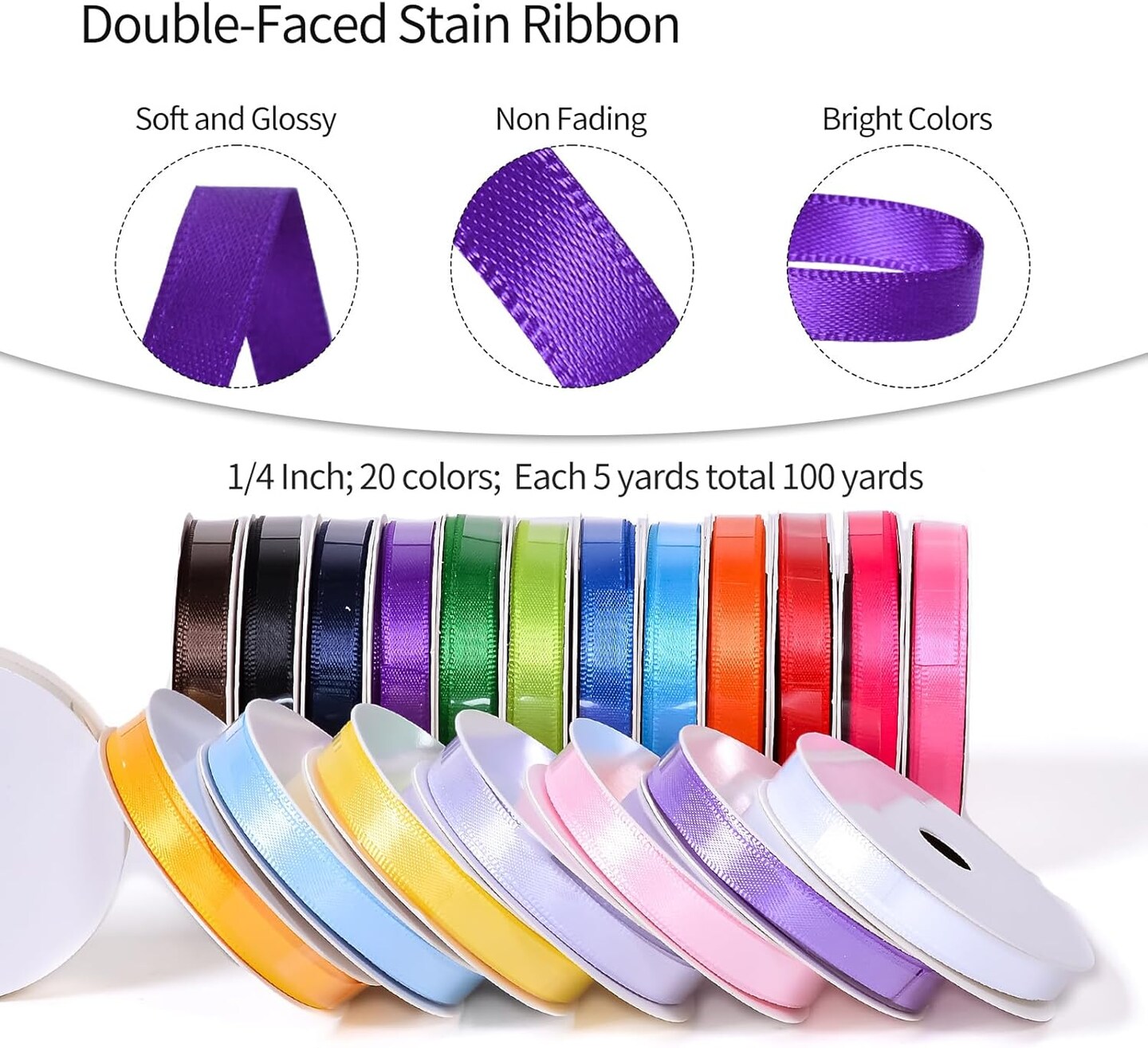 1/4 Inch Solid Double Face Satin Ribbon Set