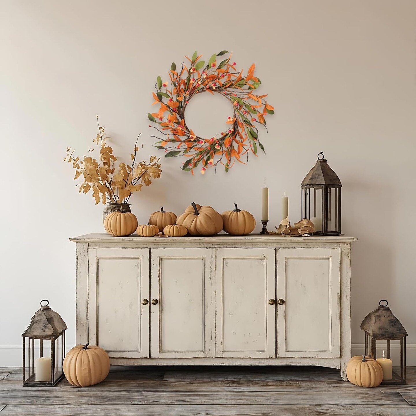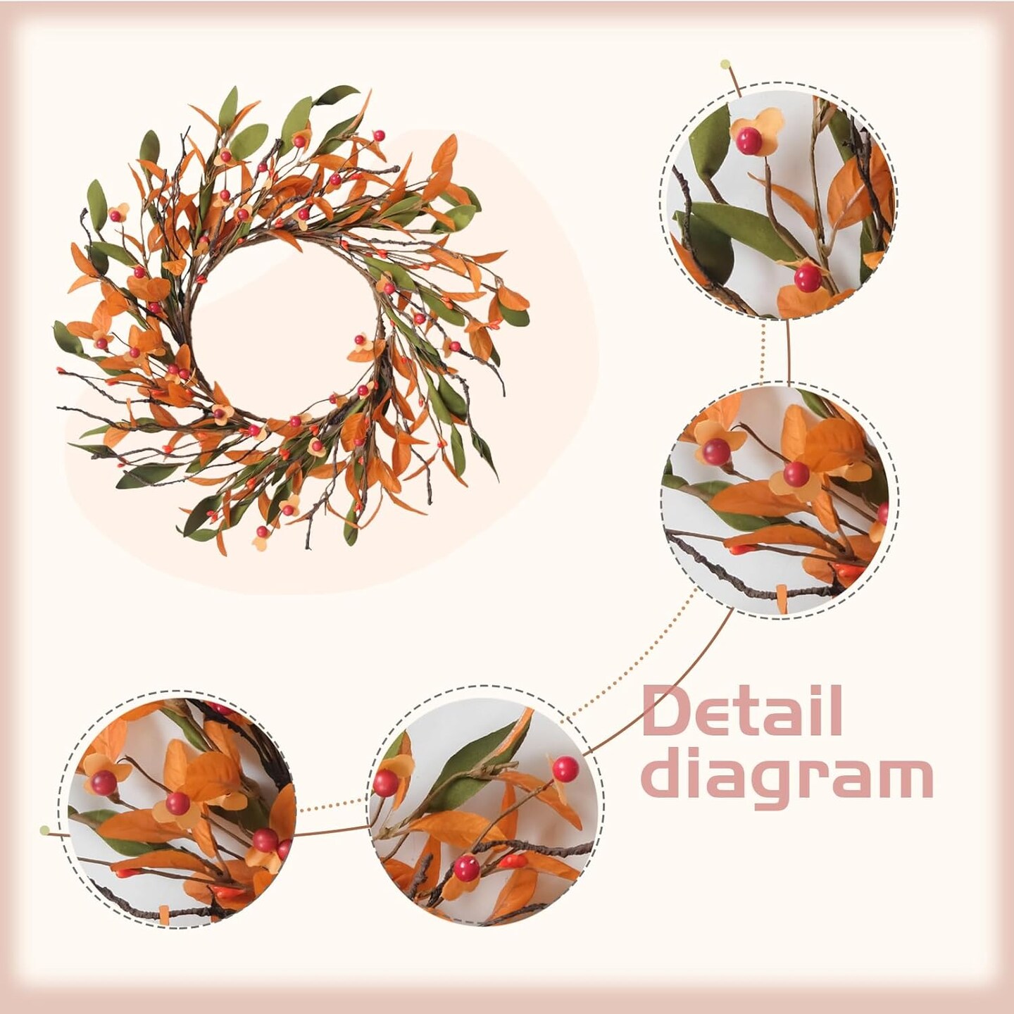 14 Inches 2 Pcs Fall Wreaths for Front Door(14"-2pcs)3"D x 14"W x 14"H