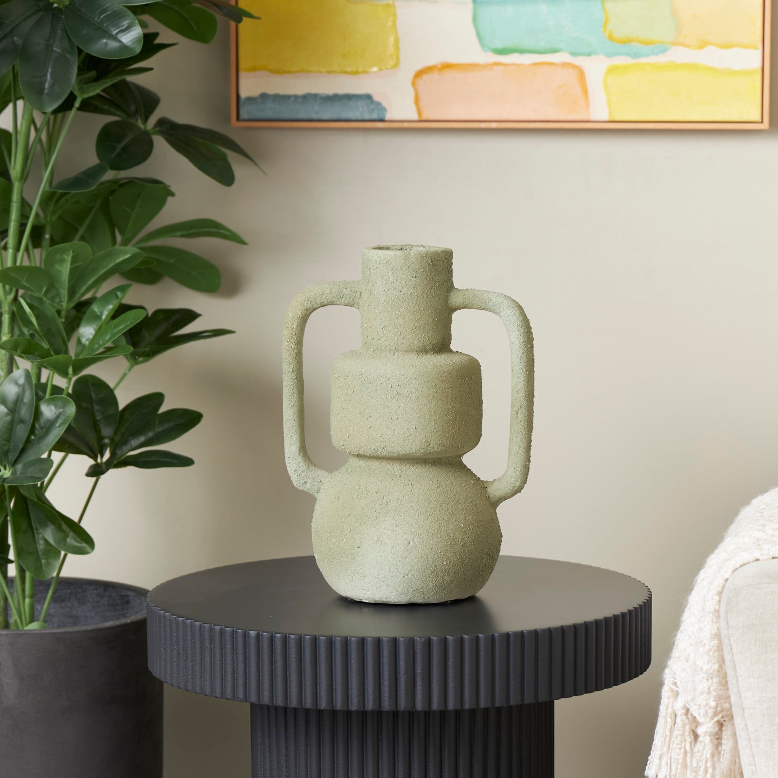 14" Light Gray Paper Mache Textured Vase