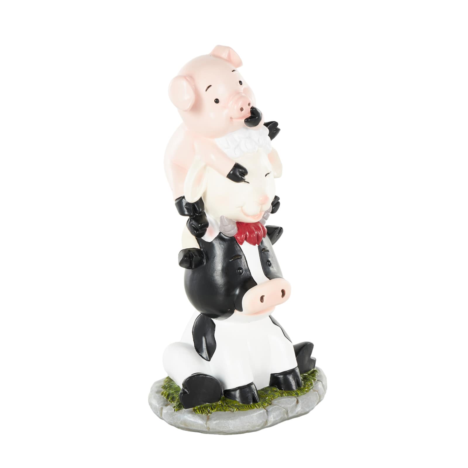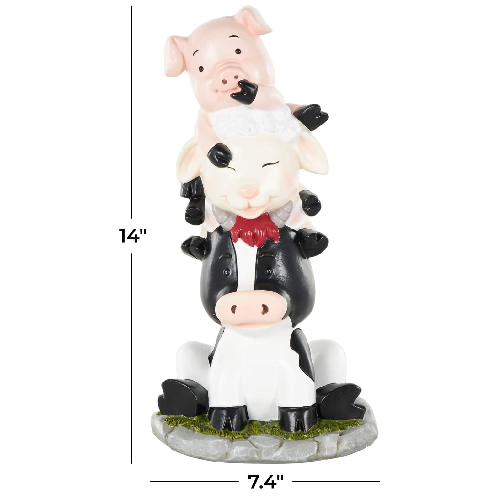 14" Multicolor Farm Animals Stacked Decorative Sculpture