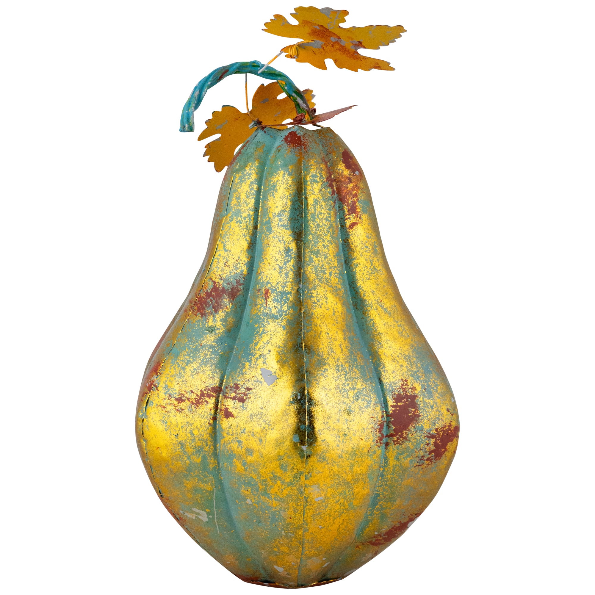 14" Orange & Green Elongated Autumn Pumpkin Tabletop Décor