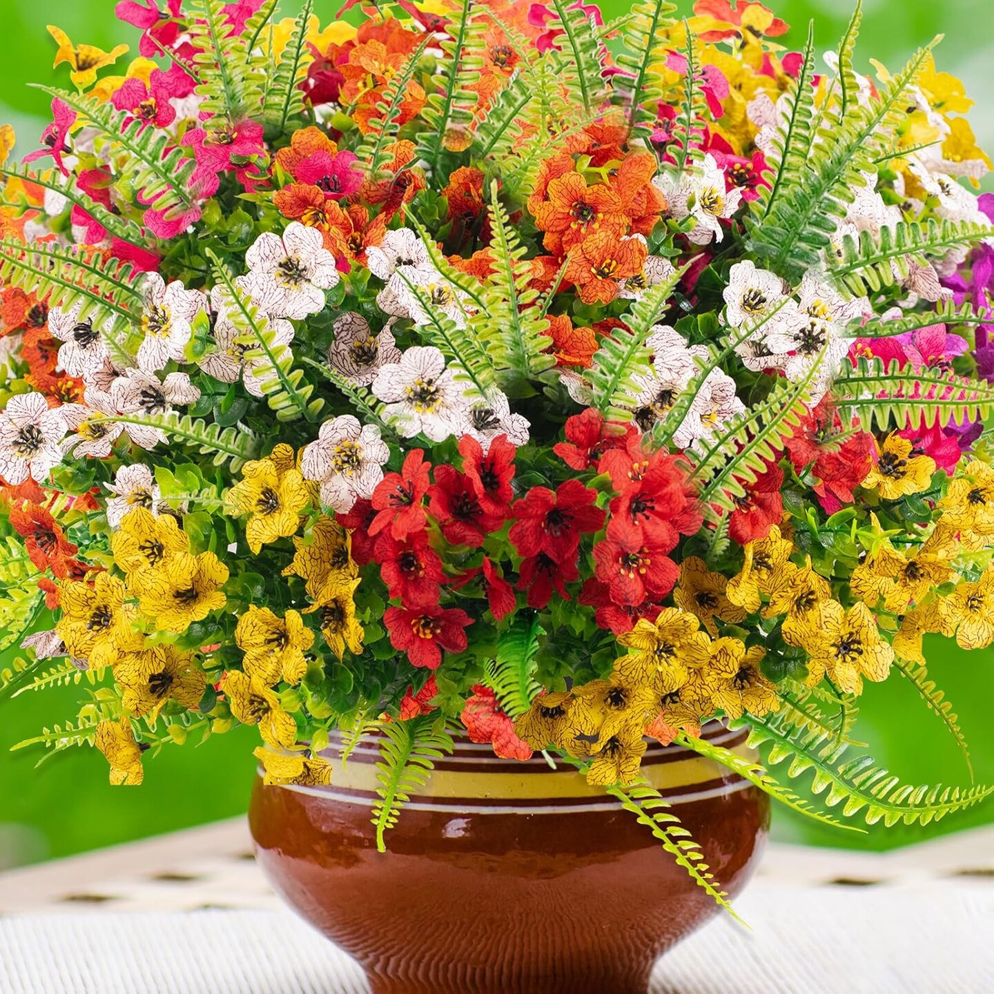 14 Pcs Artificial Outdoor Flowers UV Resistant Fake Flower -No Maintenance Faux Greenery Plants Plastic Flowers -Faux Flowers for Outdoor Planters Porch Garden Window Box Home Decor (Mix 6)