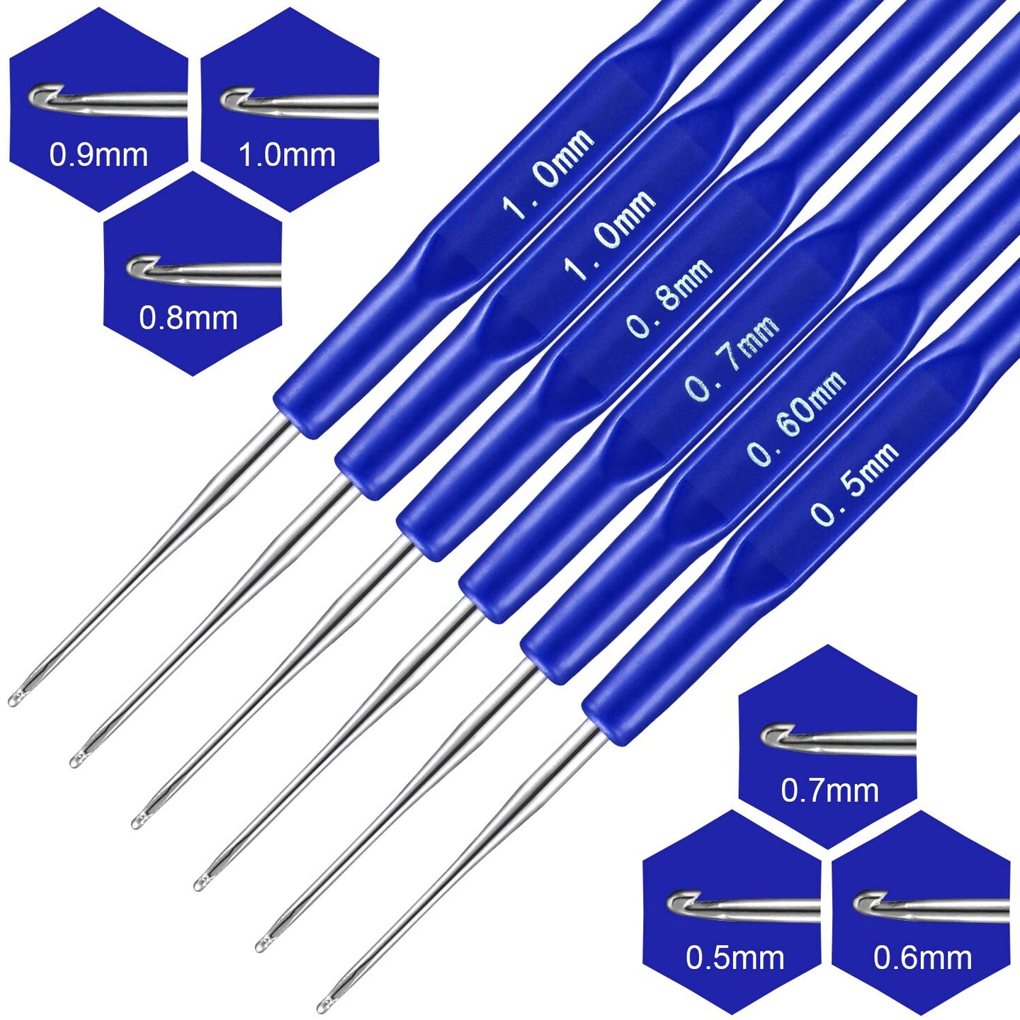 14 Pcs Dreadlock Crochet Hook Set Include 6 Dreadlocks Crochet Needle 2 Hair Locking Tools 6 Hooks 0.5 mm 0.75 mm Needle Weaving, 1/2/3 Hooks for Locs Braid Craft(Blue)