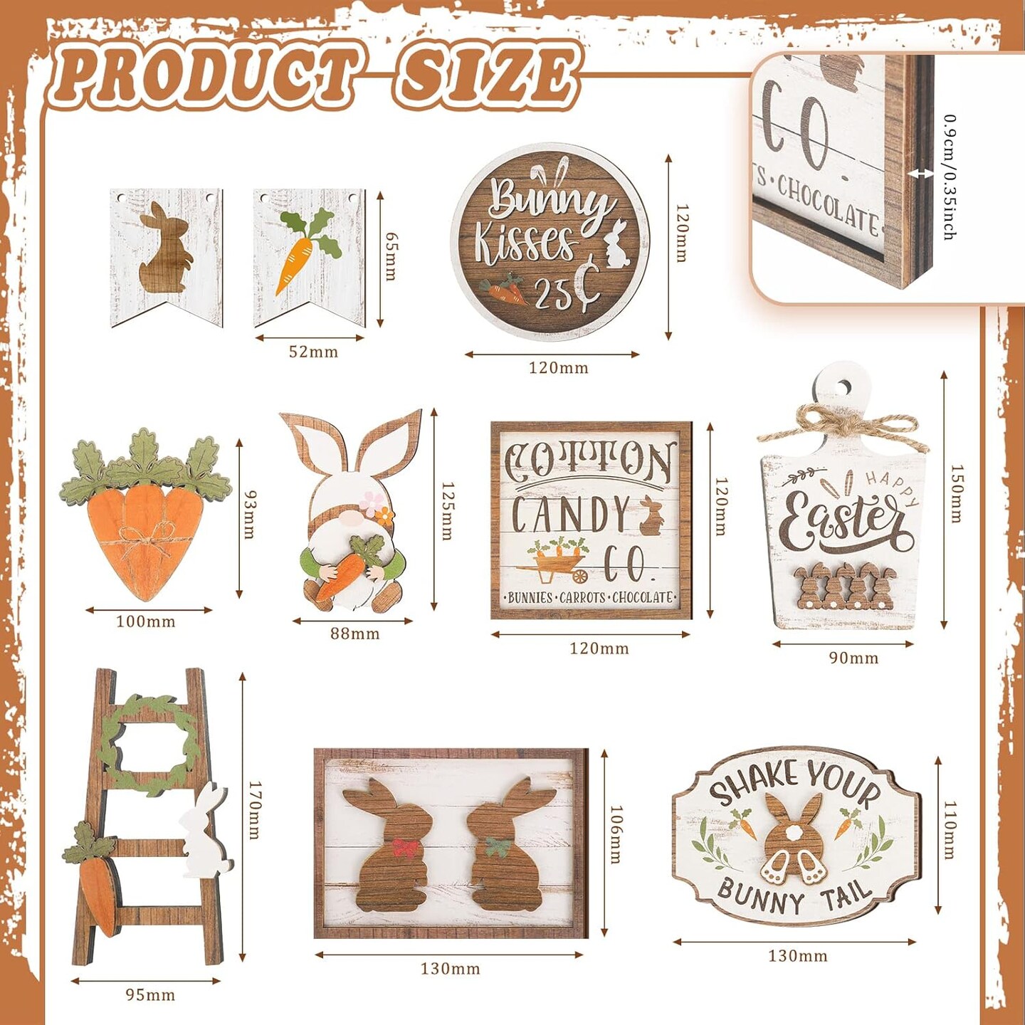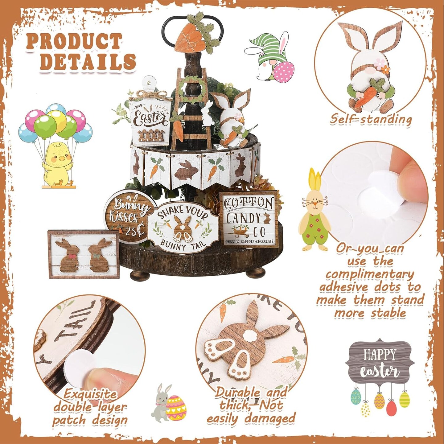 14 Pcs Easter Tiered Tray Decor Set Farmhouse Bunny Carrot Wooden Signs Rustic Spring Tiered Tray Decor Easter Table Decorations for Home Kitchen Coffee Bar Shelf